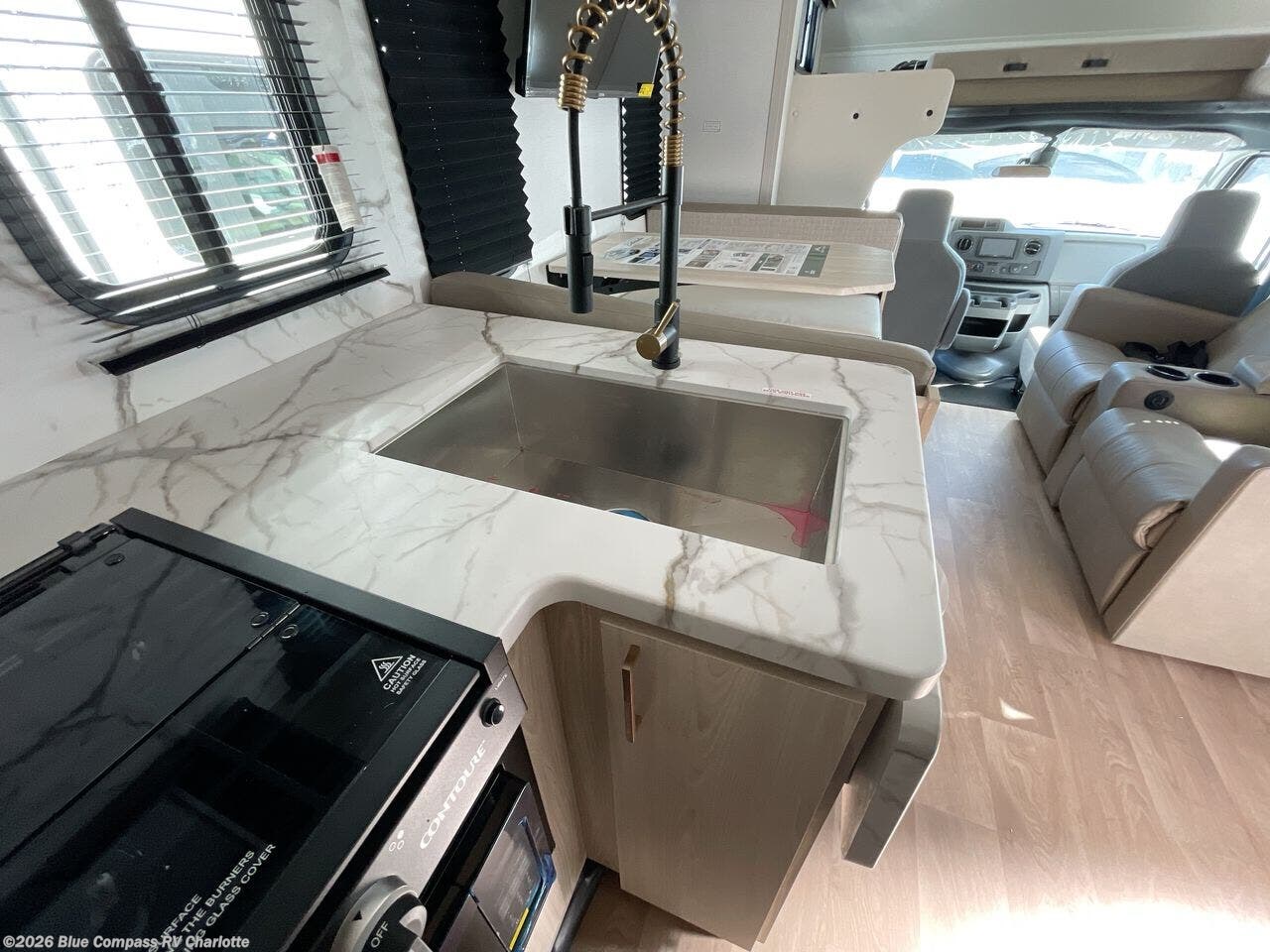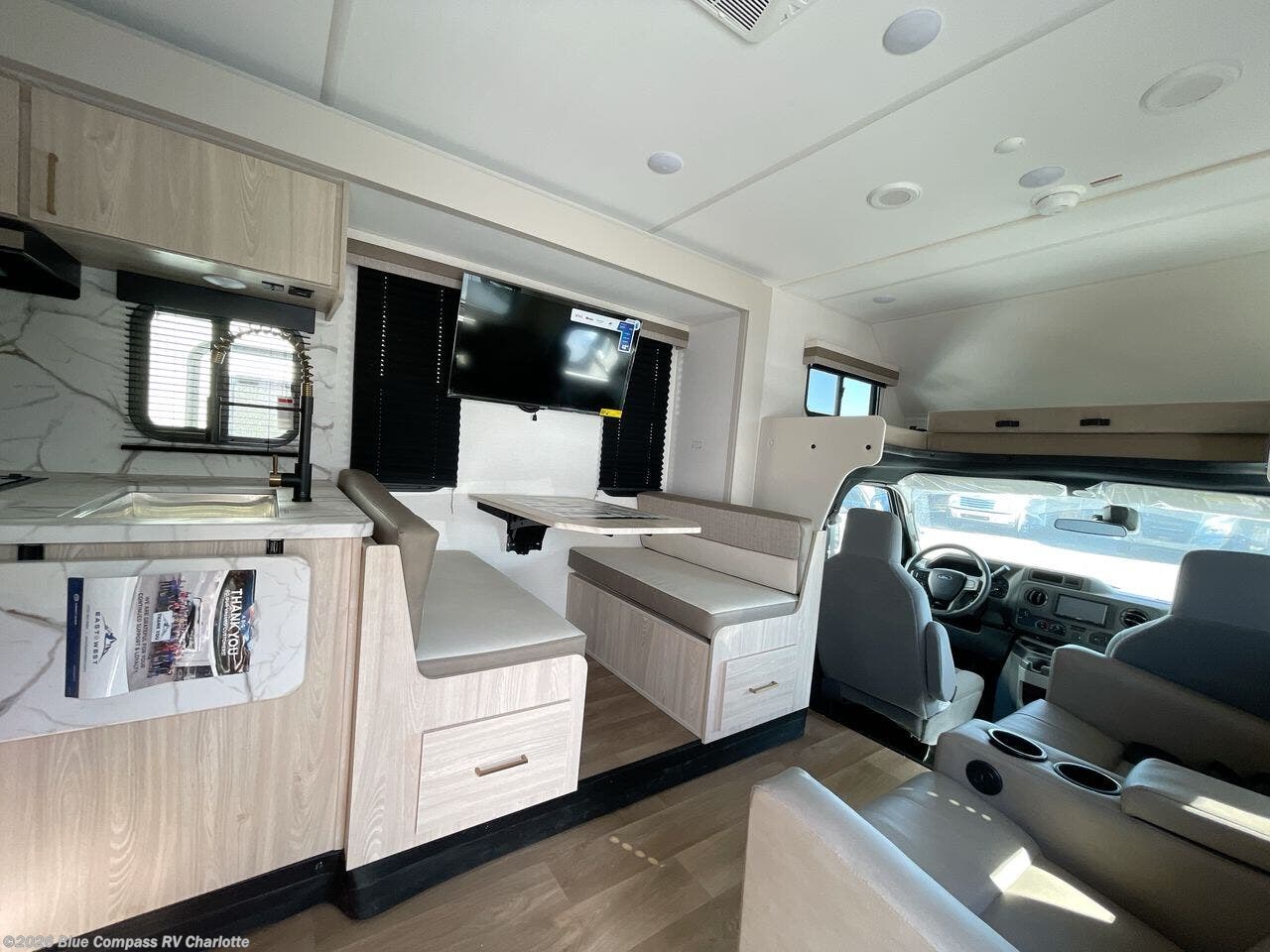 With any Entrada Class C gas motorhome from EAST TO WEST, the construction consists of a one-piece painted fiberglass front cap, a TPO roof membrane, and 2" Azdel composite sidewalls for added durability. There are rotocast exterior storage compartments with slam latch doors, along with an exterior LP Quick Connect, and a power awning with an LED light strip. You will also find rear and sideview cameras to help make maneuvering and parking your RV easier than ever. Inside, you'll feel right at home with soft close hardwood cabinet doors and drawers, a high-altitude tankless water heater, plus a 12V smart TV and USB ports to keep your electronics charged up!