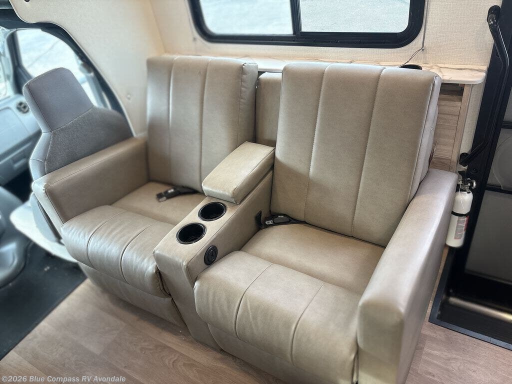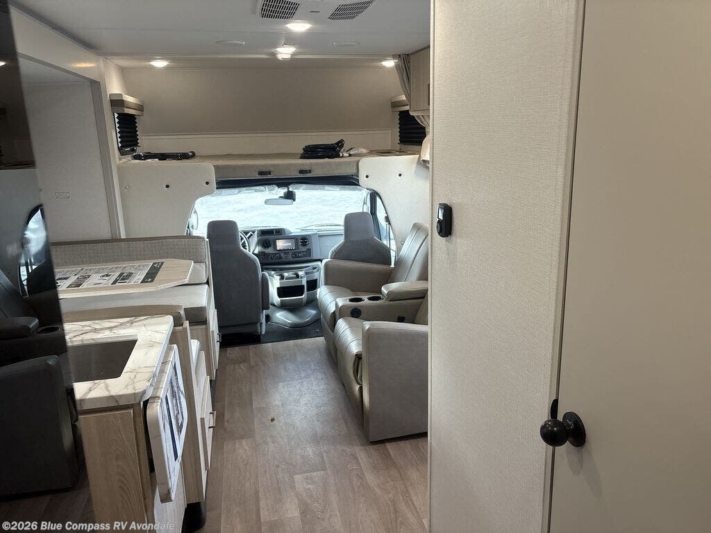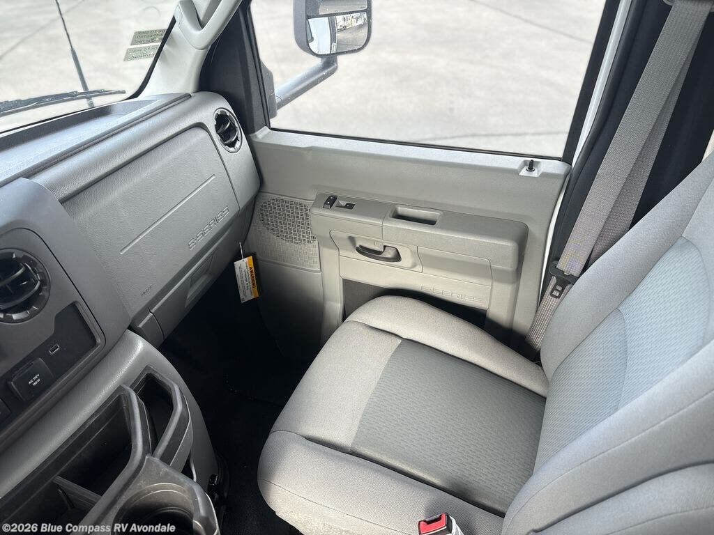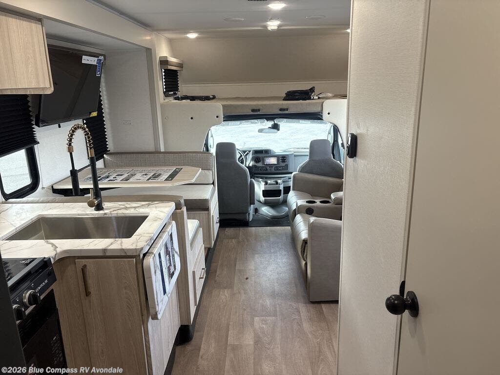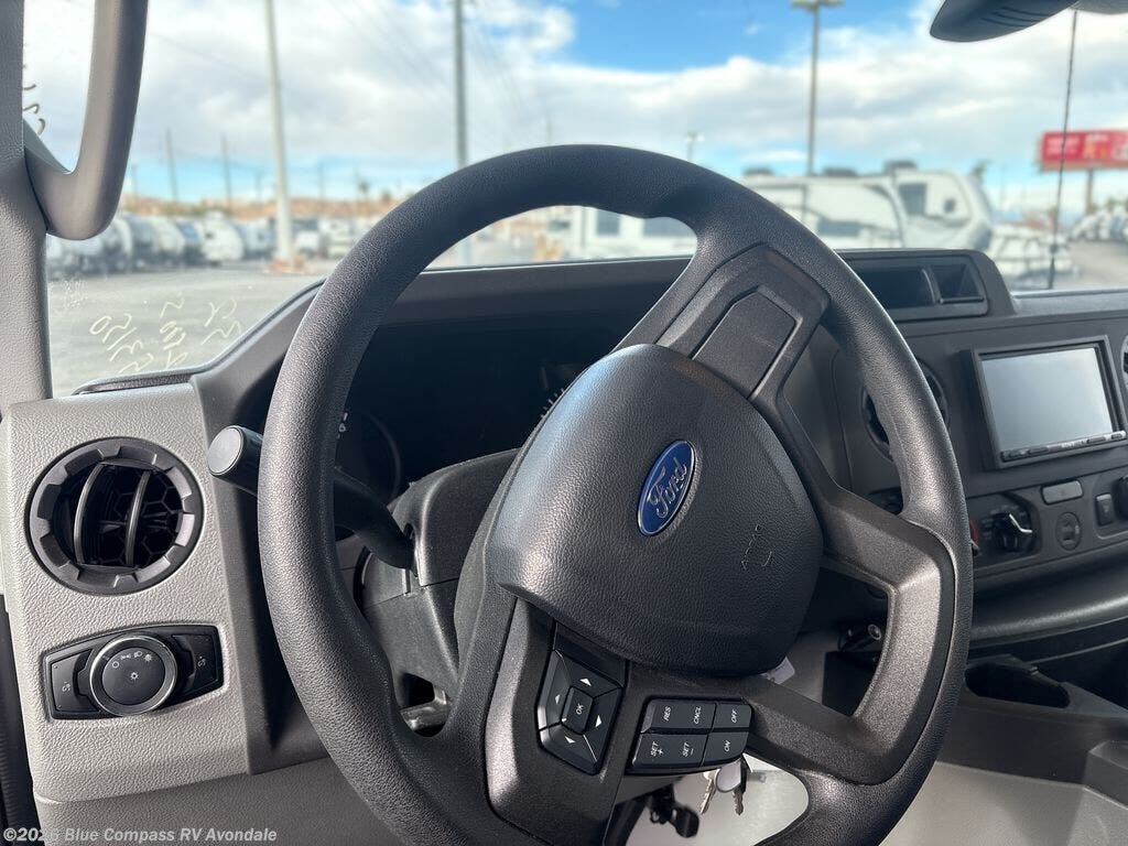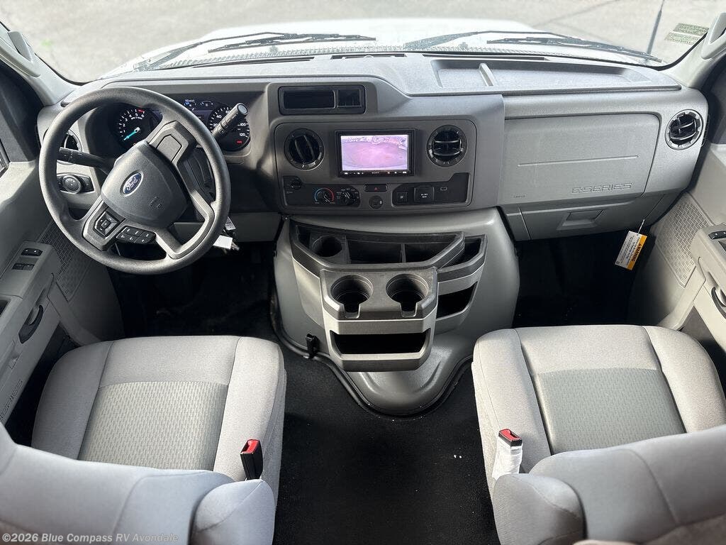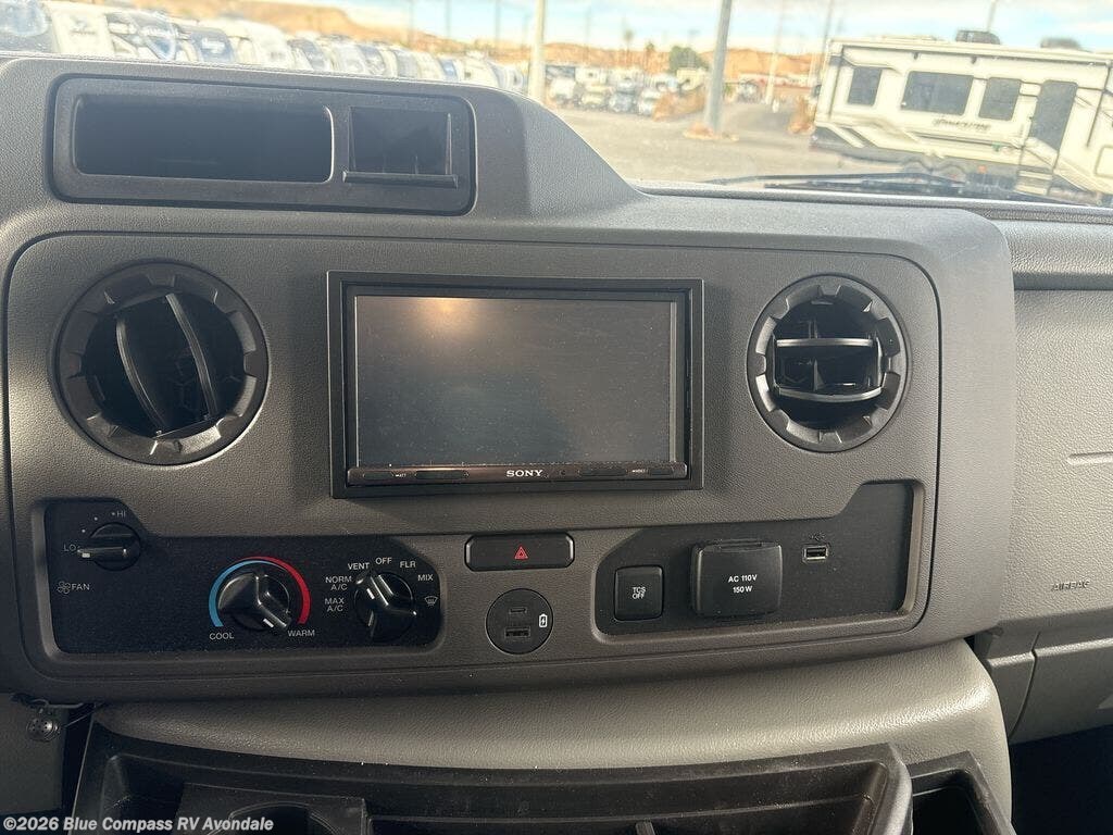 With any Entrada Class C gas motorhome from EAST TO WEST, the construction consists of a one-piece painted fiberglass front cap, a TPO roof membrane, and 2" Azdel composite sidewalls for added durability. There are rotocast exterior storage compartments with slam latch doors, along with an exterior LP Quick Connect, and a power awning with an LED light strip. You will also find rear and sideview cameras to help make maneuvering and parking your RV easier than ever. Inside, you'll feel right at home with soft close hardwood cabinet doors and drawers, a high-altitude tankless water heater, plus a 12V smart TV and USB ports to keep your electronics charged up!