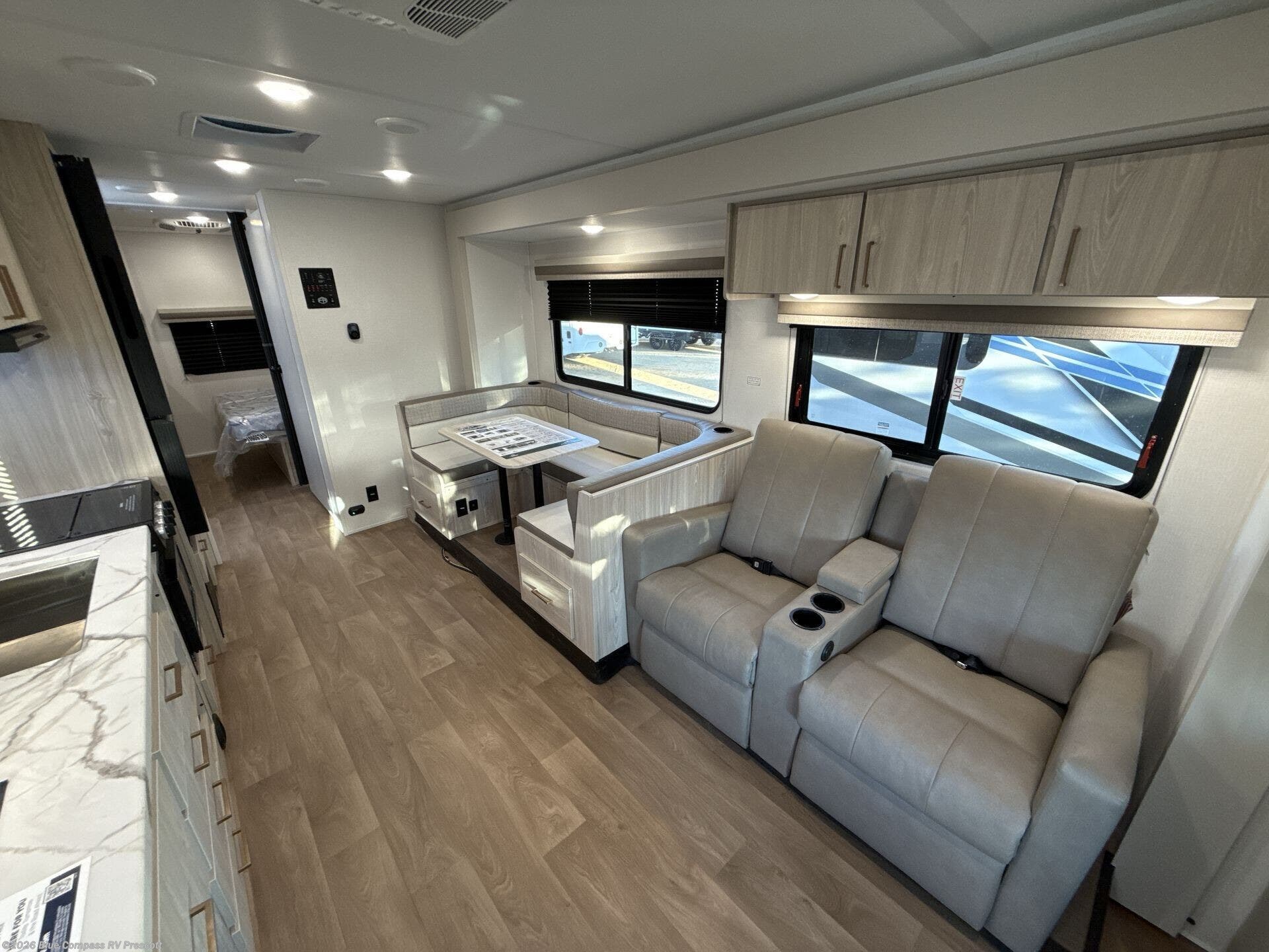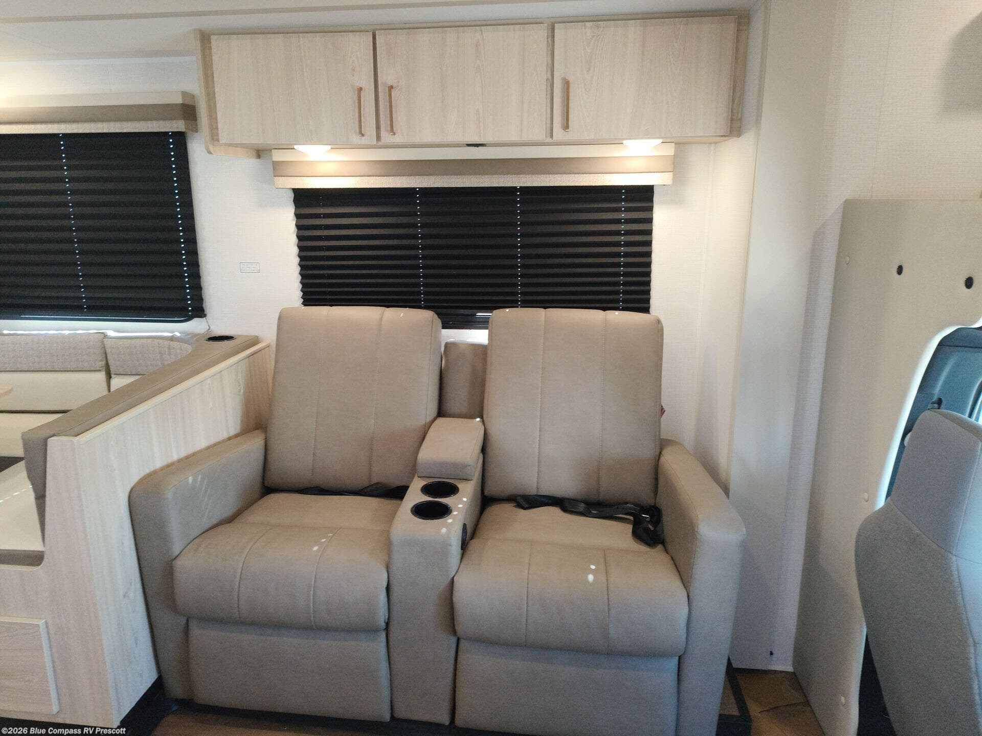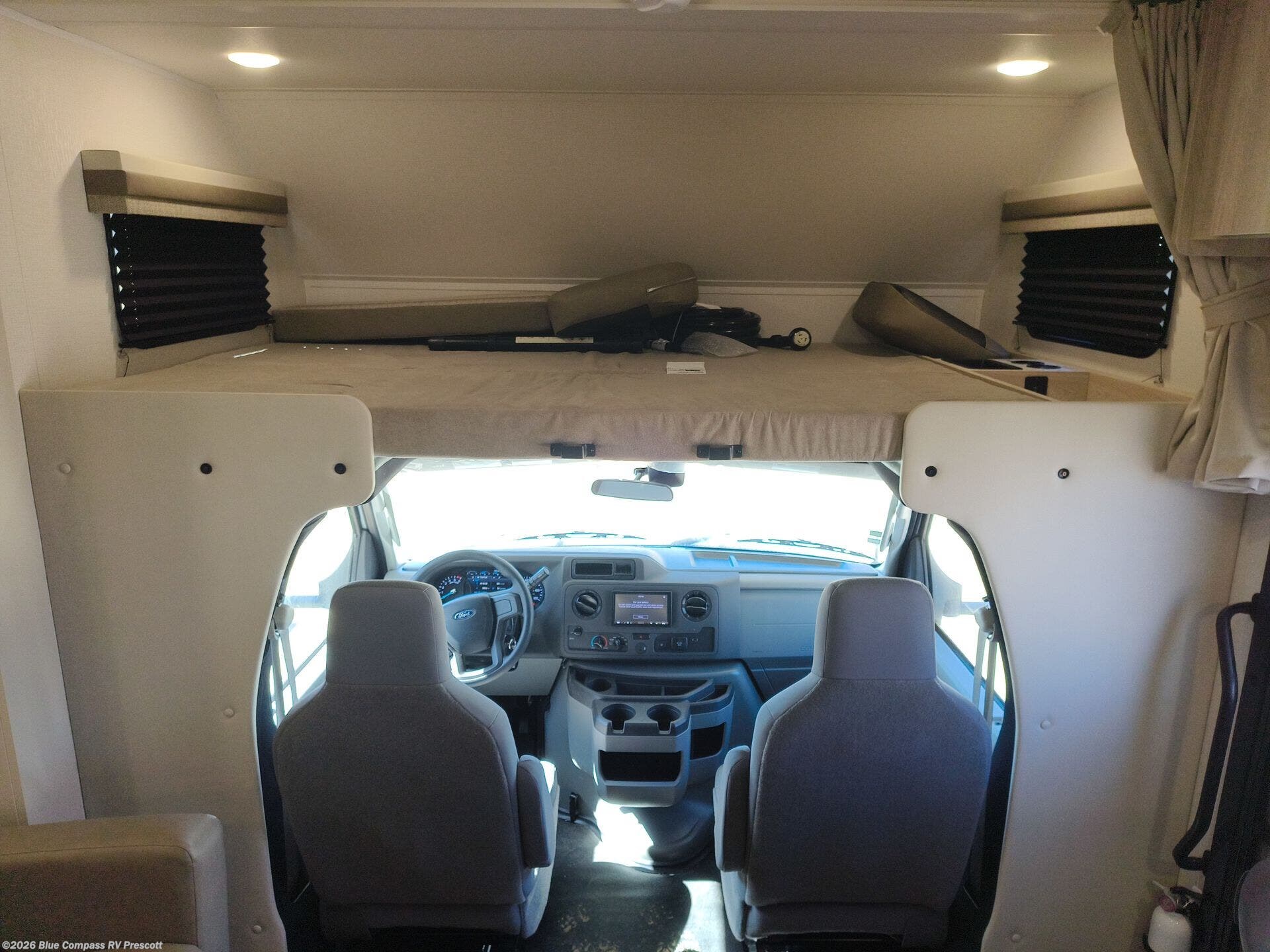 With any Entrada Class C gas motorhome from EAST TO WEST, the construction consists of a one-piece painted fiberglass front cap, a TPO roof membrane, and 2" Azdel composite sidewalls for added durability. There are rotocast exterior storage compartments with slam latch doors, along with an exterior LP Quick Connect, and a power awning with an LED light strip. You will also find rear and sideview cameras to help make maneuvering and parking your RV easier than ever. Inside, you'll feel right at home with soft close hardwood cabinet doors and drawers, a high-altitude tankless water heater, plus a 12V smart TV and USB ports to keep your electronics charged up!