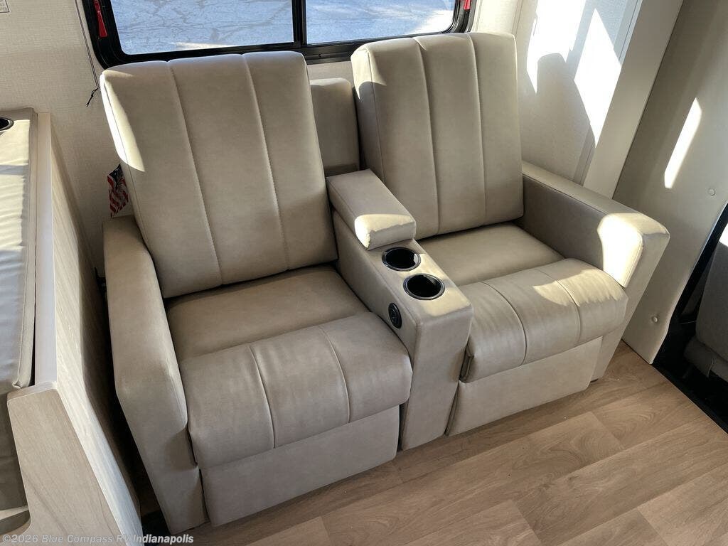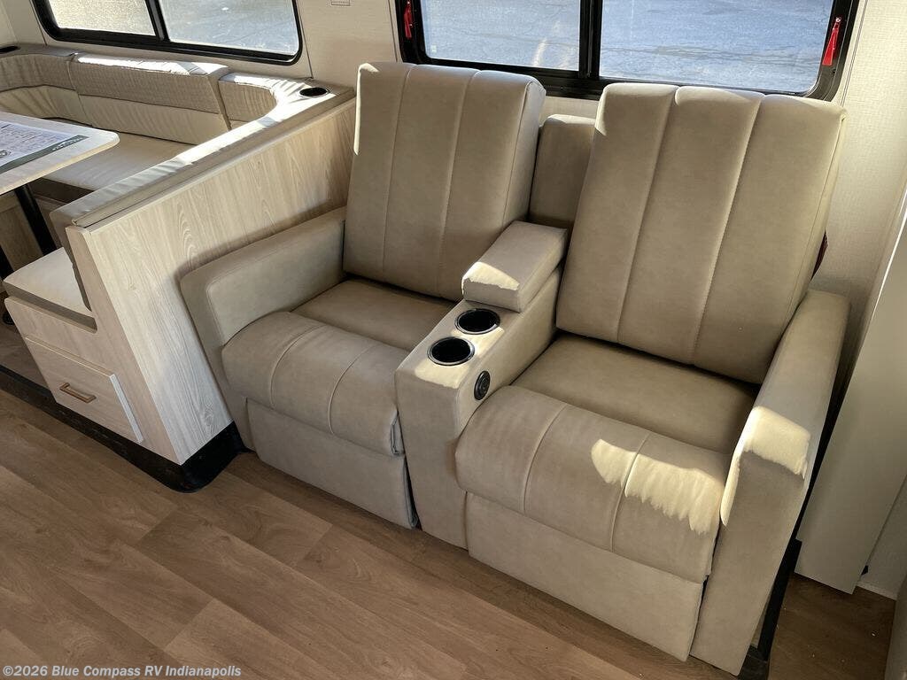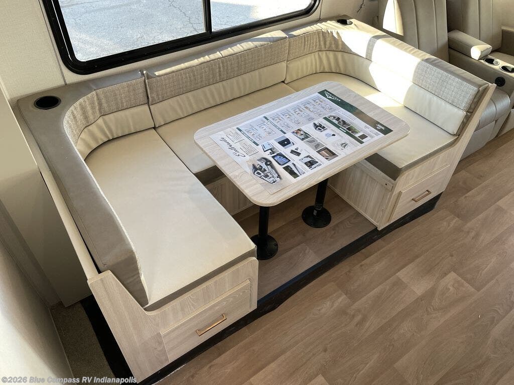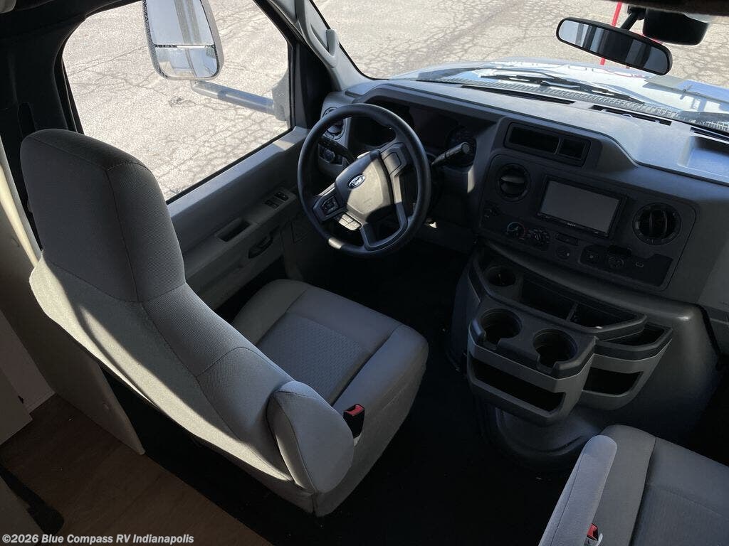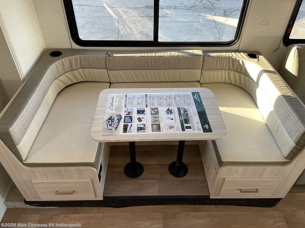 With any Entrada Class C gas motorhome from EAST TO WEST, the construction consists of a one-piece painted fiberglass front cap, a TPO roof membrane, and 2" Azdel composite sidewalls for added durability. There are rotocast exterior storage compartments with slam latch doors, along with an exterior LP Quick Connect, and a power awning with an LED light strip. You will also find rear and sideview cameras to help make maneuvering and parking your RV easier than ever. Inside, you'll feel right at home with soft close hardwood cabinet doors and drawers, a high-altitude tankless water heater, plus a 12V smart TV and USB ports to keep your electronics charged up!