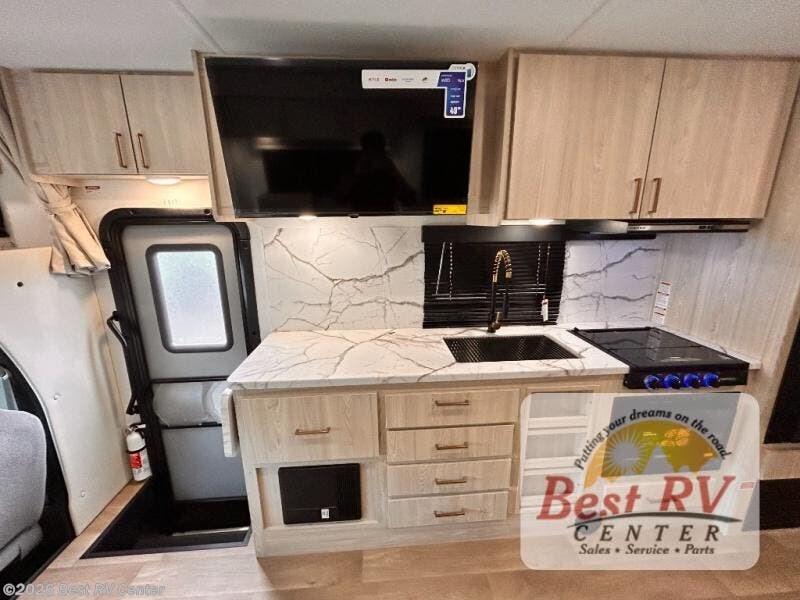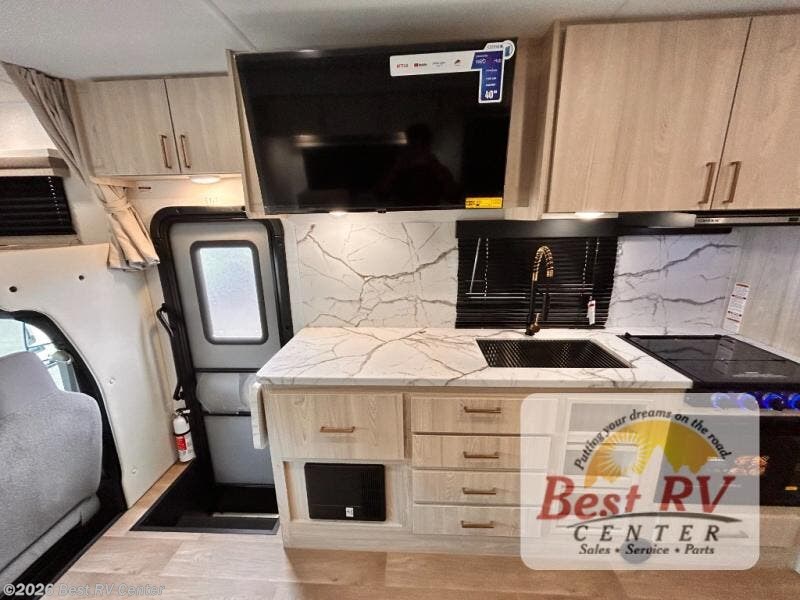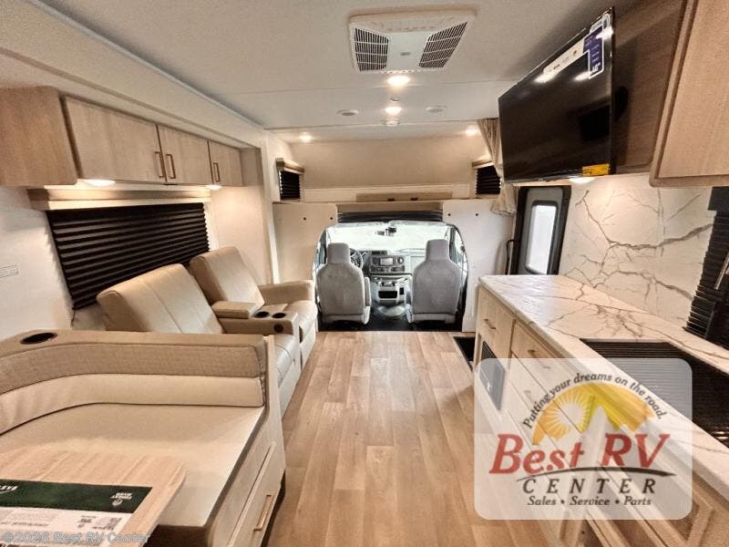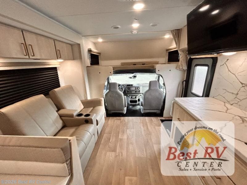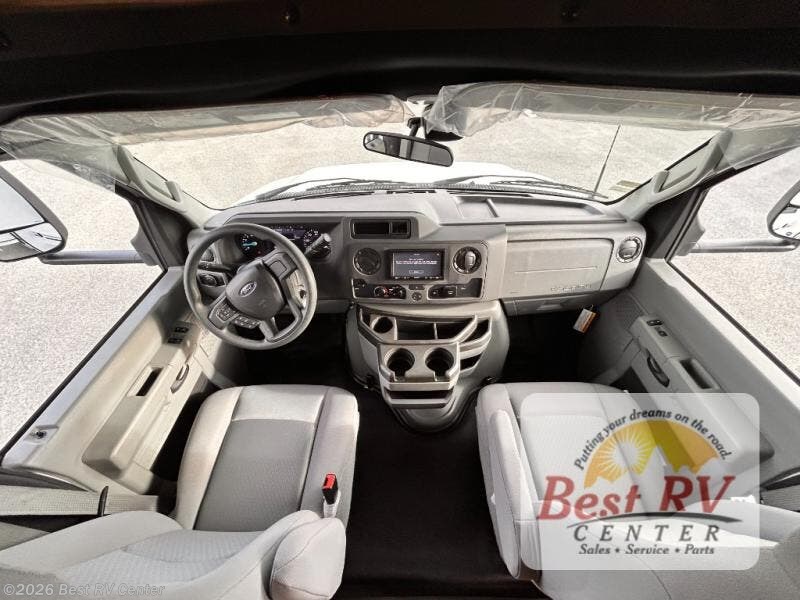 - 40" 12V LED TV, 10.7 CF 12V REFRIGERATOR, BLACK TANK FLUSH, ONE PIECE MOLDED FIBERGLASS FRONT CAP, PWR AWNING WILED LIGHT STRIP, BACKUP AND SIDE VIEW CAMERAS W/MONITOR, 7500LB HITCH ON E450 (S000LBS ON E350) 2" SIDEWALLS W/AZDEL COMPOSITE