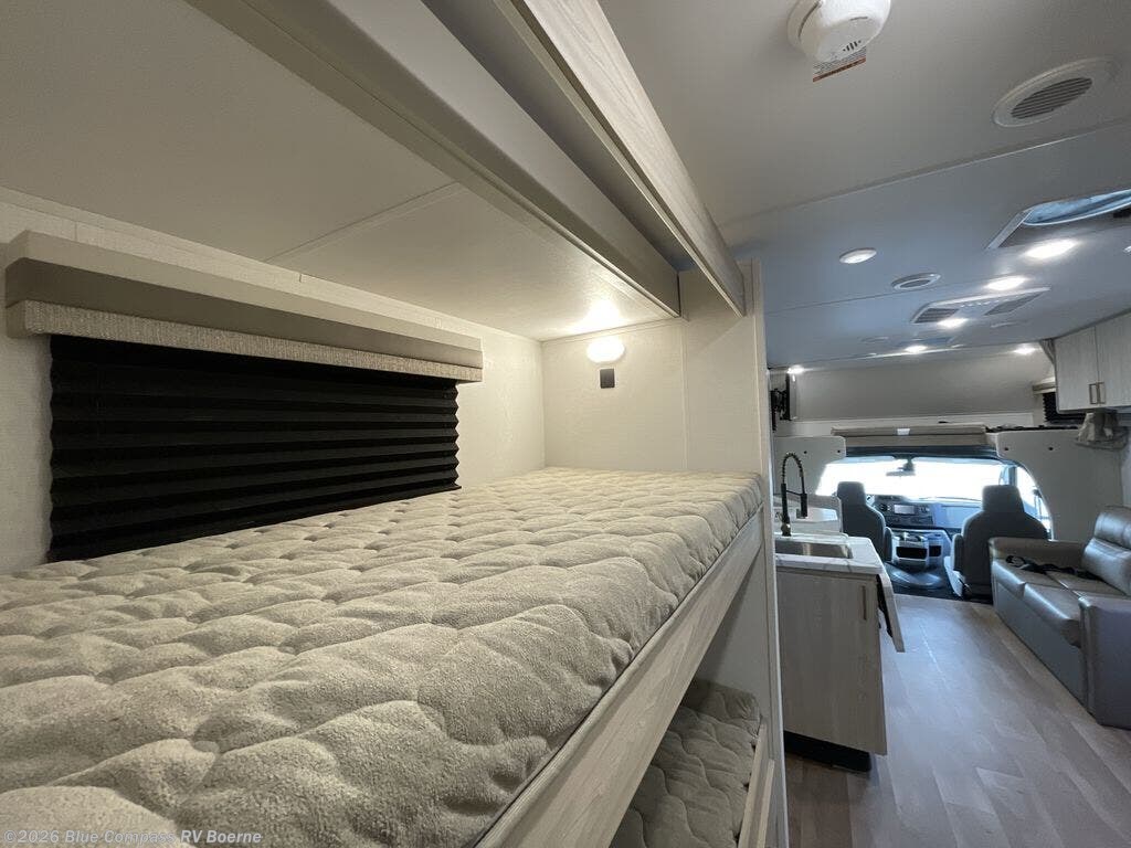 This Entrada Class C gas motorhome has quite a lot of class and comfort! Every inch of this coach has added living space because of the full-wall slide on the driver's side, and this slide adds extra room for additions like the bunk beds. Not only is there a set of bunks on the slide, but there is also a bunk above the cab if someone else wants to spend the night on a bunk bed. You will have a great night's rest on the queen bed in the rear master suite, and since this bedroom gives you a private entrance into the dual-entry bathroom, you won't have to go far in the middle of the night. This coach also has great entertainment with a 40" 12V, and there is a space prepped in the bedroom if you decide to add another.