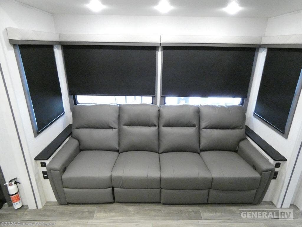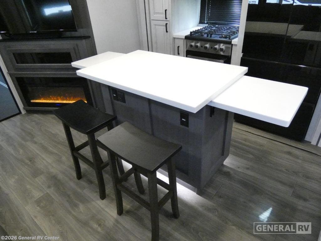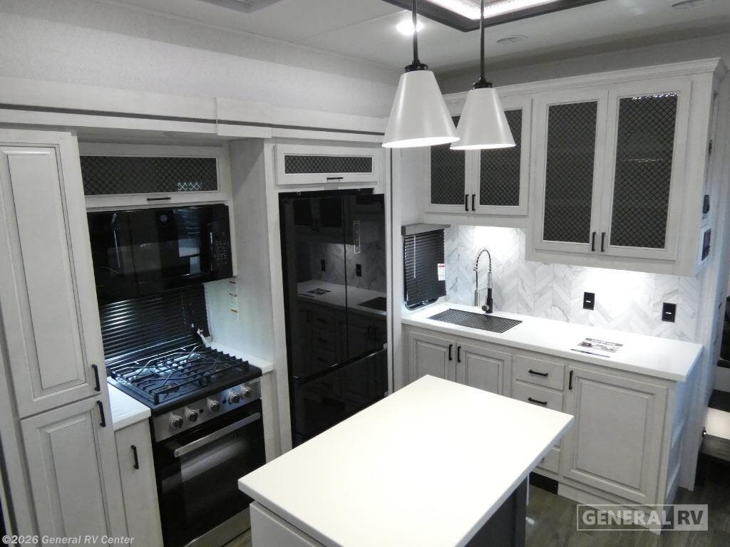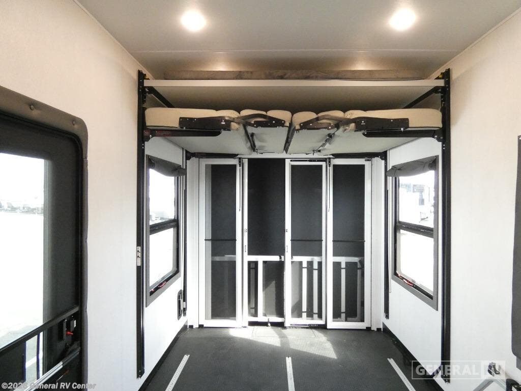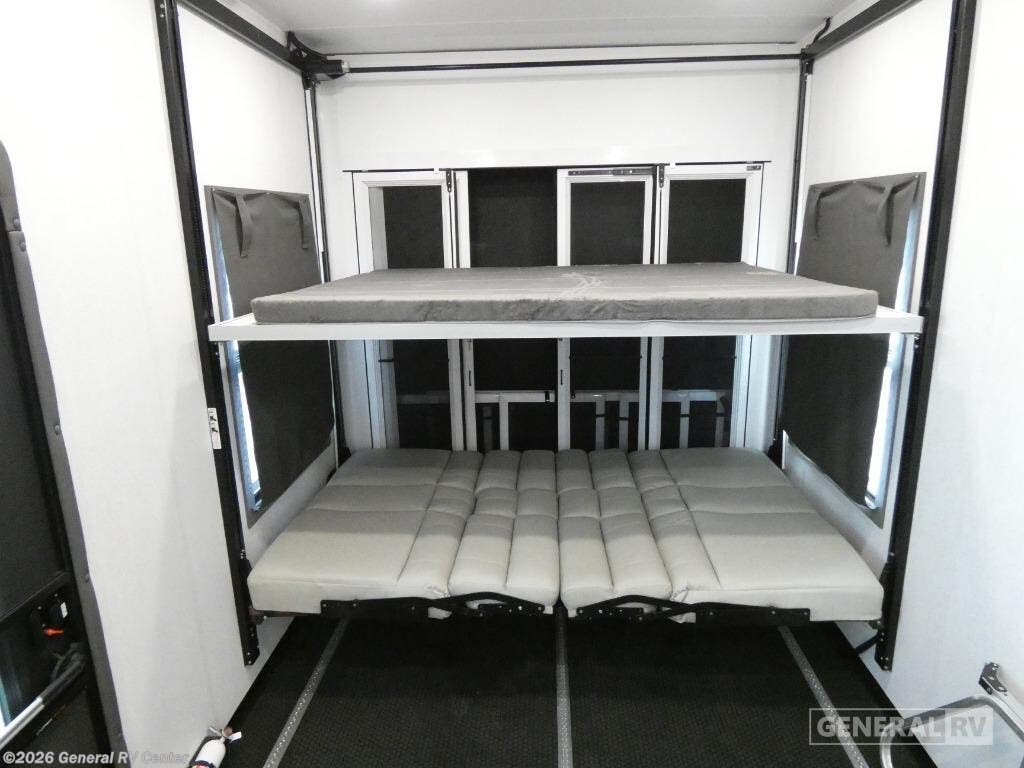 EAST TO WEST Takoda toy hauler 400TH highlights: 16' Separate Garage 32" TV in Garage King Bed Slide Out Kitchen Pantry Garage In-Floor Storage Bath and a Half Countertop Extensions This toy hauler resembles the layout of model 350TH, but you'll enjoy a larger garage in this 400TH model to fit more toys and gear! Once your toys are unloaded from the separate garage, you can enjoy the 3-seasons door with tinted sliding windows and the rear deck system with an awning and steps. Your guests can sleep here at night since there is a drop-down queen bed, two happijac sofas, plus a loft with a ladder and a 28" x 70" mat. There is even a half bath here for convenience! The main living area will be a favorite place to visit together with its large sofa, 50" TV with a fireplace, and spacious kitchen island with two stools and countertop extensions. The chef of your group will also love the additional counter space and deep-seated stainless steel farmhouse sink, the GE Profile free-standing gas range and convection microwave/air fryer, plus the 16 cu. ft. 12V French door refrigerator with a double drawer freezer. Everyone can take turns cleaning up in the full bath towards the front, and you are sure to enjoy the front private bedroom all to yourselves. Here, you'll find a king bed slide out with bedside shelves and underbed storage, a dresser with a 32" TV, plus a front wardrobe and a wardrobe with washer/dryer prep! With any Takoda toy hauler fifth wheel by EAST TO WEST, you will be able to enjoy your RV for years to come thanks to the durable materials that includes Formaldehyde free fiberglass insulation in roof, front cap & main floor, and AzdelĀ® laminated sidewalls, slide-out end walls, slide-out roofs & rear wall w/ 2 lb. block foam insulation. You will love how easy it will be to bring your toys along with a 6000-watt NPS gas generator, two 30 gallon fuel tanks with a pump station, and a all weather ramp door, garage dovetail lockable storage box. The Comfort Package will bring you just that with a high-efficiency triple A/C system, a 40,000 BTU high-capacity furnace, 12V heat pads on holding tanks, and dual attics vents. The interior also includes solid surface kitchen countertops with flip-up extensions & solid surface bathroom vanities, day and night Slow Rise roller shades, plus a 30" over-the-range convection microwave for easy cooking!