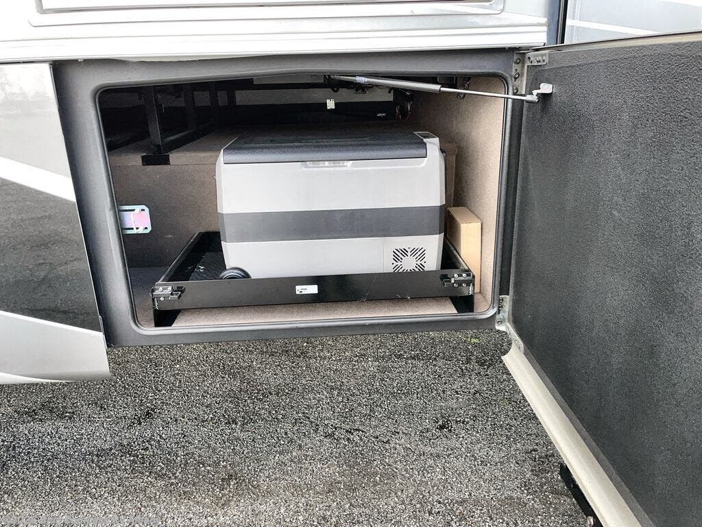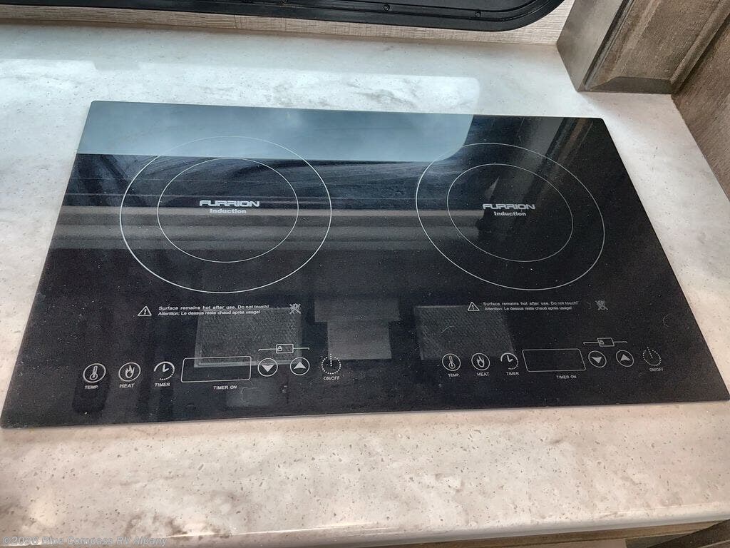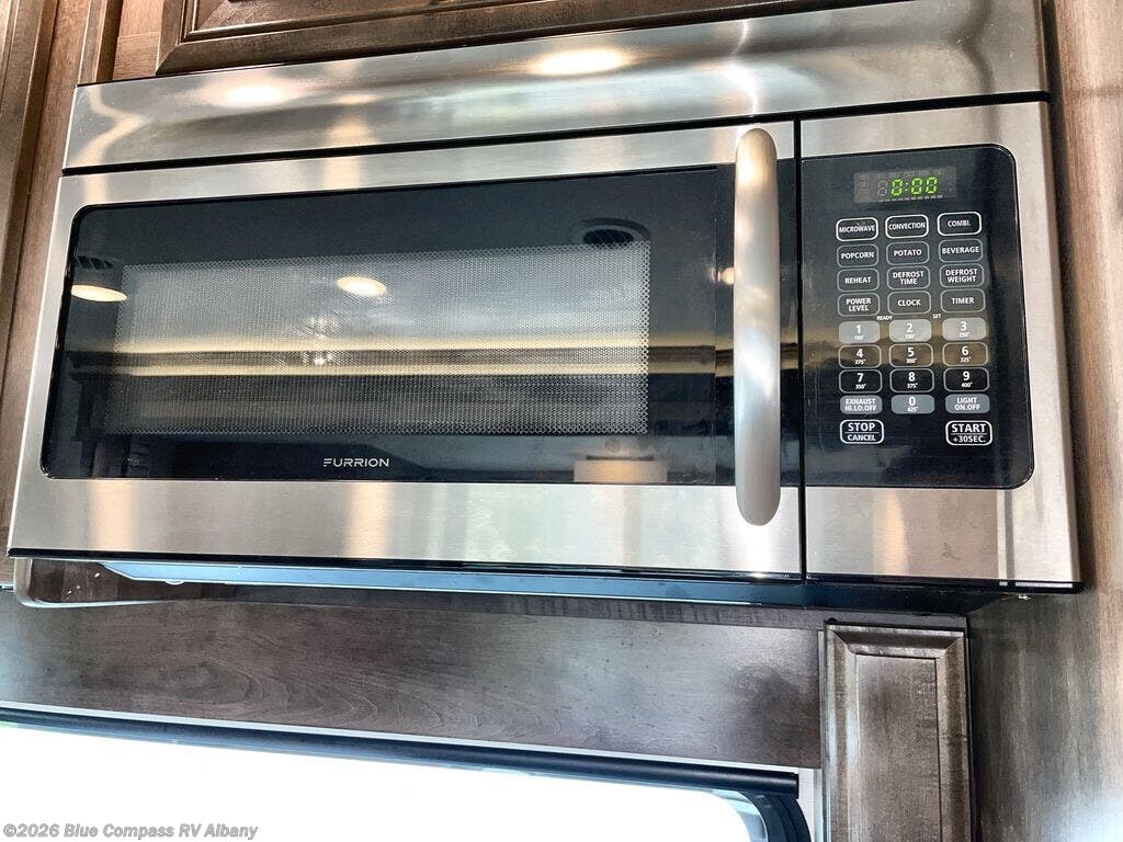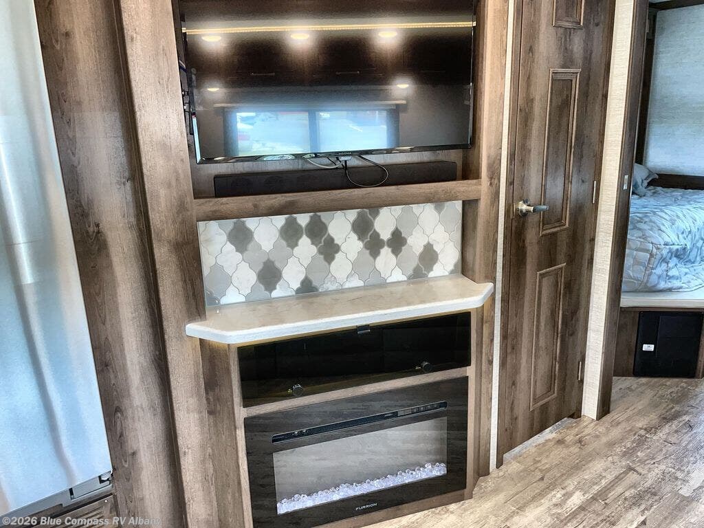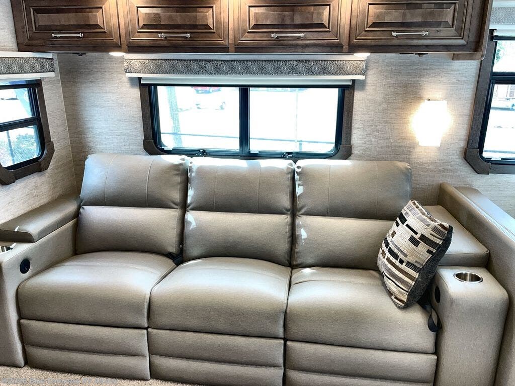 Get ready for fun adventures in this double slide out coach! Once you arrive at your destination, set up the 17' power awning with LED lights and watch the big game on the exterior LED Smart TV. You'll find plenty of seating spaces in the main living area on the 93" reclining sofa or at the booth dinette, plus there is a fireplace here and an LED HD Smart TV. The kitchen is any chef's dream with its residential refrigerator, two burner induction cooktop, and residential-size convection microwave. This model also includes a bath and a half that will come in handy when traveling with friends and family, and don't overlook the master bedroom with a power head lift king bed slide, large wardrobes, and an LED Smart TV!