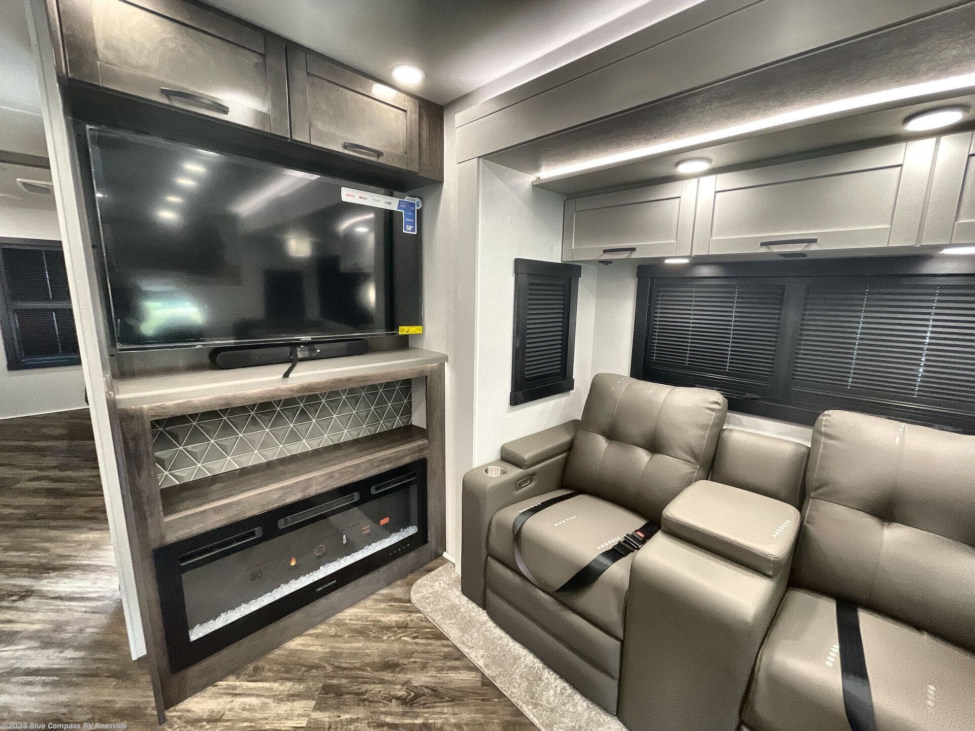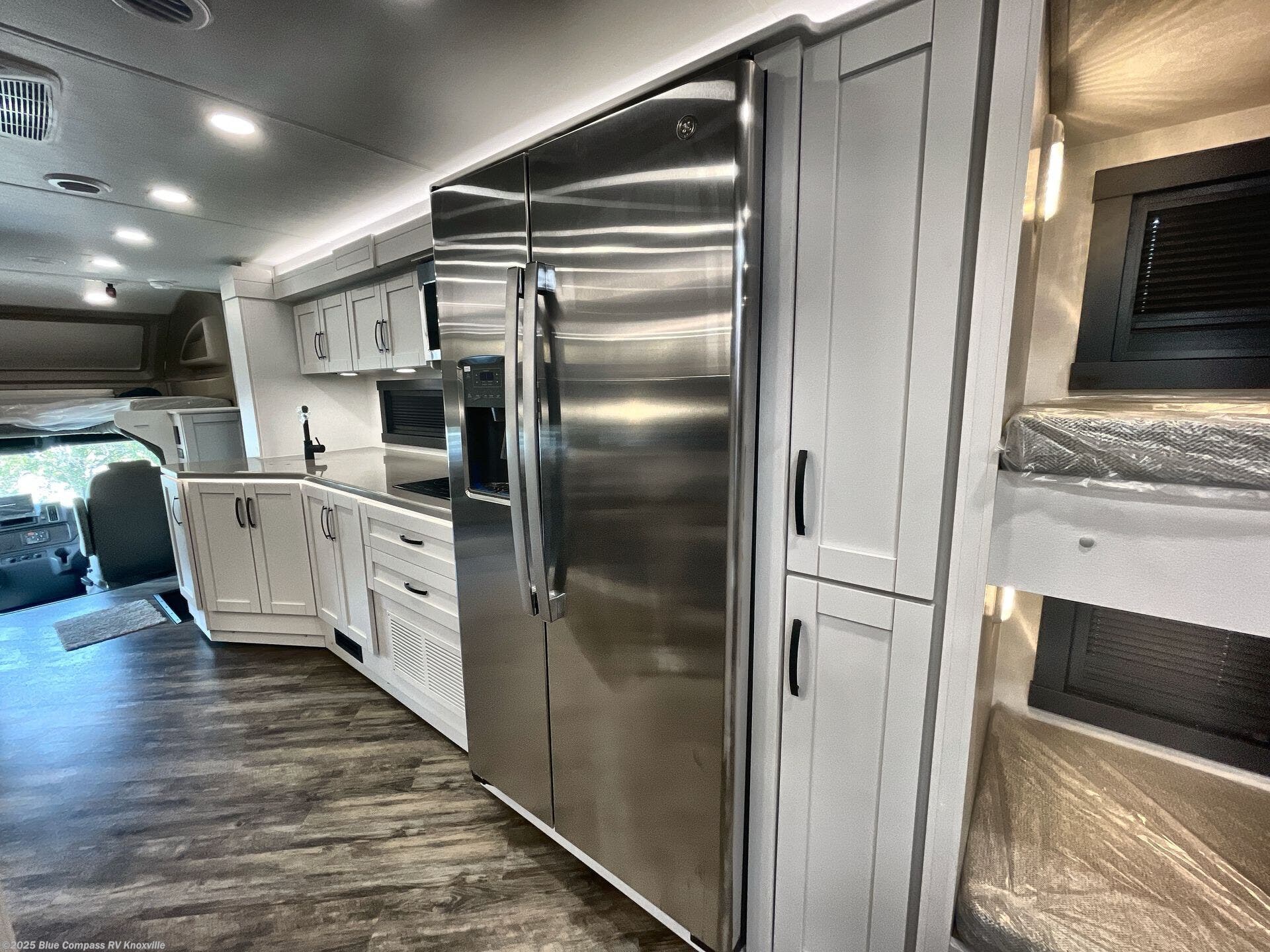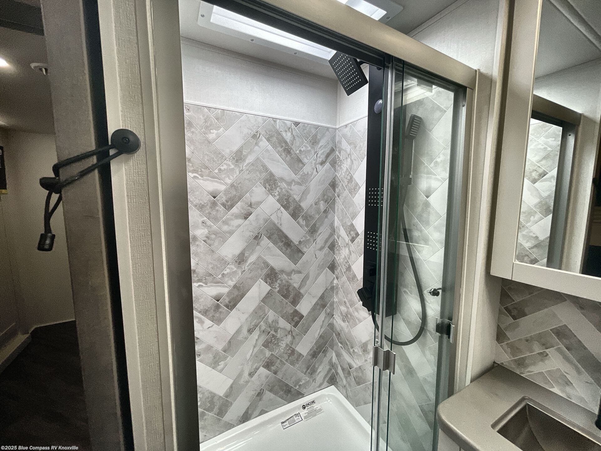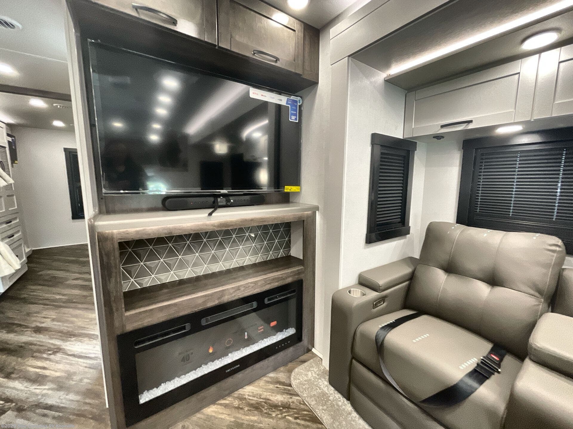 Family vacations just got sweeter in this coach with 28" x 70" bunk beds! The little ones will love having their own bunks with wall-mounted tablet holders in each, plus there is a cab-over bunk for even more sleeping space. You will have your own bedroom in the back with a king bed, a wardrobe to keep your clothes tidy, and an optional washer and dryer if you plan to go full-time. Everyone can meet in the main living area on the72" hide-a-bed sofa or at the booth dinette, and there is an LED HD Smart TV here and a fireplace for a more at-home feel. A residential refrigerator comes standard in the kitchen, as well as a pantry to store snacks and a two burner induction cooktop. The outside is just as impressive as the inside with its 18' power awning with LED lights and outside entertainment center!