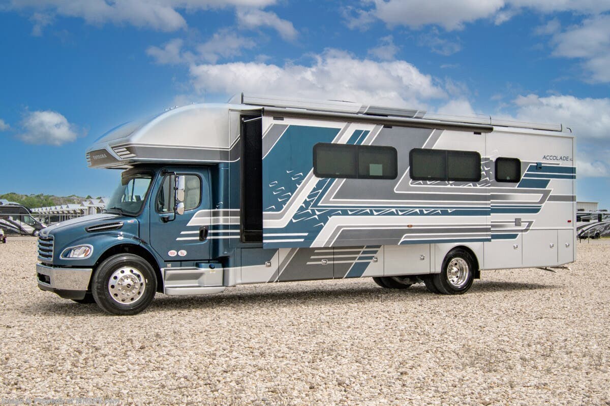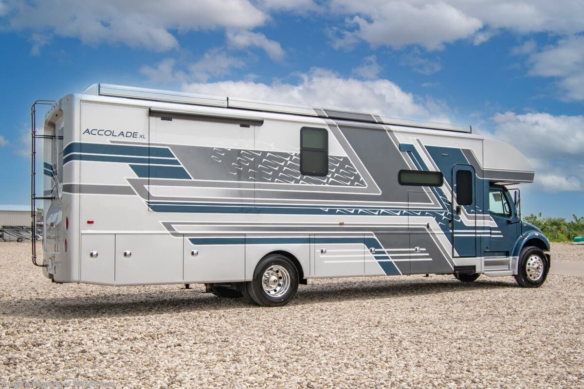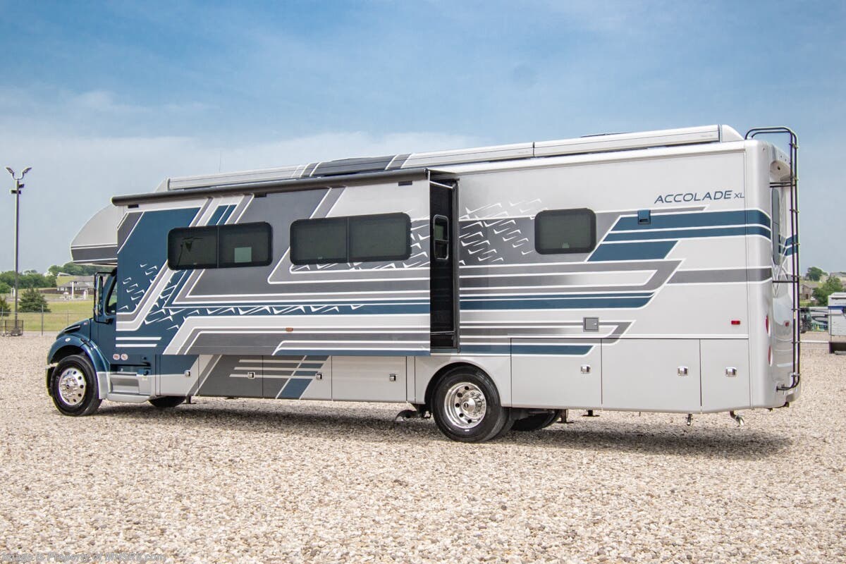 MSRP $417,219. All New Luxury Diesel Super C RV from Entegra Coach! The 2026 Entegra Coach Accolade XL is now available for Sale at Motor Home Specialist; the #1 Volume Selling Motor Home Dealership in the World! The 37K Bath & 1/2 is approximately 39 feet 4 inches in length and features 2 slide-out rooms, King size bed, cab over loft, Freightliner® S2RV chassis and a Cummins® 6.7L ISB diesel engine with 360HP. This beautiful RV features the Customer Value Package which includes a 2000 watt inverter, backup & sideview cameras with monitors, convection microwave, roof mounted awning electric power cord reel, frameless windows, infotainment system, residential refrigerator, Aqua Hot with in-floor heat, and E-Z™ Drive Premier package that provides the superior ride and handling experience travelers have come to expect from Entegra Coach. E-Z™ Drive includes a computer-balanced driveshaft, rear air suspension, heavy-duty rear stabilizer bar, full air brakes, and SACHS brand shocks. Additional options include the Starlink RV Satellite System, customer value package, exterior freezer and stackable washer/dryer. The Entegra Accolade XL also boasts an impressive list of standard features including a one-piece fiberglass front cap, full pass through storage compartments with lockable latch doors, exterior entertainment center, large stainless steel sink with sink covers, solid surface countertops with decorative backsplash, water filtration system, variable geometry engine exhaust brake, Michelin® 275/80R 22.5 14 ply tires with Alcoa® aluminum rims, Allison® 3000 MH automatic transmission, TuffShell™ vacuum-bond laminated floor and sidewalls, Dual 15,000-BTU A/C unit with heat pumps, Thetford® Sani-Con Turbo Macerator system, Onan® 8,000-watt diesel generator with auto-gen start, Entrance door with industry’s largest travel-view window, roof-mounted Girard® NOVA II dual-pitched patio awning with LED lights, 9" Sony® infotainment center with Apple CarPlay® and Android Auto™, Backup and side-view cameras, High-intensity recessed LED ceiling lights, Raised-panel high-gloss hardwood cabinetry and stiles throughout with deluxe hidden hinges, and much more. At Entegra Coach, excellence doesn't end with stunning interiors and superior craftsmanship. They back each luxury coach with the industry's highest level of service. Entegra Coach's industry leading 2-year limited warranty is double that of most other manufacturers and offers more coverage. **Unit Not California CARB Compliant and Cannot be Registered in California**. Shop hundreds of motorhomes including Super C RVs at 1 location! Choose from Entegra Accolade – Accolade XL – Accolade XT – Esteem XL – Dynamax DX3 – Dynaquest XL – Europa – isata 5 - Thor Magnitude – Magnitude Grand – Omni – Omni Trail – Pasadena – Inception - East to West Bravado – Nexus Ghost – Wraith – Rebel – Verrado and much more. We also sell quality pre-owned models such as Jayco Seneca XT – Seneca – Seneca Prestige - Greyhawk XL – Tiffin Allegro Bay – Newmar Super Star – Supreme Aire – Renegade Veracruz – Valencia – Verona – Verona LE – Explorer – Coachmen Entourage and much more. Visit for our complete line-up and the sale prices that have made us the #1 volume selling motor home dealership in the world 12 years in a row! For additional details on this unit and our entire inventory including brochures, window sticker, videos, photos, reviews & testimonials as well as additional information about Motor Home Specialist and our manufacturers please visit us at or call 800-335-6054. At Motor Home Specialist, we DO NOT charge any prep or orientation fees like you will find at other dealerships. All sale prices include a 200-point inspection, interior & exterior wash, detail service and a fully automated high-pressure rain booth test and coach wash that is a standout service unlike that of any other in the industry. You will also receive a thorough coach orientation with an MHSRV technician, a night stay in our delivery park featuring landscaped and covered pads with full hook-ups and much more! Read Thousands upon Thousands of 5-Star Reviews at and See What They Had to Say About Their Experience at Motor Home Specialist. WHY PAY MORE? WHY SETTLE FOR LESS?