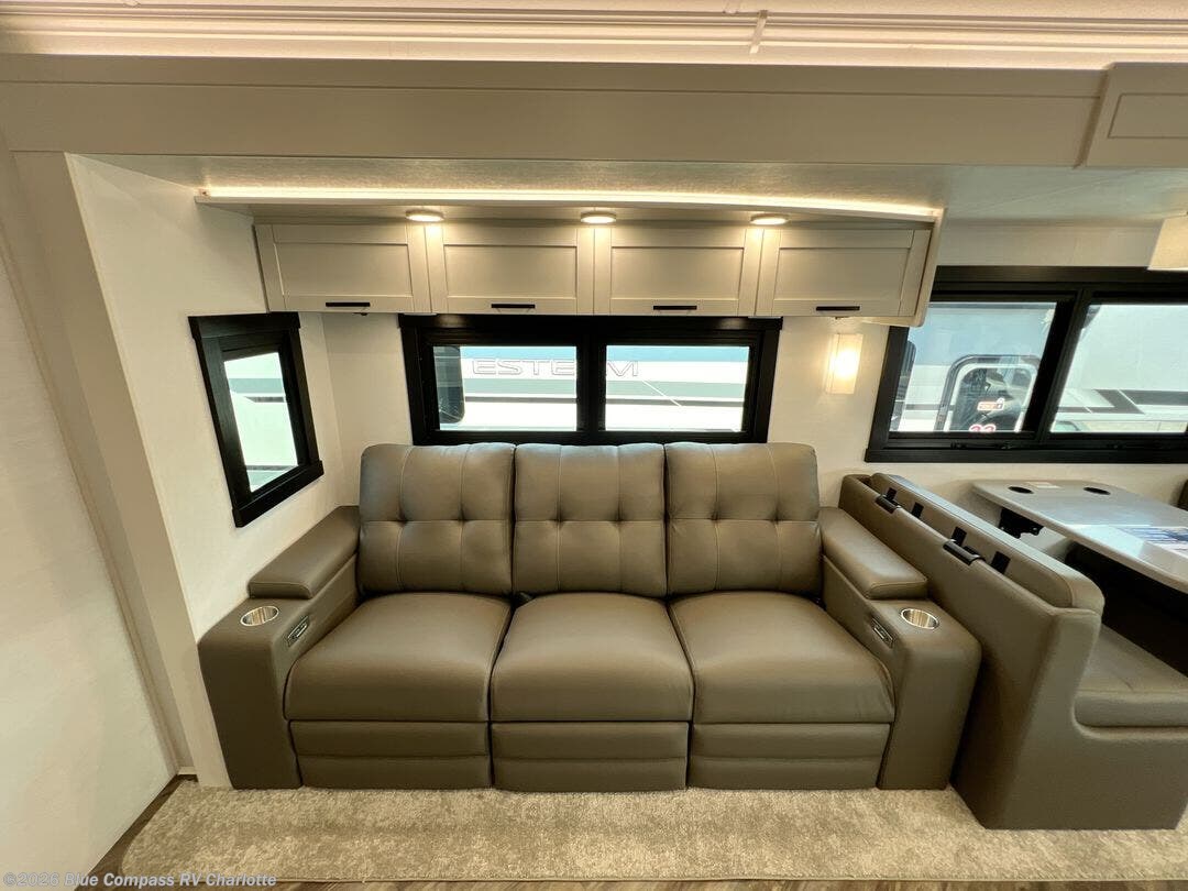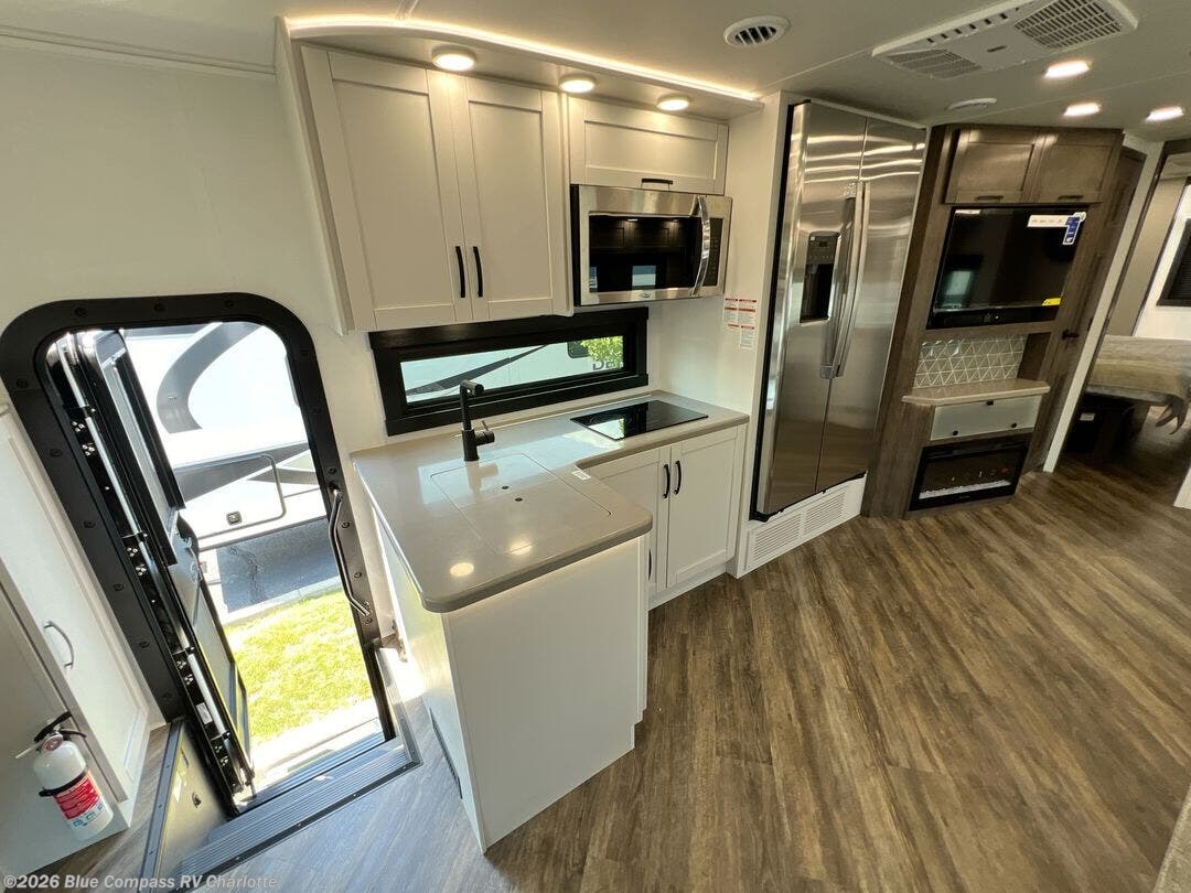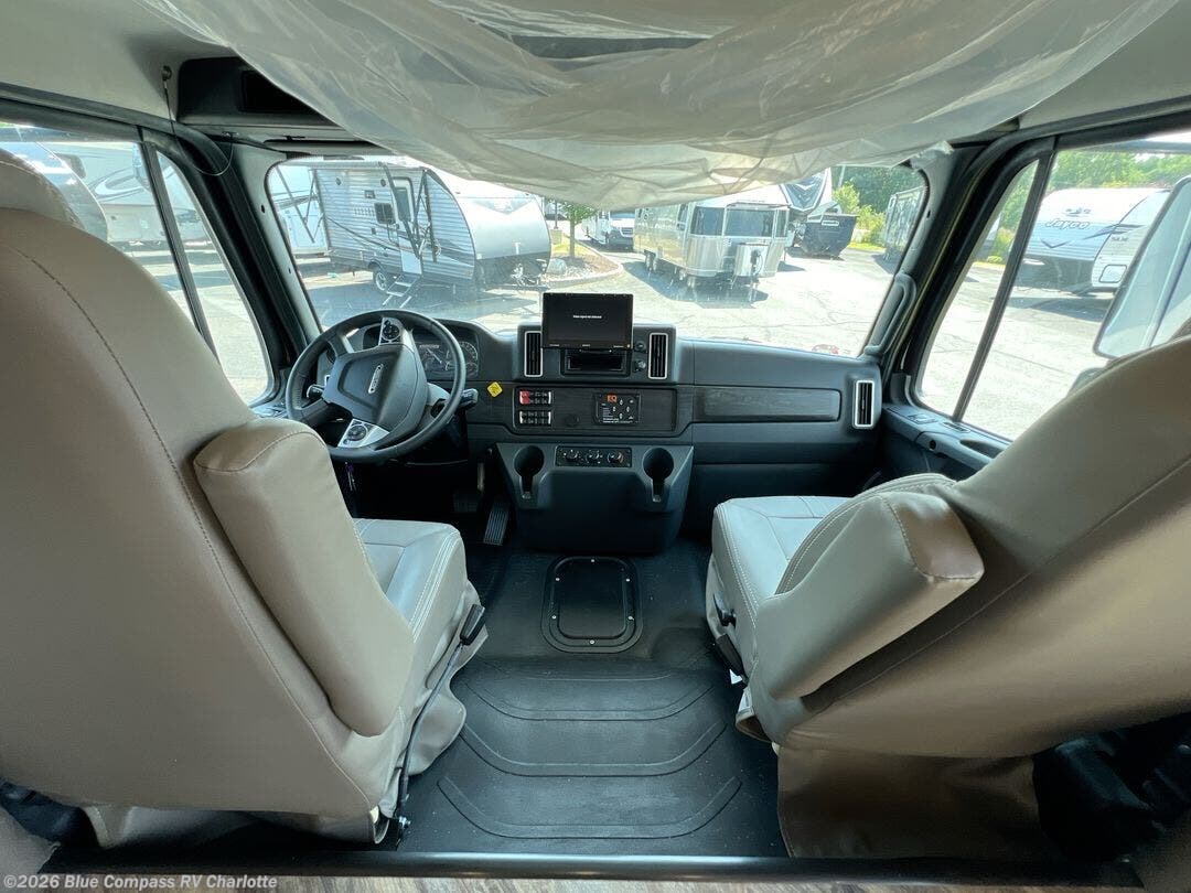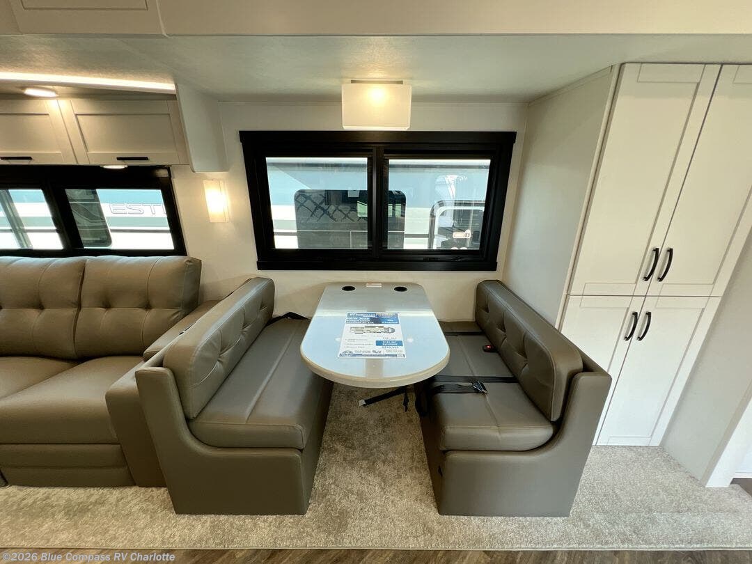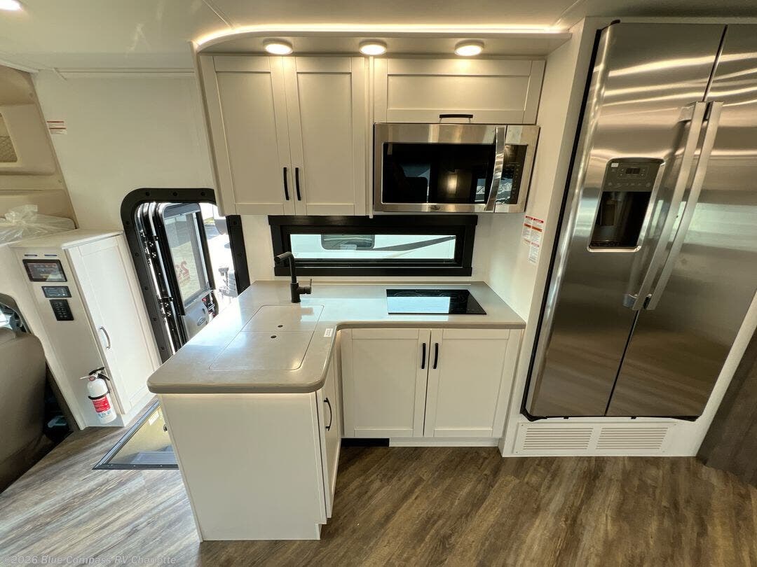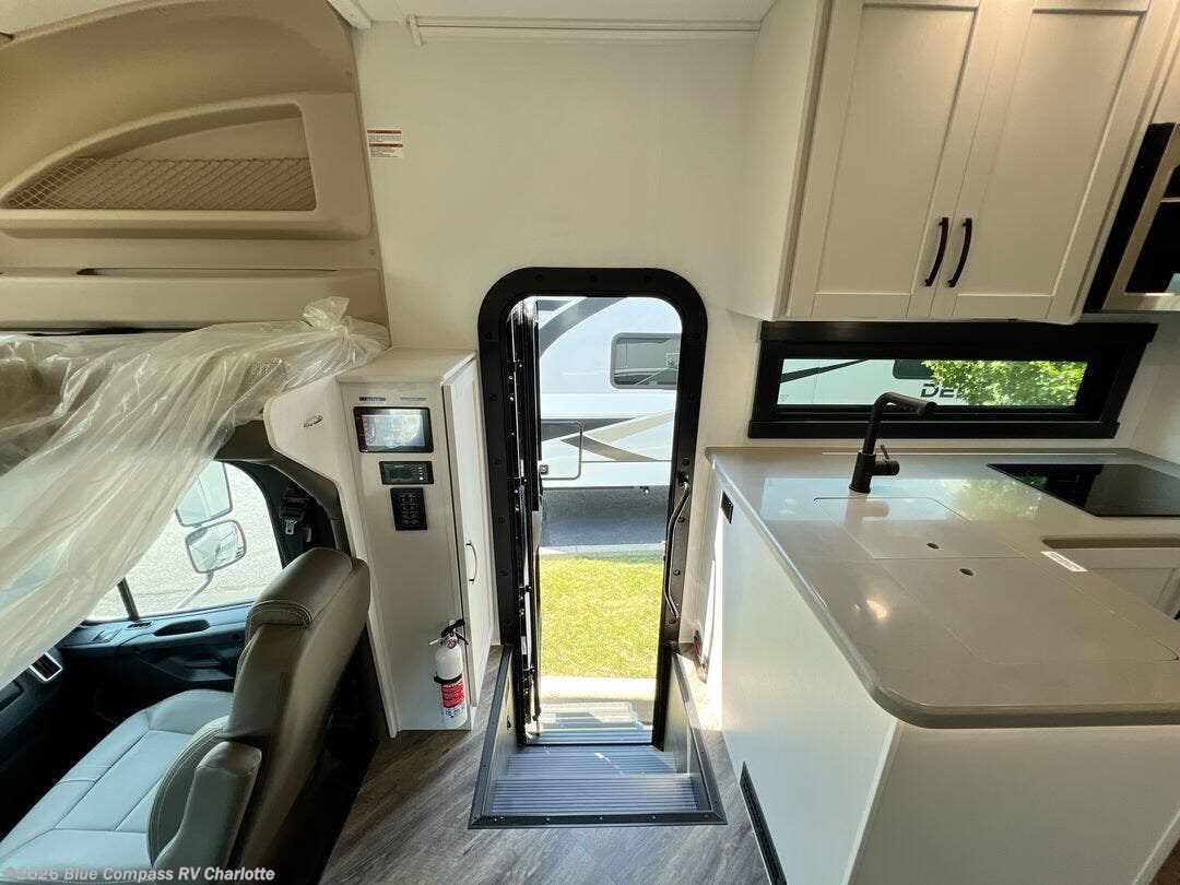 You will appreciate all of the conveniences throughout this motorhome starting with the carpeted, full pass-through storage compartment with lockable slam latch doors! The cockpit has a Sony infotainment center with Apple CarPlay and Android Auto to play your favorite tunes, and a panoramic window with a power shade so you can look out at your beautiful scenery driving down the road then enjoy privacy at night. Once you have reached your destination, you can either relax on the 93" reclining sofa or enjoy a meal at the booth dinette after preparing it with the two burner induction cooktop with LED display. You can also choose an optional free-standing dinette in place of the booth dinette. A private bedroom welcomes you to enjoy a good night's rest on the king bed after showering in the 30" x 36" shower in the full rear bathroom. The bathroom also has an area prepped to add an optional washer and dryer!