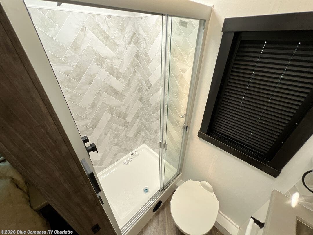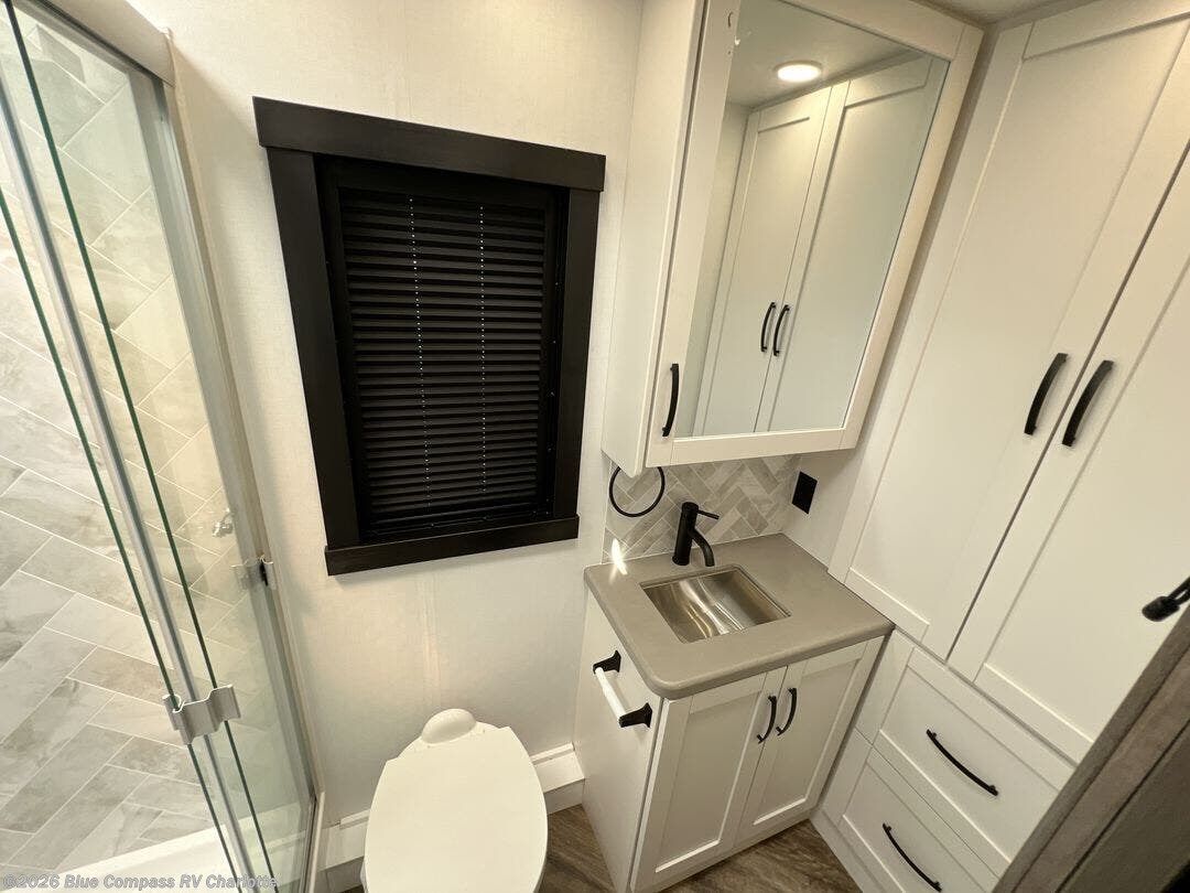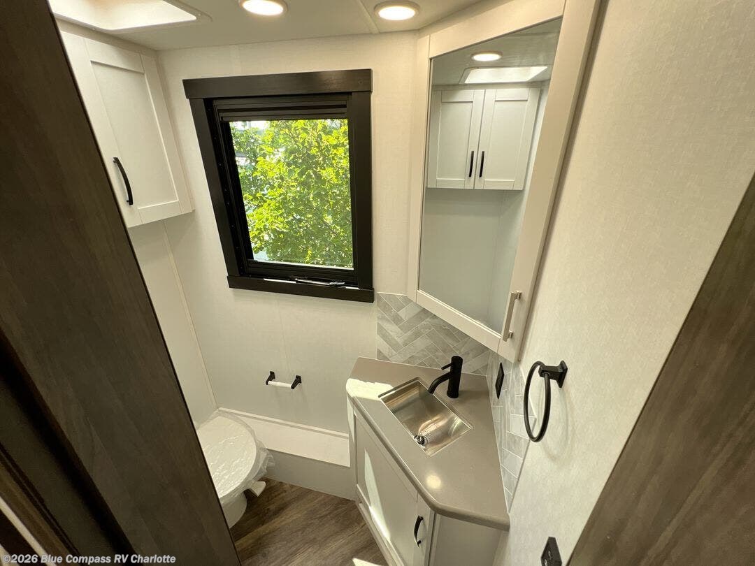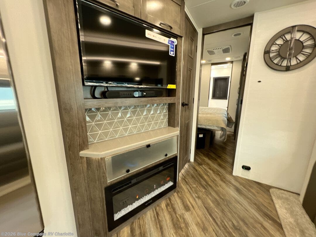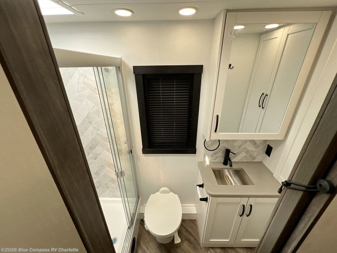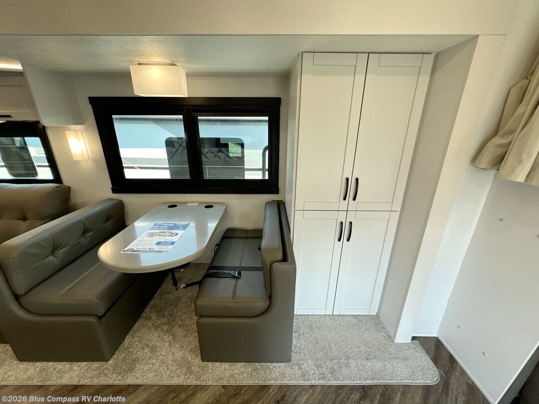 You will appreciate all of the conveniences throughout this motorhome starting with the carpeted, full pass-through storage compartment with lockable slam latch doors! The cockpit has a Sony infotainment center with Apple CarPlay and Android Auto to play your favorite tunes, and a panoramic window with a power shade so you can look out at your beautiful scenery driving down the road then enjoy privacy at night. Once you have reached your destination, you can either relax on the 93" reclining sofa or enjoy a meal at the booth dinette after preparing it with the two burner induction cooktop with LED display. You can also choose an optional free-standing dinette in place of the booth dinette. A private bedroom welcomes you to enjoy a good night's rest on the king bed after showering in the 30" x 36" shower in the full rear bathroom. The bathroom also has an area prepped to add an optional washer and dryer!