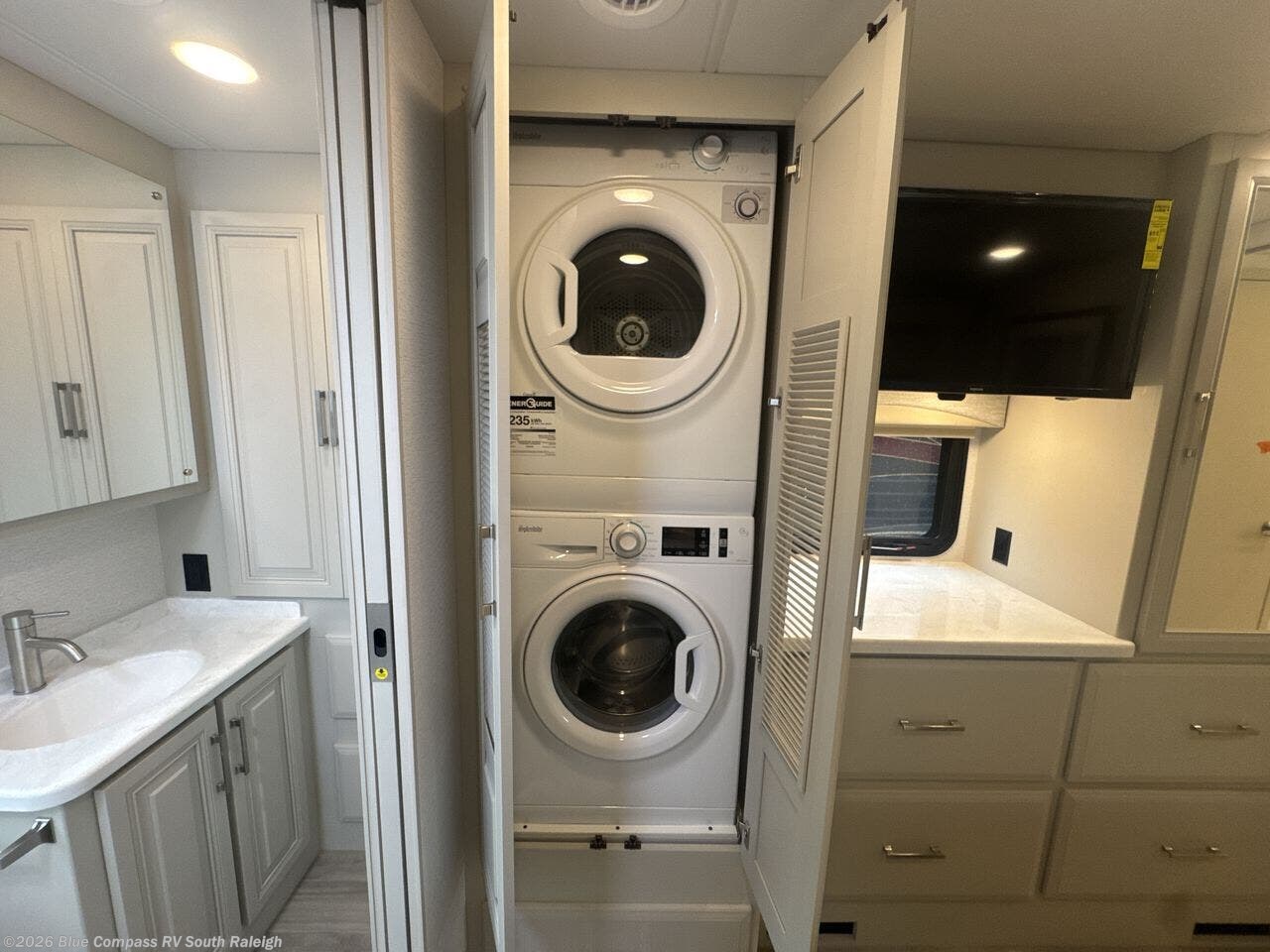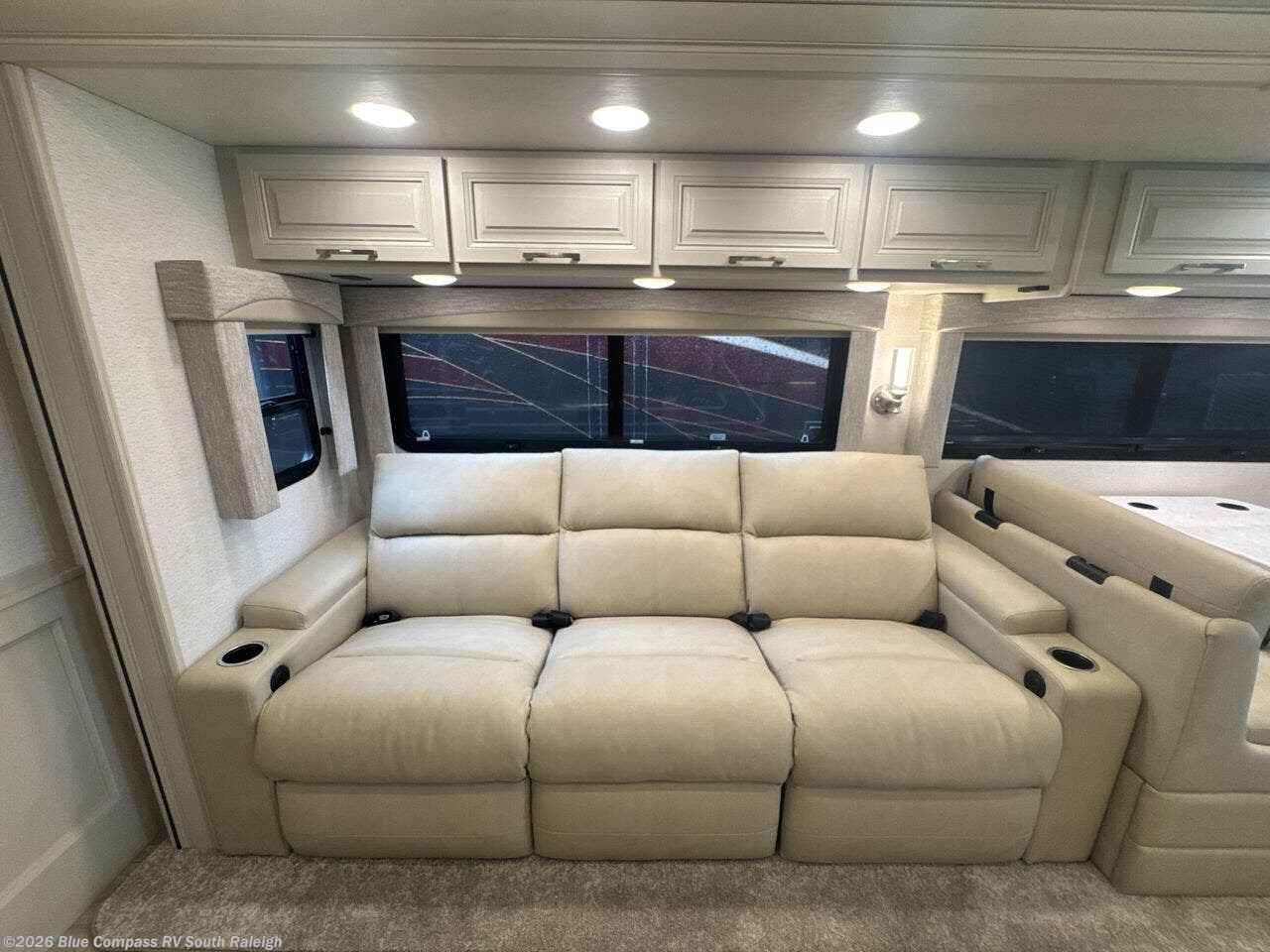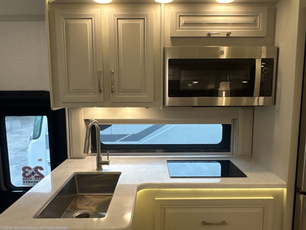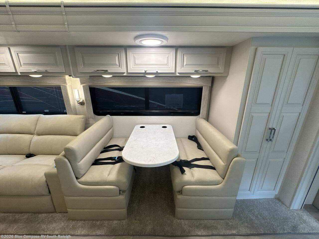 You will appreciate all of the conveniences throughout this motorhome starting with the carpeted, full pass-through storage compartment with lockable slam latch doors! The cockpit has a Sony infotainment center with Apple CarPlay and Android Auto to play your favorite tunes, and a panoramic window with a power shade so you can look out at your beautiful scenery driving down the road then enjoy privacy at night. Once you have reached your destination, you can either relax on the 93" reclining sofa or enjoy a meal at the booth dinette after preparing it with the two burner induction cooktop with LED display. You can also choose an optional free-standing dinette in place of the booth dinette. A private bedroom welcomes you to enjoy a good night's rest on the king bed after showering in the 30" x 36" shower in the full rear bathroom. The bathroom also has an area prepped to add an optional washer and dryer!