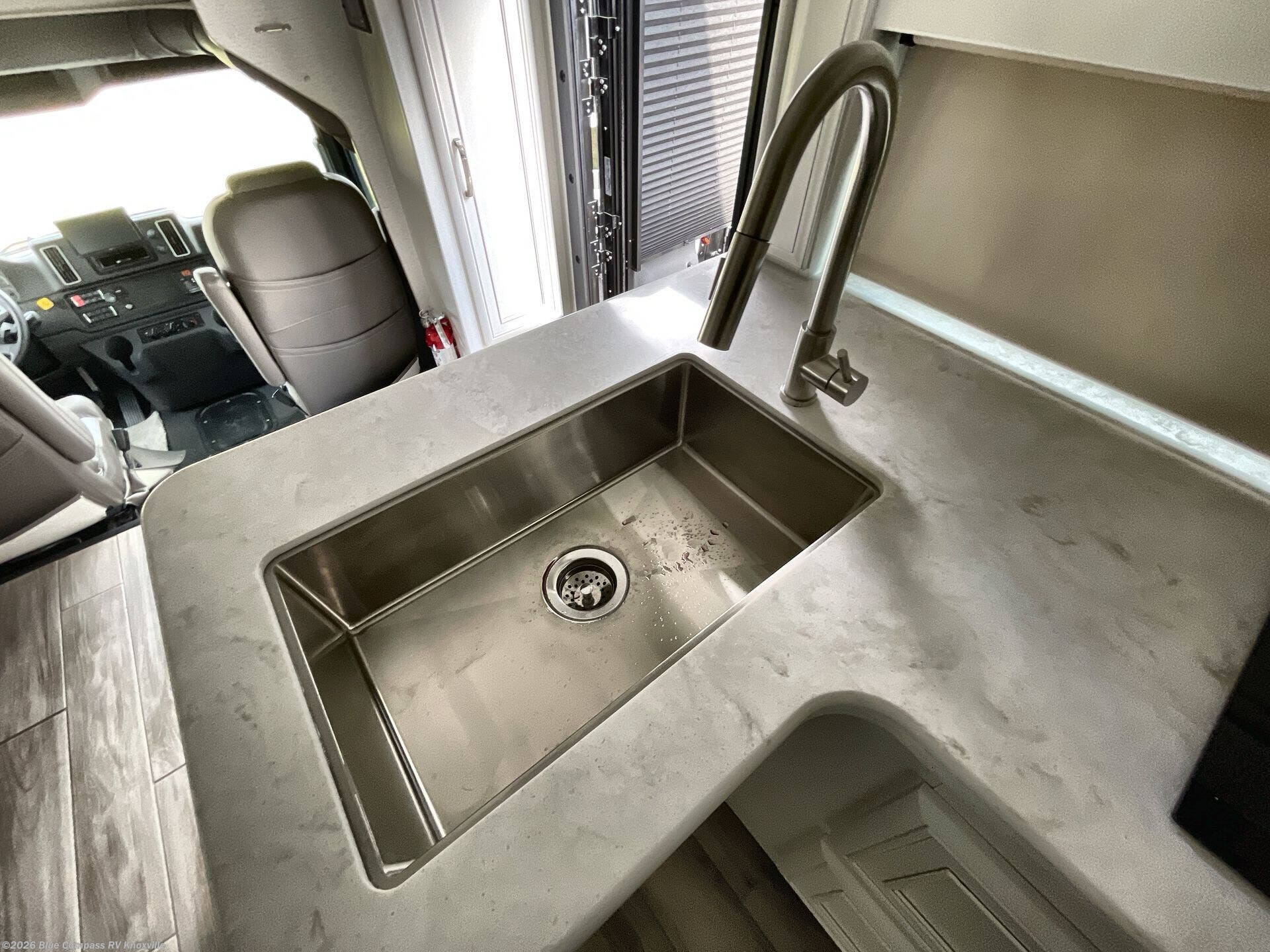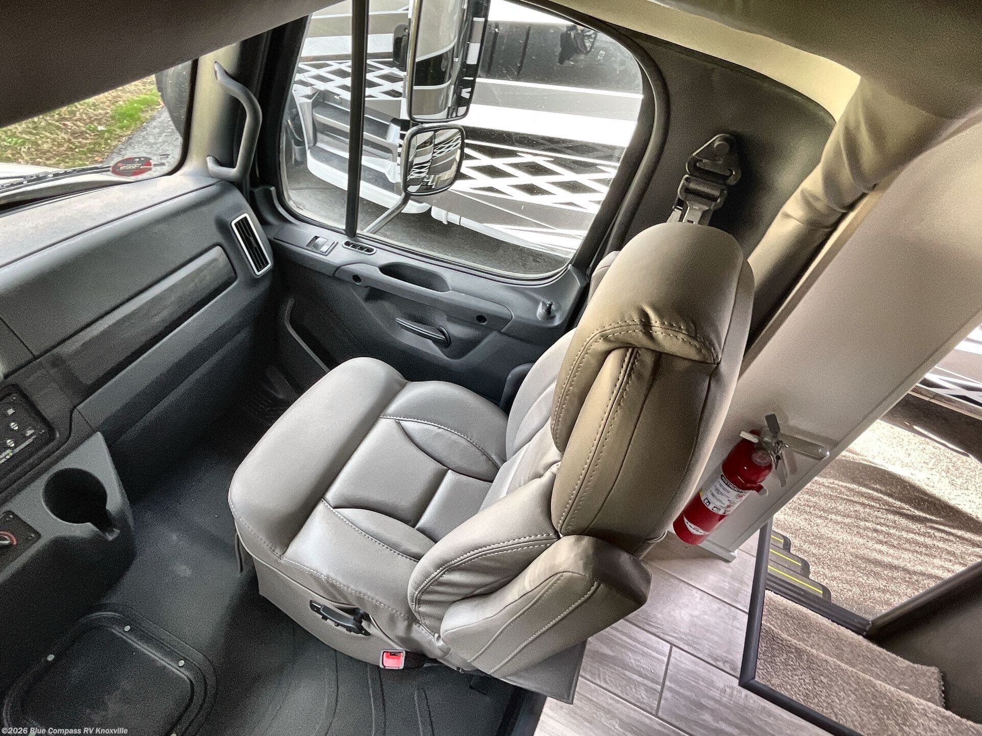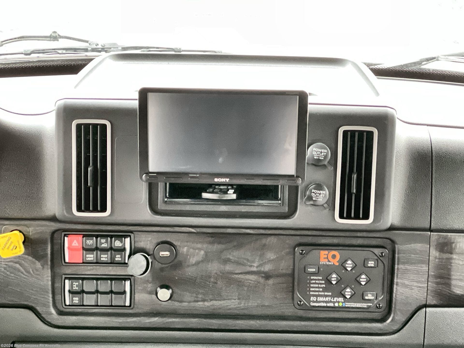 You will appreciate all of the conveniences throughout this motorhome starting with the carpeted, full pass-through storage compartment with lockable slam latch doors! The cockpit has a Sony infotainment center with Apple CarPlay and Android Auto to play your favorite tunes, and a panoramic window with a power shade so you can look out at your beautiful scenery driving down the road then enjoy privacy at night. Once you have reached your destination, you can either relax on the 93" reclining sofa or enjoy a meal at the booth dinette after preparing it with the two burner induction cooktop with LED display. You can also choose an optional free-standing dinette in place of the booth dinette. A private bedroom welcomes you to enjoy a good night's rest on the king bed after showering in the 30" x 36" shower in the full rear bathroom. The bedroom also has an area prepped to add an optional washer and dryer!