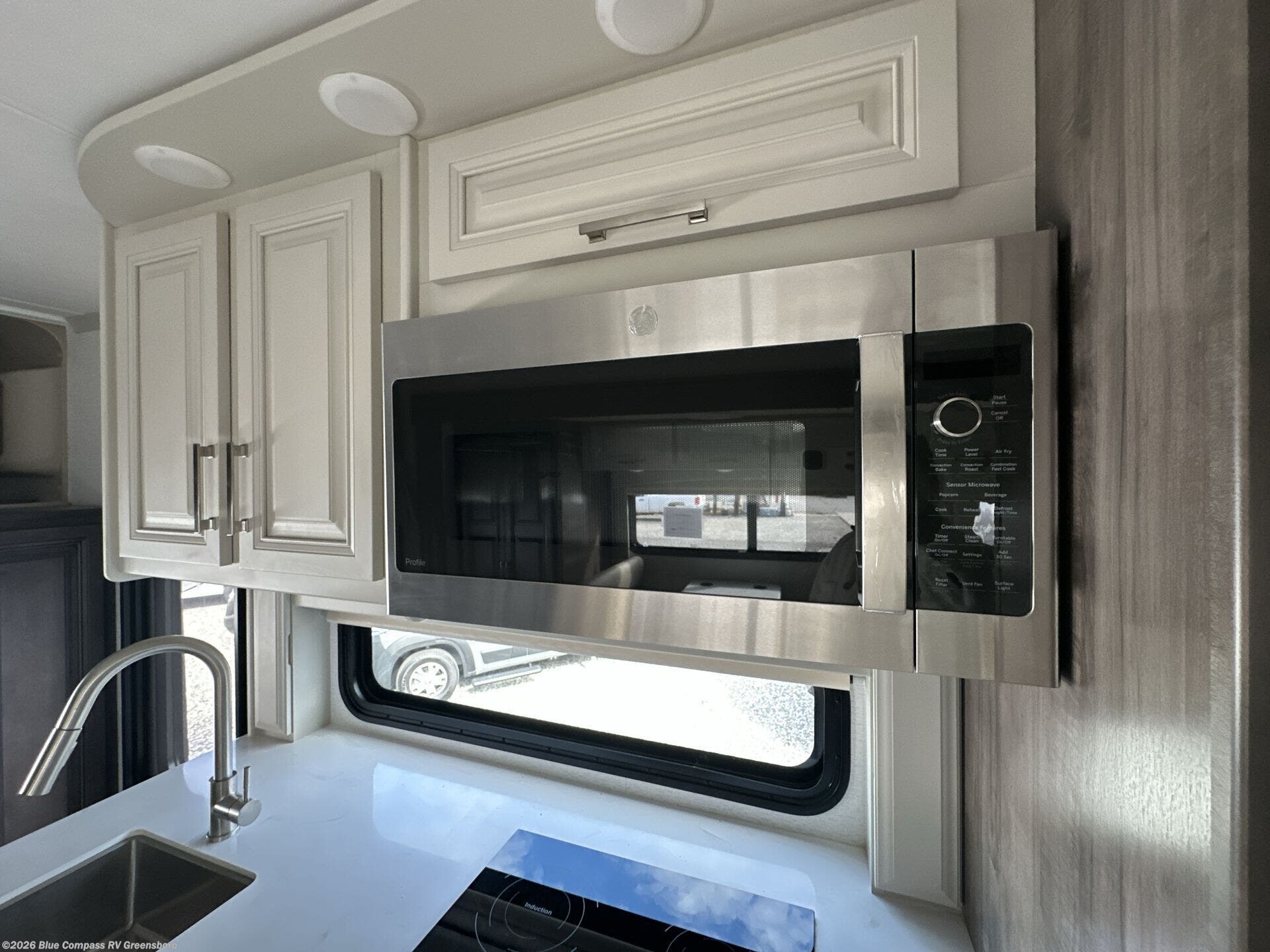 You will appreciate all of the conveniences throughout this motorhome starting with the carpeted, full pass-through storage compartment with lockable slam latch doors! The cockpit has a Sony infotainment center with Apple CarPlay and Android Auto to play your favorite tunes, and a panoramic window with a power shade so you can look out at your beautiful scenery driving down the road then enjoy privacy at night. Once you have reached your destination, you can either relax on the 93" reclining sofa or enjoy a meal at the booth dinette after preparing it with the two burner induction cooktop with LED display. You can also choose an optional free-standing dinette in place of the booth dinette. A private bedroom welcomes you to enjoy a good night's rest on the king bed after showering in the 30" x 36" shower in the full rear bathroom. The bathroom also has an area prepped to add an optional washer and dryer!