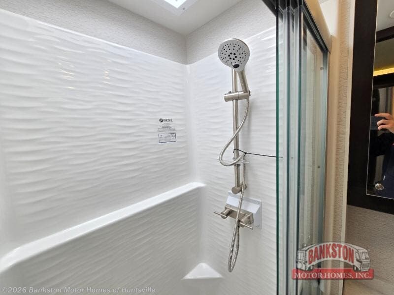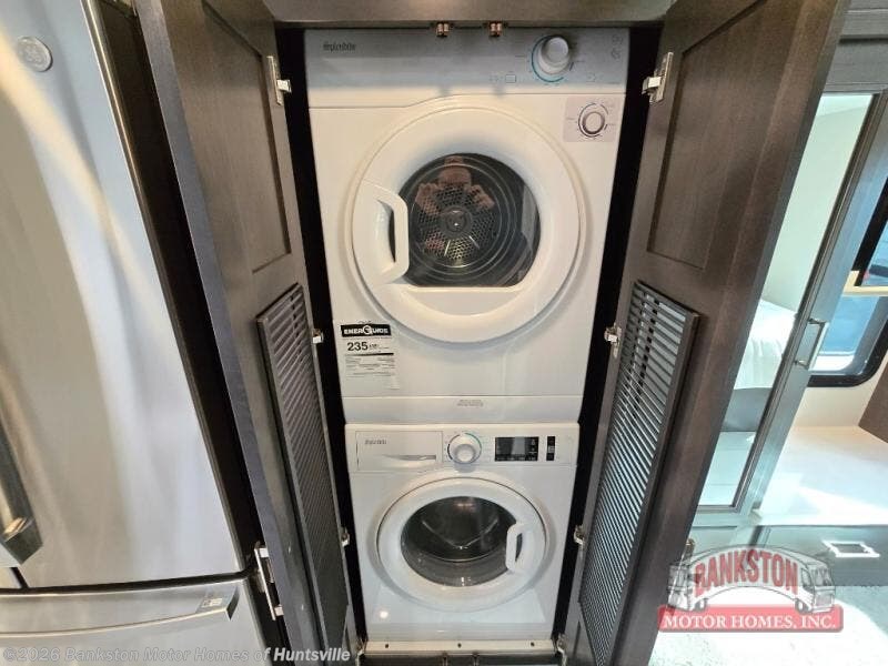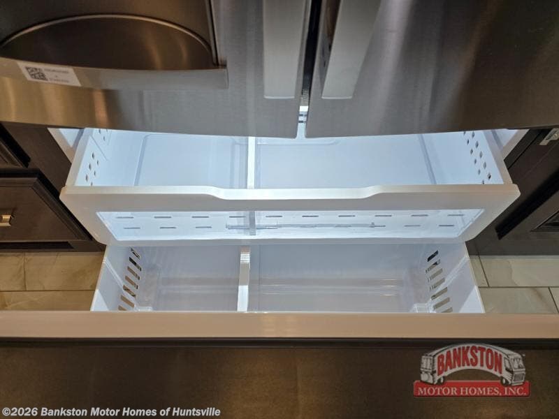 Pack your bags, pick your favorite spot on the map, and head out to a great adventure! There are plenty of sleeping spaces for everyone to have a good night's rest between the cabover bunk, the 72" x 80" power head lift king bed, the sofa and even the booth dinette once converted. There is also power theater seating that can be switched out for an optional 72" hide-a-bed sofa if you need more sleeping spaces. You can keep your dishes safely stored in the hutch by the fireplace. Next to the stainless steel residential refrigerator is an area prepped to add an optional stacked washer and dryer to keep your clothes looking their best. You will also look your best too with the 30" x 36" shower and medicine cabinet mirror in the full bathroom!
