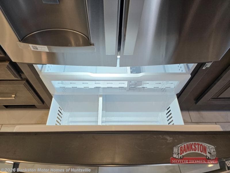 Pack your bags, pick your favorite spot on the map, and head out to a great adventure! There are plenty of sleeping spaces for everyone to have a good night's rest between the cabover bunk, the 72" x 80" power head lift king bed, the sofa and even the booth dinette once converted. There is also power theater seating that can be switched out for an optional 72" hide-a-bed sofa if you need more sleeping spaces. You can keep your dishes safely stored in the hutch by the fireplace. Next to the stainless steel residential refrigerator is an area prepped to add an optional stacked washer and dryer to keep your clothes looking their best. You will also look your best too with the 30" x 36" shower and medicine cabinet mirror in the full bathroom!