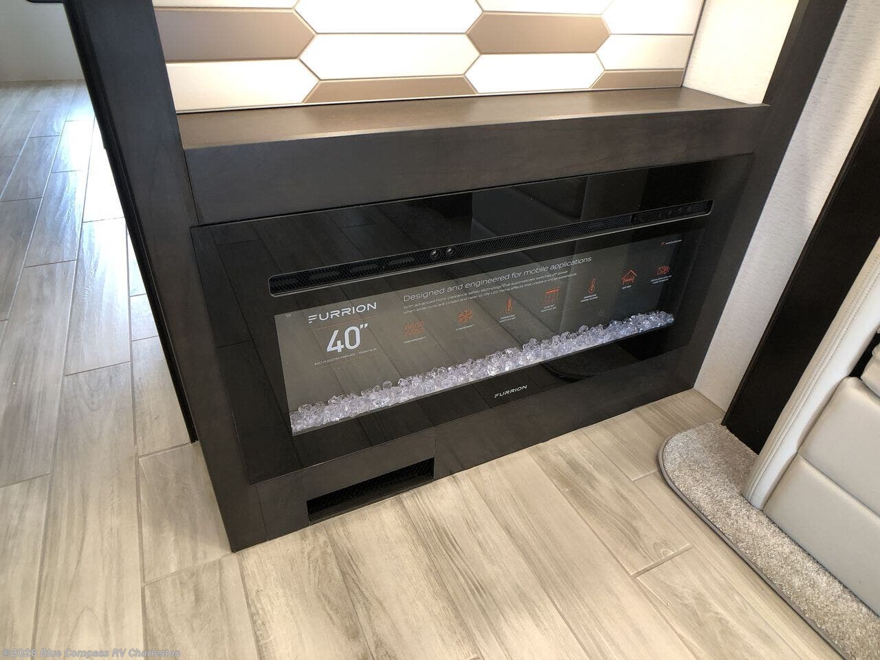 Pack your bags, pick your favorite spot on the map, and head out to a great adventure! There are plenty of sleeping spaces for everyone to have a good night's rest between the cabover bunk, the 72" x 80" power head lift king bed, the sofa and even the booth dinette once converted. There is also power theater seating that can be switched out for an optional 72" hide-a-bed sofa if you need more sleeping spaces. You can keep your dishes safely stored in the hutch by the fireplace. Next to the stainless steel residential refrigerator is an area prepped to add an optional stacked washer and dryer to keep your clothes looking their best. You will also look your best too with the 30" x 36" shower and medicine cabinet mirror in the full bathroom!