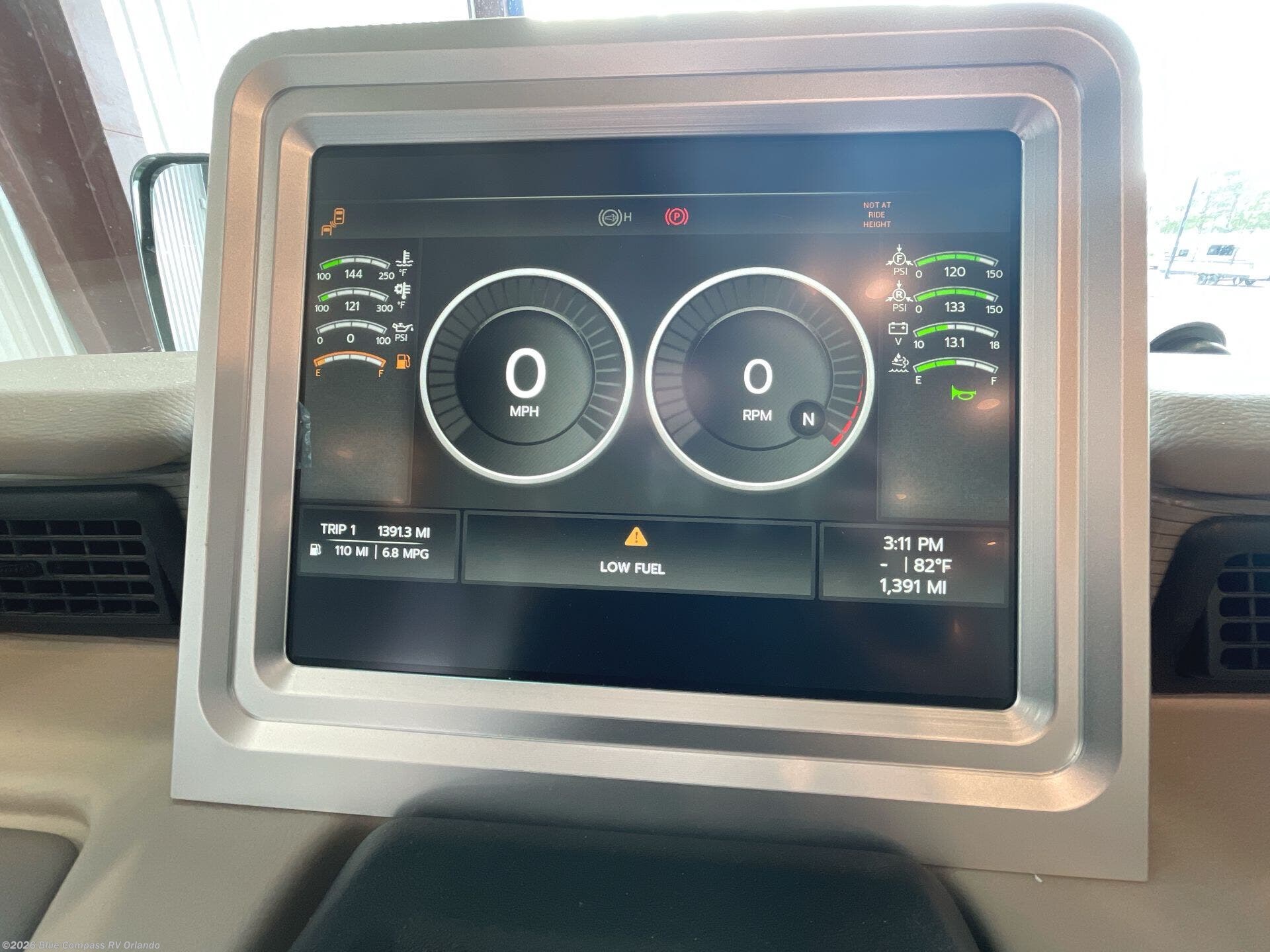 With any Anthem Class A diesel motorhome by Entegra Coach, setting up camp has never been easier with the 15-inch digital dash displaying an integrated 360-degree surround view system with fourteen smart radar sensors and six HD cameras plus the Valid air leveling system. Each roof is constructed with arched aluminum trusses filled with batt insulation and reflective Flexfoil topped with plywood decking then one-piece fiberglass, exterior walls with Aluma-Tru welded tubular aluminum studs, insulated front and rear caps, and X-Bridge bracing welded into the chassis frame. The interior provides the Firefly multiplex system with 10-inch VegaTouch touchscreen for complete integration of the coach controls with remote monitoring and control from the available mobile app, a decorative ceiling feature with integrated accent lighting, powered solar day and blackout night shades, and Aire-Secure travel locks for all pocket doors!