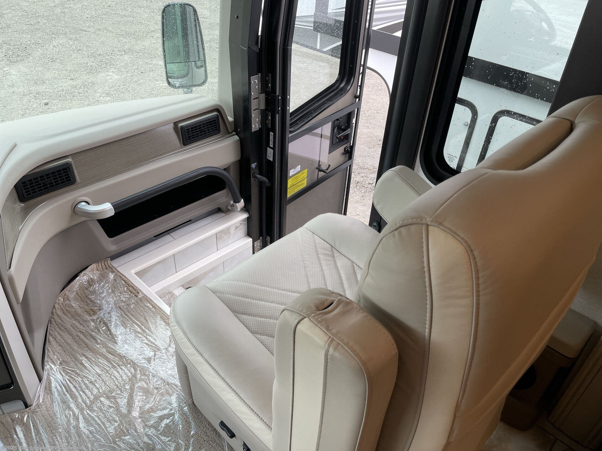 With any Anthem Class A diesel motorhome by Entegra Coach, setting up camp has never been easier with the 15-inch digital dash displaying an integrated 360-degree surround view system with fourteen smart radar sensors and six HD cameras plus the Valid air leveling system. Each roof is constructed with arched aluminum trusses filled with batt insulation and reflective Flexfoil topped with plywood decking then one-piece fiberglass, exterior walls with Aluma-Tru welded tubular aluminum studs, insulated front and rear caps, and X-Bridge bracing welded into the chassis frame. The interior provides the Firefly multiplex system with 10-inch VegaTouch touchscreen for complete integration of the coach controls with remote monitoring and control from the available mobile app, a decorative ceiling feature with integrated accent lighting, powered solar day and blackout night shades, and Aire-Secure travel locks for all pocket doors!