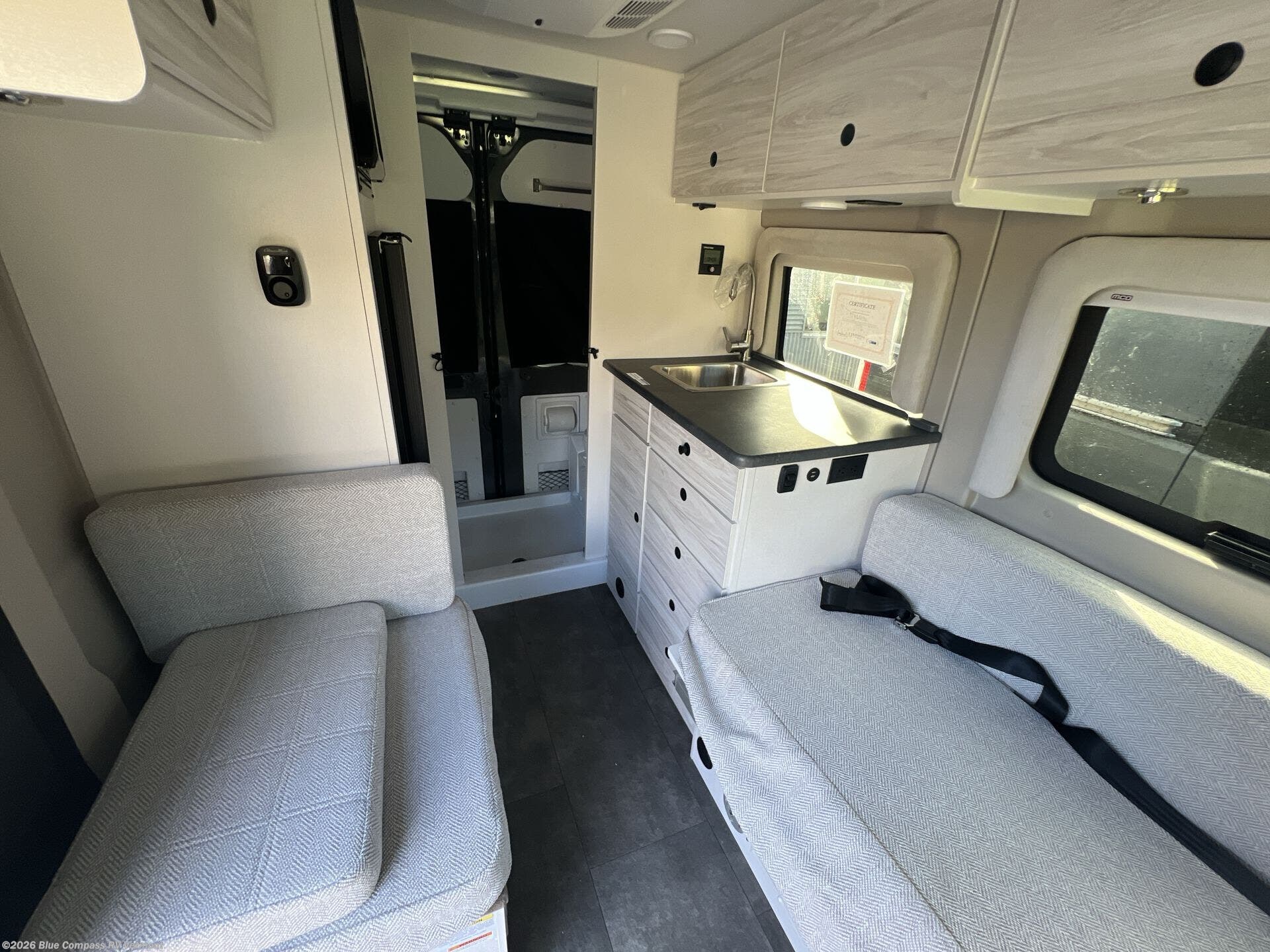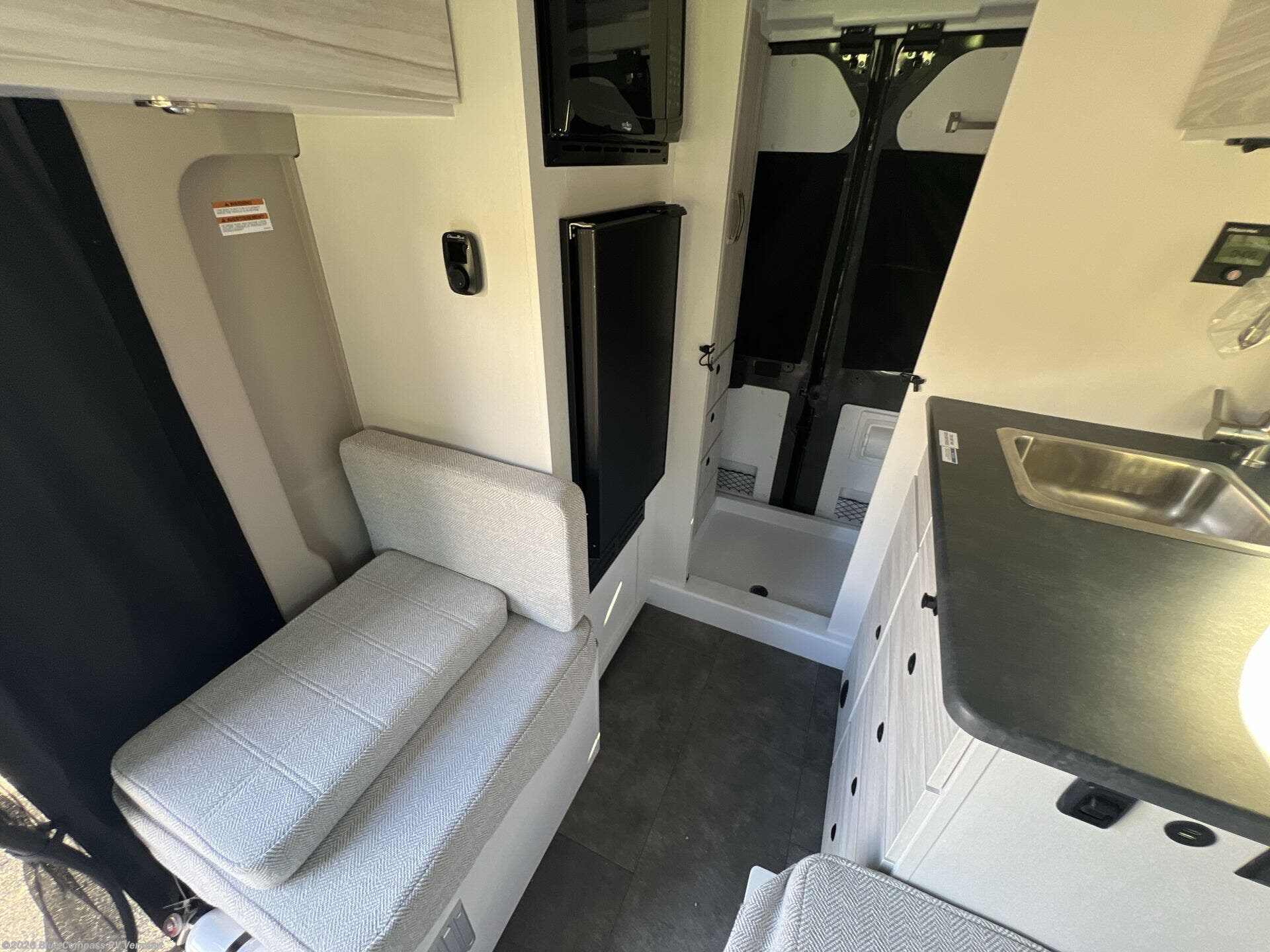 Any trip in this camper van will be spent in comfort thanks to the convenient wet bath and full kitchen amenities. You can whip up a hearty breakfast on the portable induction cooktop or use the microwave oven. There is a stainless steel sink to clean up, and the pressed countertops will be easy to clean. After you've hiked for the day and gotten cleaned up in the rear wet bath, you can relax on the 54" sofa that will convert to a 54" x 72" bed. There is also a 27" bench seat for more seating space and plenty of overhead cabinets for personal belongings, board games and more.