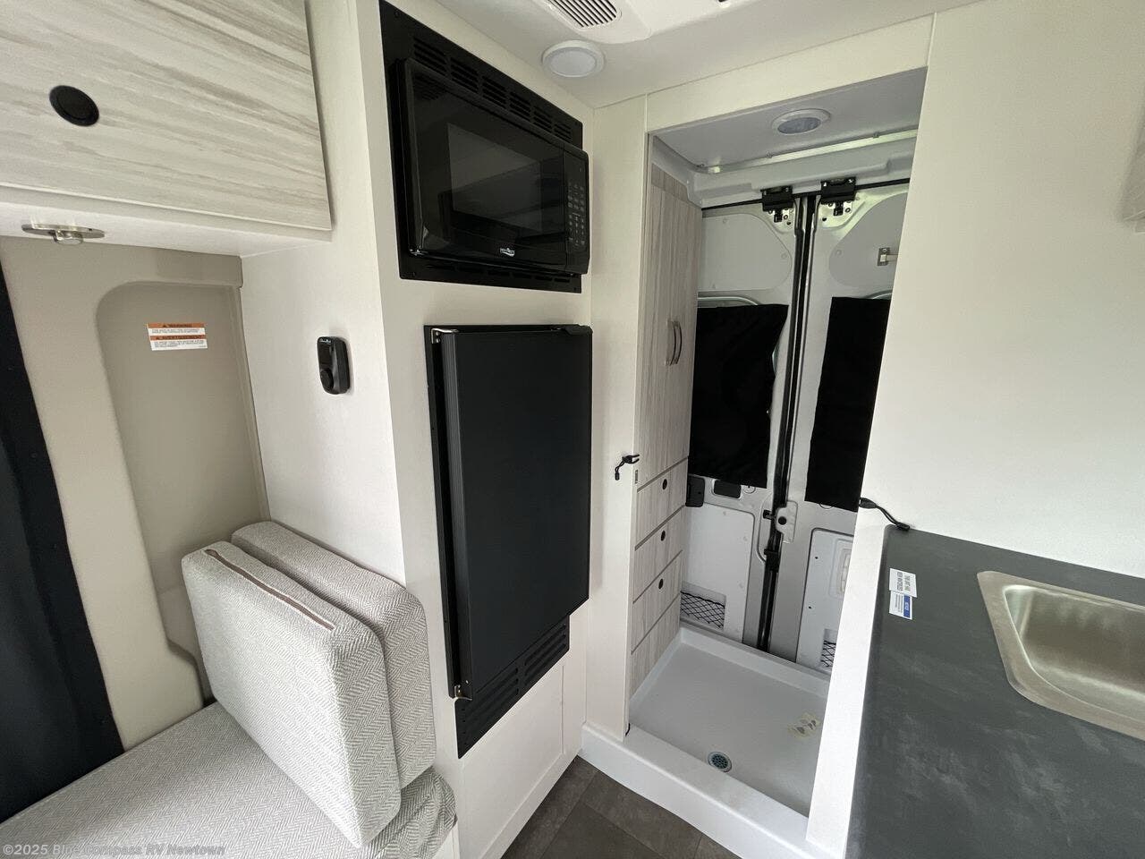 Any trip in this camper van will be spent in comfort thanks to the convenient wet bath and full kitchen amenities. You can whip up a hearty breakfast on the portable induction cooktop or use the microwave oven. There is a stainless steel sink to clean up, and the pressed countertops will be easy to clean. After you've hiked for the day and gotten cleaned up in the rear wet bath, you can relax on the 54" sofa that will convert to a 54" x 72" bed. There is also a 27" bench seat for more seating space and plenty of overhead cabinets for personal belongings, board games and more.