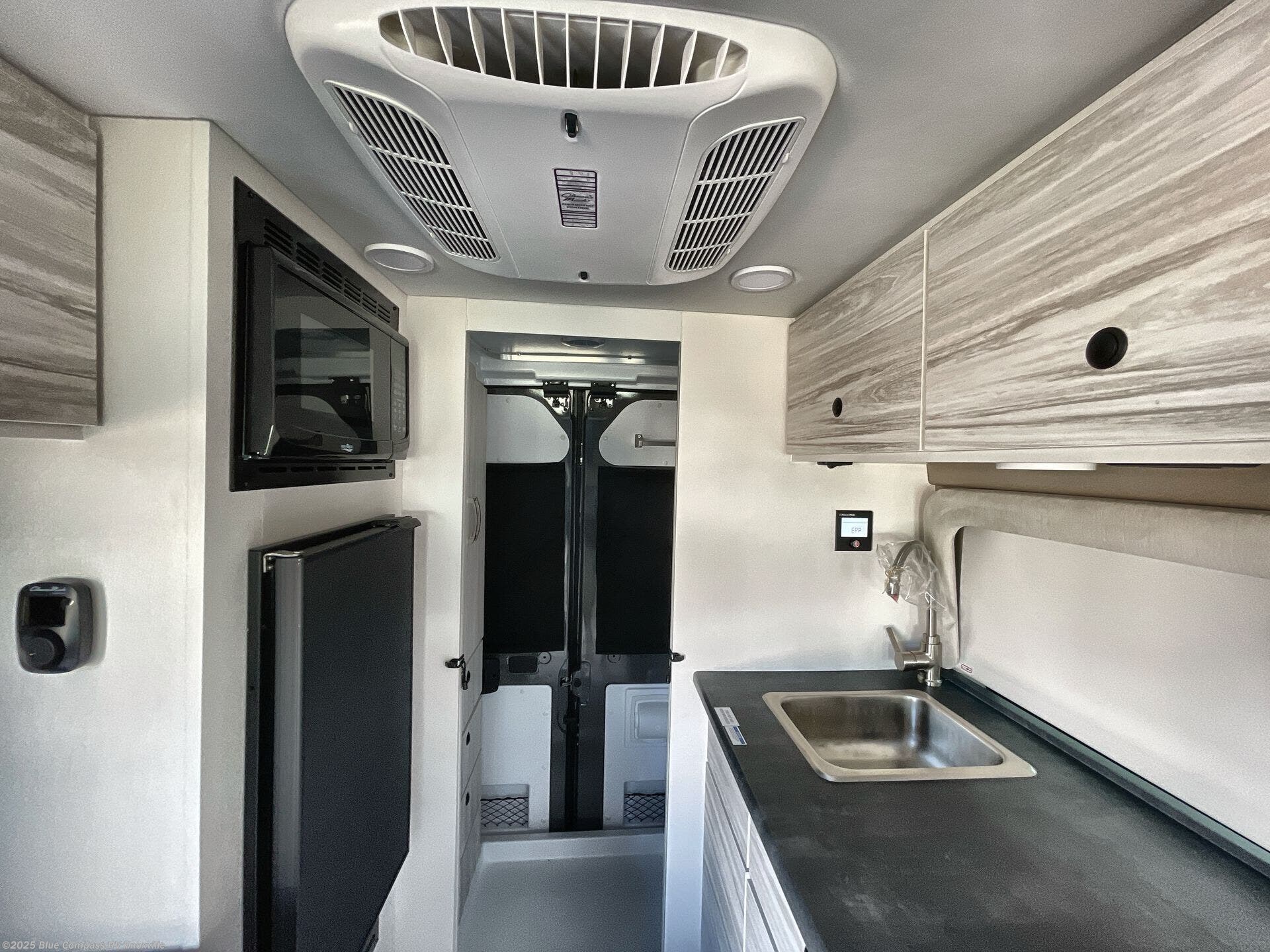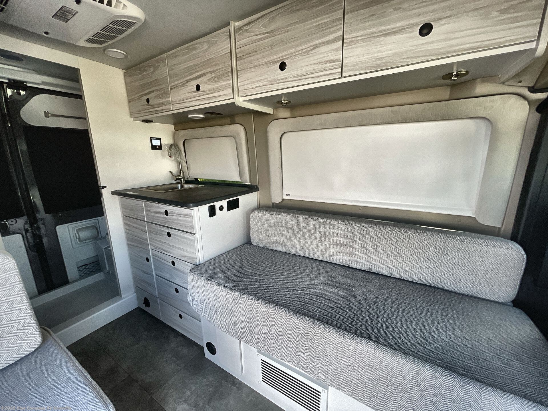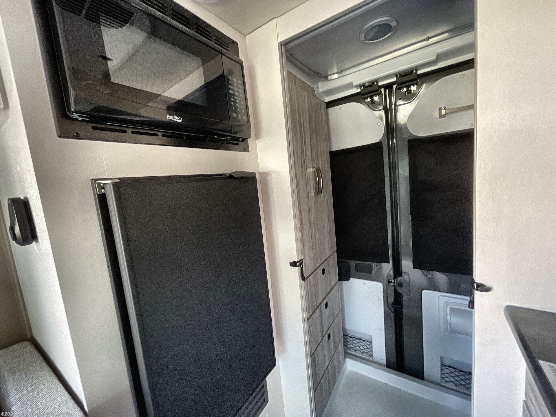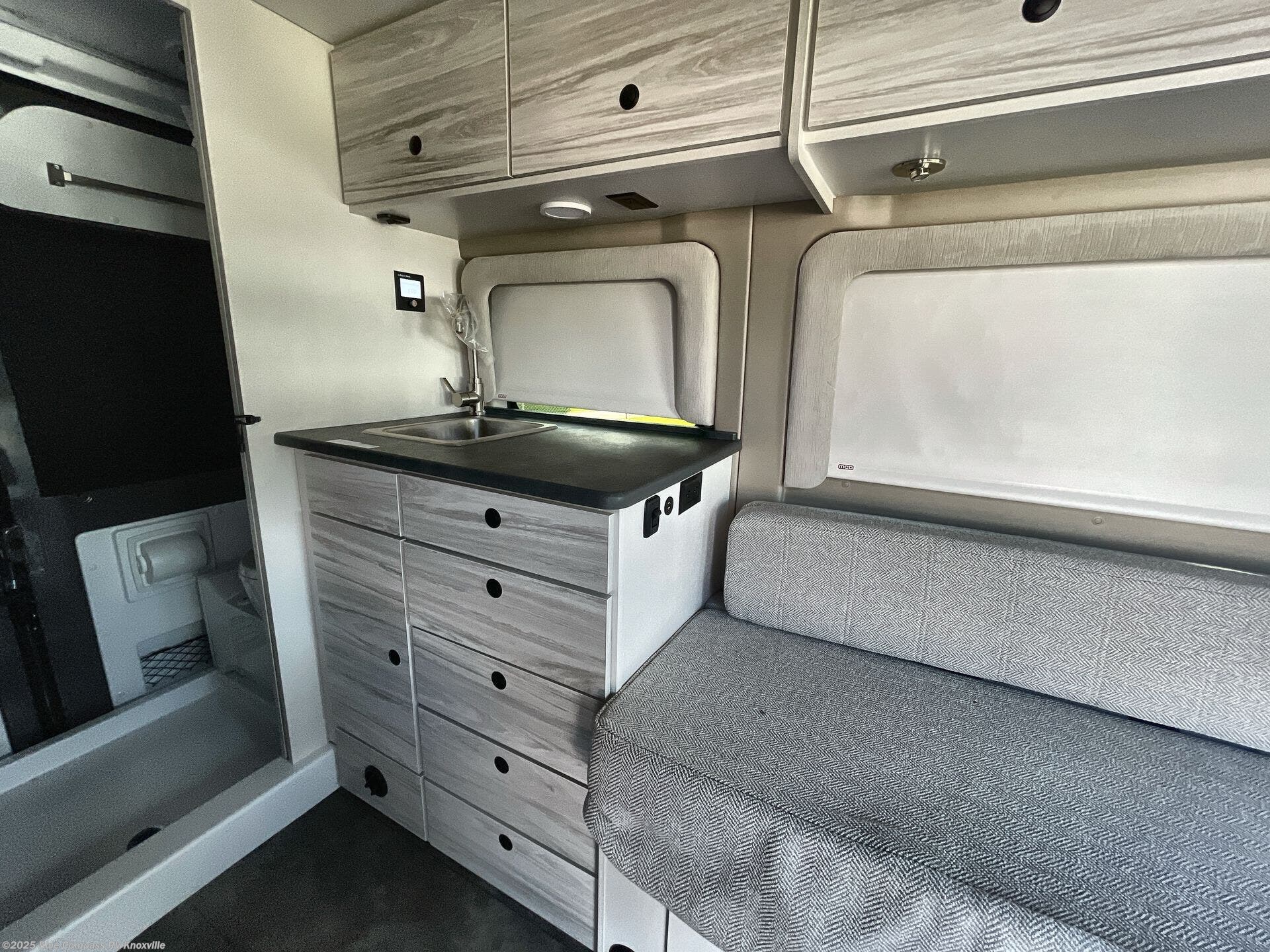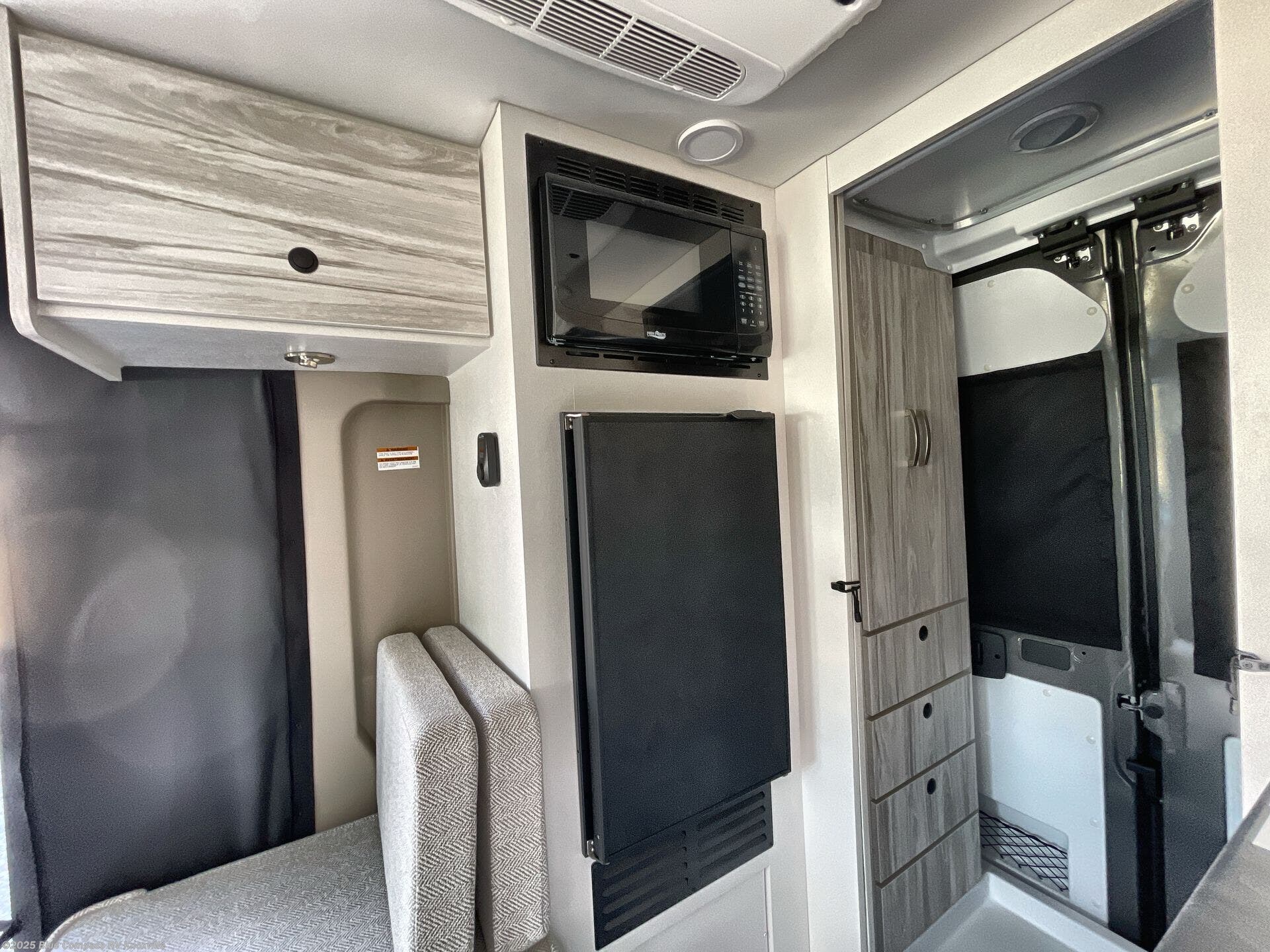 Any trip in this camper van will be spent in comfort thanks to the convenient wet bath and full kitchen amenities. You can whip up a hearty breakfast on the portable induction cooktop or use the microwave oven. There is a stainless steel sink to clean up, and the pressed countertops will be easy to clean. After you've hiked for the day and gotten cleaned up in the rear wet bath, you can relax on the 54" sofa that will convert to a 54" x 72" bed. There is also a 27" bench seat for more seating space and plenty of overhead cabinets for personal belongings, board games and more.
