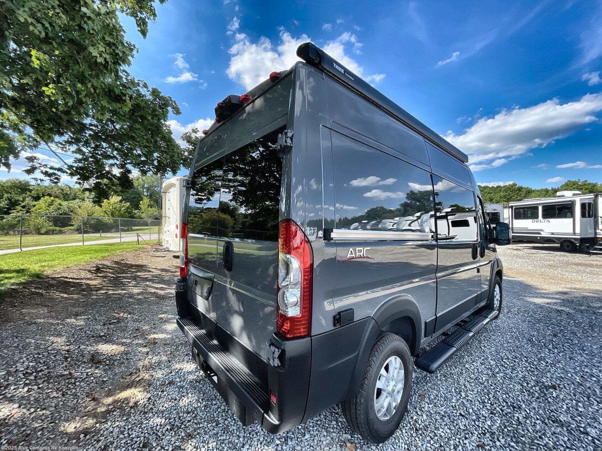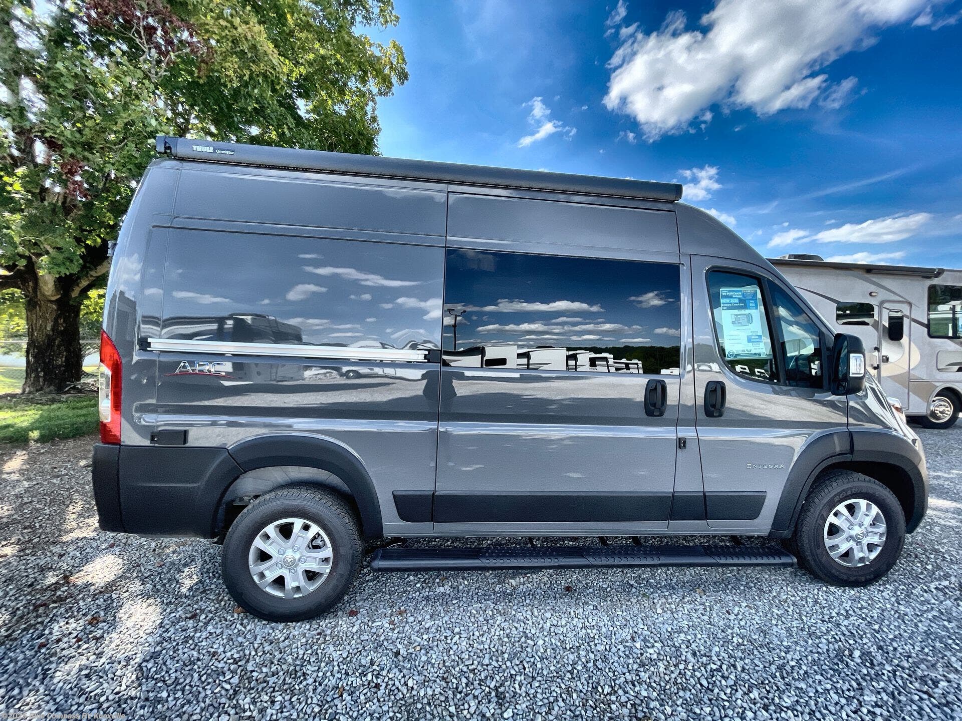 The ARC Class B gas motorhome by Entegra Coach lets you explore the great outdoors in comfort and style! This agile camper van sits on a durable RAM ProMaster 1500 cargo van chassis with a 3.6L V6 24V VVT 276 HP engine, and features an exterior length under 18 feet for easy maneuvering in the city or on open roads. There are custom-molded ABS interior wall panels for added durability, and the LED-lit running boards are sure to be eye-catching. The exterior also includes automatic high-beam headlights, a chrome grille package, and a Thule patio awning with an LED light strip to make your outside time enjoyable. You will appreciate having an Aqua-Hot GEN-1 hydronic water and heating system onboard, along with two 12V AGM house batteries, and a 2,800W gas generator to keep your adventures going. The ARC's interior will have you feeling at home with residential vinyl flooring, high-intensity LED ceiling lights, and decorative window valances with day/night roller shades. There are also convenient cockpit features that include a 10.1" Uconnect 5 NAV infotainment center, a ParkView rear backup camera with dynamic gridlines, a push-button start, and more!
