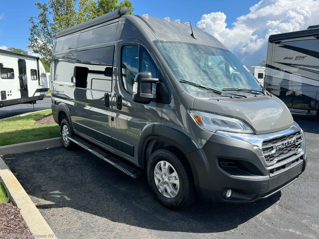 The ARC Class B gas motorhome by Entegra Coach lets you explore the great outdoors in comfort and style! This agile camper van sits on a durable RAM ProMaster 1500 cargo van chassis with a 3.6L V6 24V VVT 276 HP engine, and features an exterior length under 18 feet for easy maneuvering in the city or on open roads. There are custom-molded ABS interior wall panels for added durability, and the LED-lit running boards are sure to be eye-catching. The exterior also includes automatic high-beam headlights, a chrome grille package, and a Thule patio awning with an LED light strip to make your outside time enjoyable. You will appreciate having an Aqua-Hot GEN-1 hydronic water and heating system onboard, along with two 12V AGM house batteries, and a 2,800W gas generator to keep your adventures going. The ARC's interior will have you feeling at home with residential vinyl flooring, high-intensity LED ceiling lights, and decorative window valances with day/night roller shades. There are also convenient cockpit features that include a 10.1" Uconnect 5 NAV infotainment center, a ParkView rear backup camera with dynamic gridlines, a push-button start, and more!