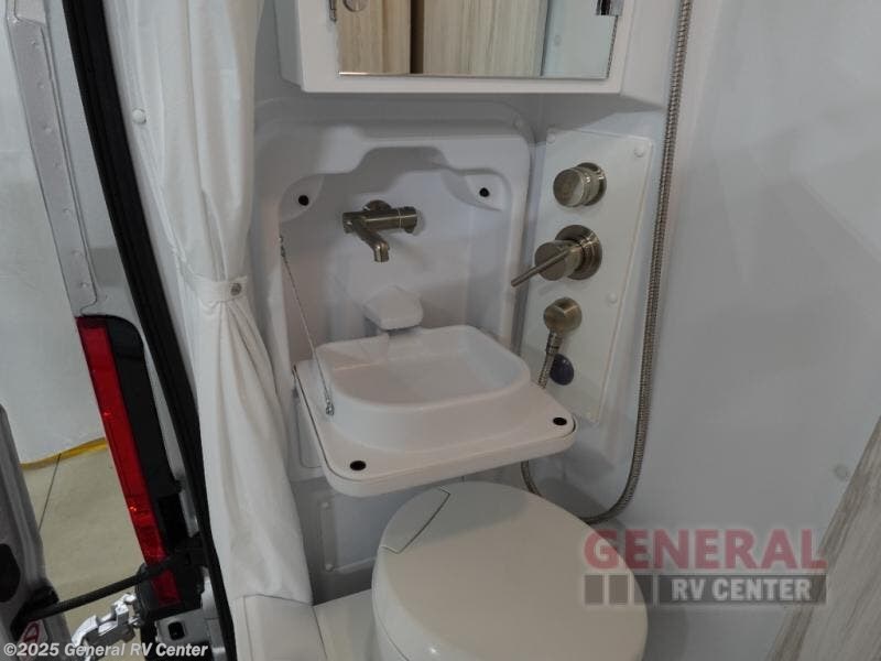 Any trip in this camper van will be spent in comfort thanks to the convenient wet bath and full kitchen amenities. You can whip up a hearty breakfast on the portable induction cooktop or use the microwave oven. There is a stainless steel sink to clean up, and the pressed countertops will be easy to clean. After you've hiked for the day and gotten cleaned up in the rear wet bath, you can relax on the 54" sofa that will convert to a 54" x 72" bed. There is also a 27" bench seat for more seating space and plenty of overhead cabinets for personal belongings, board games and more.