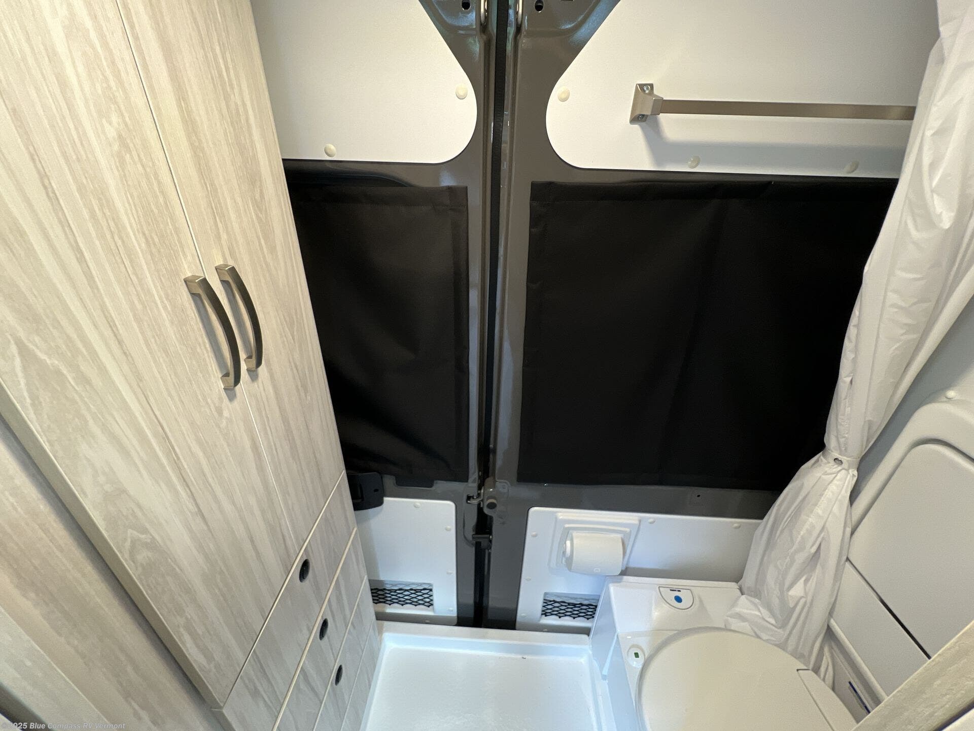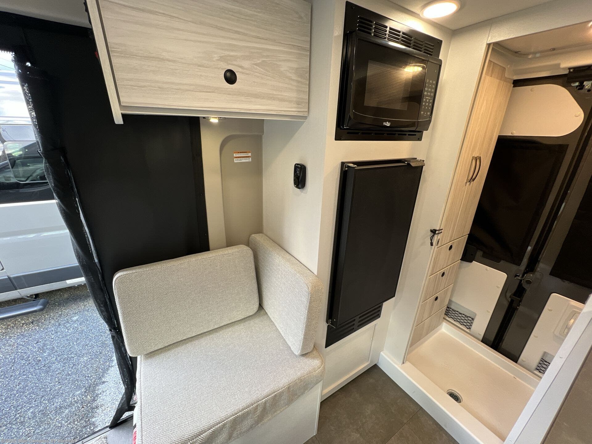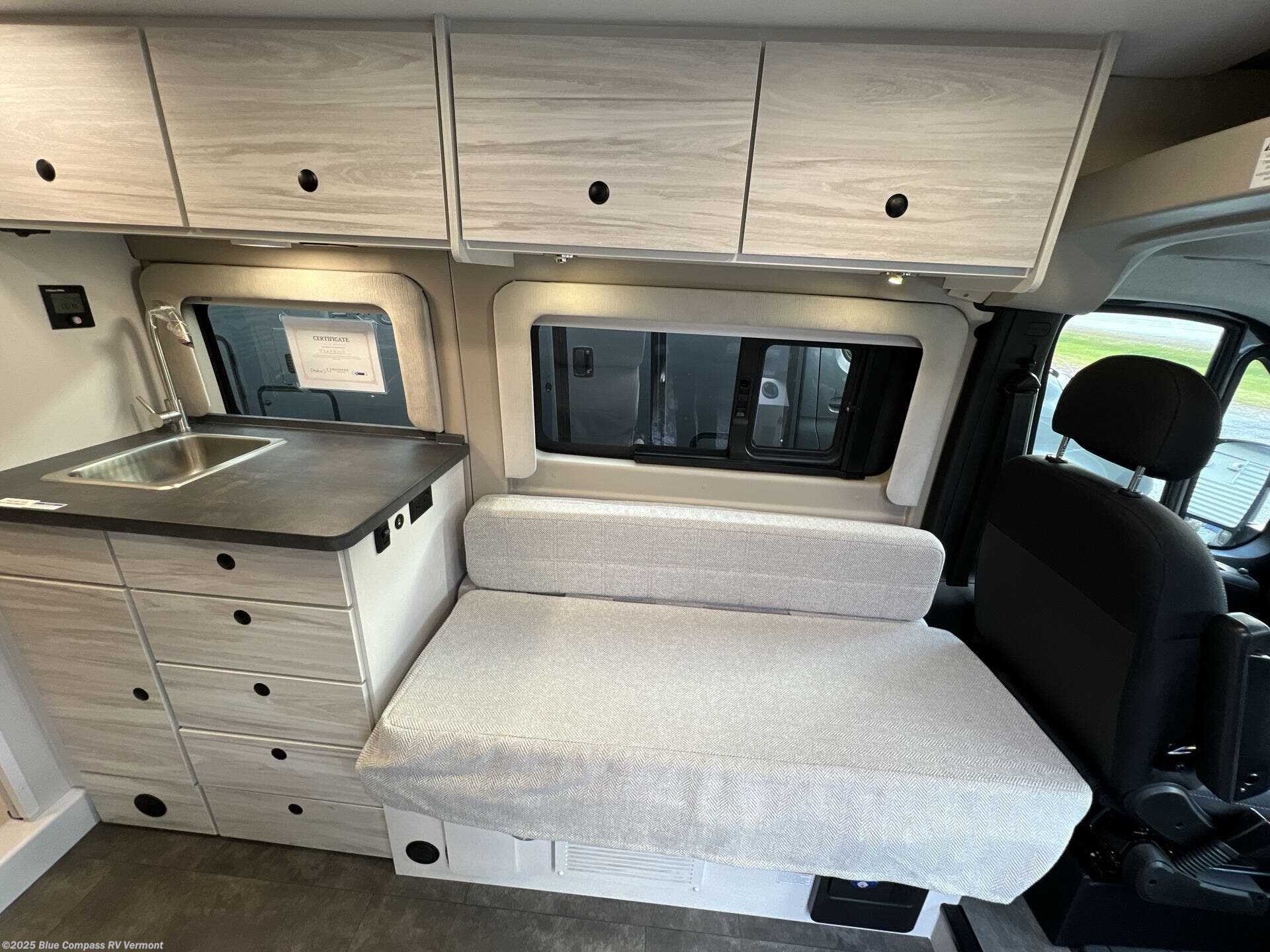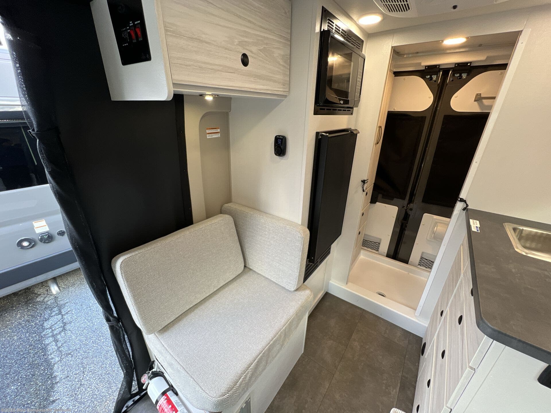 Any trip in this camper van will be spent in comfort thanks to the convenient wet bath and full kitchen amenities. You can whip up a hearty breakfast on the portable induction cooktop or use the microwave oven. There is a stainless steel sink to clean up, and the pressed countertops will be easy to clean. After you've hiked for the day and gotten cleaned up in the rear wet bath, you can relax on the 54" sofa that will convert to a 54" x 72" bed. There is also a 27" bench seat for more seating space and plenty of overhead cabinets for personal belongings, board games and more.