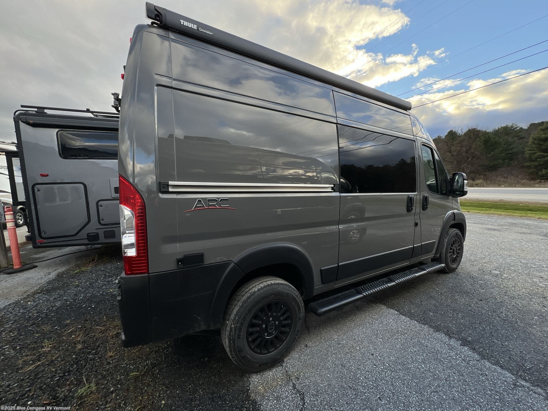 The ARC Class B gas motorhome by Entegra Coach lets you explore the great outdoors in comfort and style! This agile camper van sits on a durable RAM ProMaster 1500 cargo van chassis with a 3.6L V6 24V VVT 276 HP engine, and features an exterior length under 18 feet for easy maneuvering in the city or on open roads. There are custom-molded ABS interior wall panels for added durability, and the LED-lit running boards are sure to be eye-catching. The exterior also includes automatic high-beam headlights, a chrome grille package, and a Thule patio awning with an LED light strip to make your outside time enjoyable. You will appreciate having an Aqua-Hot GEN-1 hydronic water and heating system onboard, along with two 12V AGM house batteries, and a 2,800W gas generator to keep your adventures going. The ARC's interior will have you feeling at home with residential vinyl flooring, high-intensity LED ceiling lights, and decorative window valances with day/night roller shades. There are also convenient cockpit features that include a 10.1" Uconnect 5 NAV infotainment center, a ParkView rear backup camera with dynamic gridlines, a push-button start, and more!