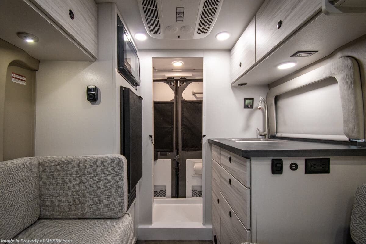 - 200W Solar Shop hundreds of motorhomes including B Van RVs at MHSRV! Choose from Midwest Automotive Designs Patriot – Patriot Cruiser – Forest River OGV V RV – V Cruise – Thor Motor Coach Tranquility – Entegra Coach Launch and more. We also buy and sell quality pre-owned models such as Airstream Interstate – Atlas – Jayco Terrain – Tiffin GH1 – Winnebago Revel – Adventure Wagon – Pleasure Way Plateau – Ascent – Roadtrek – Leisure Travel Wonder – Unity - Coachmen Galleria – Thor Sanctuary and much more. Visit for our complete line-up and the sale prices that have made us the #1 volume selling motor home dealership in the world 12 years in a row! About This RV This RV is powered by the RAM® ProMaster chassis, brought to life by a 3.6L V6 24V VVT 276HP engine and is approximately 17 feet, 10 inches in length. Inside, custom-molded ABS interior wall panels, a Uconnect® 5 NAV infotainment center and a swivel passengers seats bring high-end luxury to van life. The Arc includes many great features such as the Blind spot monitoring with rear cross path detection, LaneSense® lane departure warning with lane keep assist; Forward collision warning with active braking, rain-sensitive windshield wipers, wireless charging pads, drowsy driver detection, automatic high-beam highlights, heated holding tanks and much more. About Us For more details on this unit, our full inventory, brochures, window stickers, videos, photos, and customer reviews, visit or call 800-335-6054 for the Texas location or 334-288-0331 for our Alabama location. At Motor Home Specialist, we never charge prep or orientation fees. Every new RV sale includes a multi-point inspection, full interior and exterior detail. At our Texas location we also offer a high-pressure rain booth test—an exclusive service in the industry. You'll also receive a comprehensive coach orientation with an MHSRV technician and a complimentary night in our delivery park with full hook-ups at our Texas Location. --Why Pay More? Why Settle for Less?—