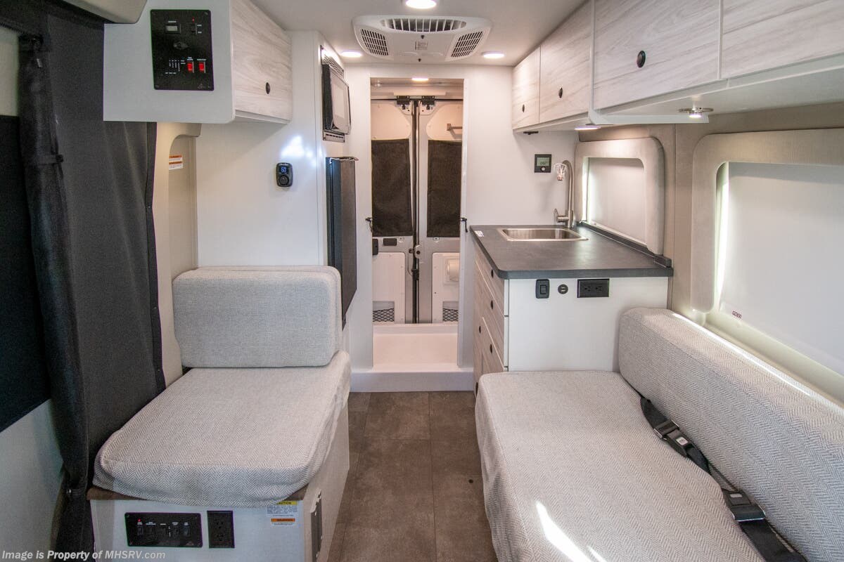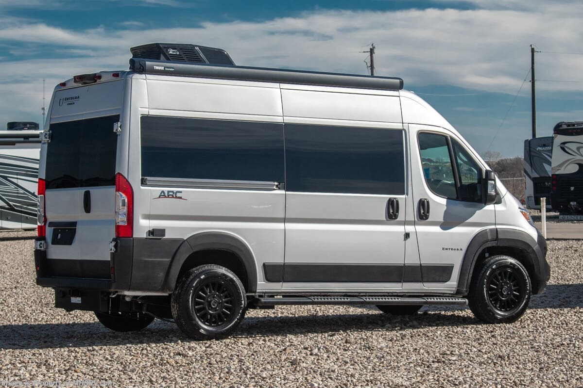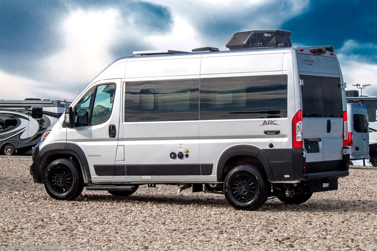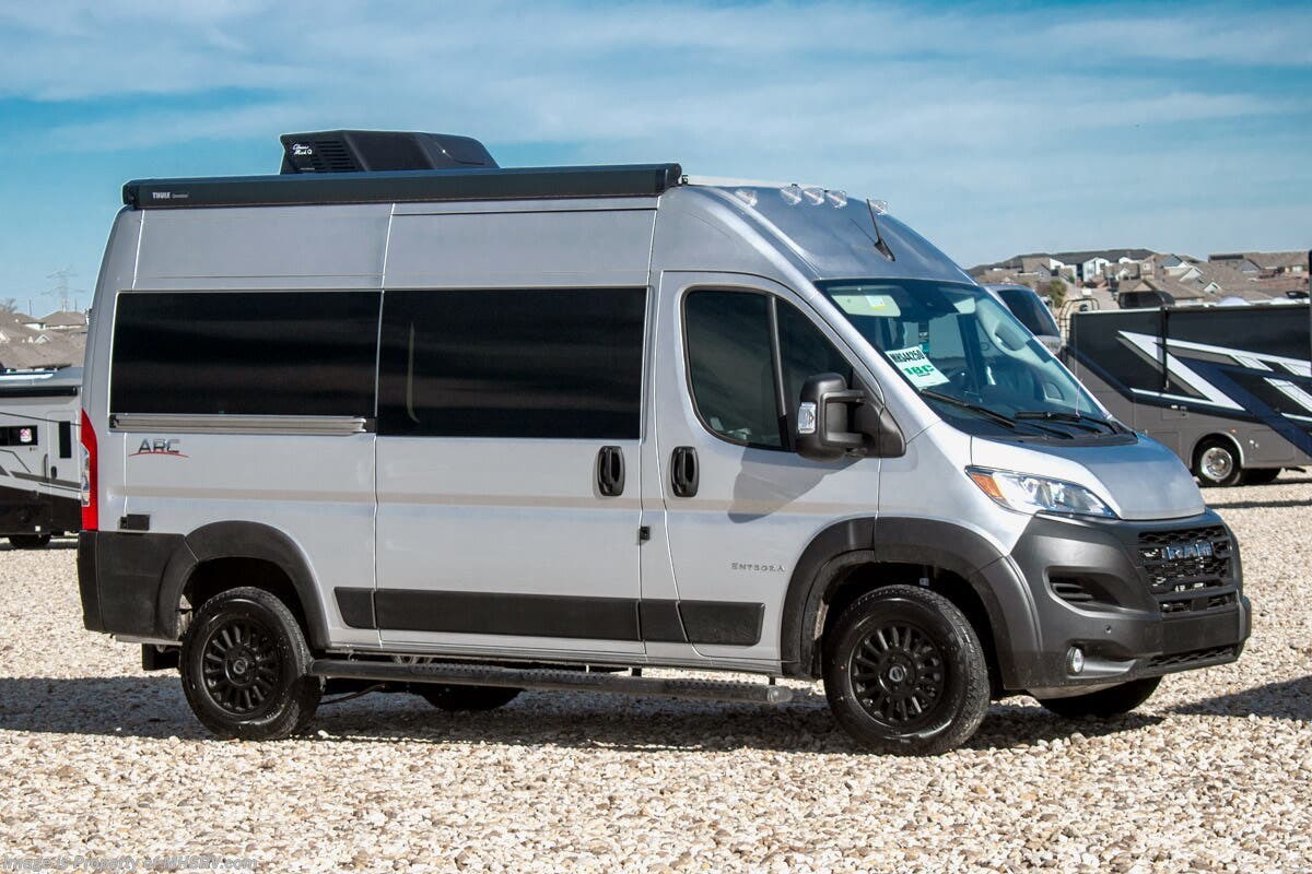 - 200W Solar Shop hundreds of motorhomes including B Van RVs at MHSRV! Choose from Midwest Automotive Designs Patriot – Patriot Cruiser – Forest River OGV V RV – V Cruise – Thor Motor Coach Tranquility – Entegra Coach Launch and more. We also buy and sell quality pre-owned models such as Airstream Interstate – Atlas – Jayco Terrain – Tiffin GH1 – Winnebago Revel – Adventure Wagon – Pleasure Way Plateau – Ascent – Roadtrek – Leisure Travel Wonder – Unity - Coachmen Galleria – Thor Sanctuary and much more. Visit for our complete line-up and the sale prices that have made us the #1 volume selling motor home dealership in the world 12 years in a row! About This RV This RV is powered by the RAM® ProMaster chassis, brought to life by a 3.6L V6 24V VVT 276HP engine and is approximately 17 feet, 10 inches in length. Inside, custom-molded ABS interior wall panels, a Uconnect® 5 NAV infotainment center and a swivel passengers seats bring high-end luxury to van life. The Arc includes many great features such as the Blind spot monitoring with rear cross path detection, LaneSense® lane departure warning with lane keep assist; Forward collision warning with active braking, rain-sensitive windshield wipers, wireless charging pads, drowsy driver detection, automatic high-beam highlights, heated holding tanks and much more. About Us For more details on this unit, our full inventory, brochures, window stickers, videos, photos, and customer reviews, visit or call 800-335-6054 for the Texas location or 334-288-0331 for our Alabama location. At Motor Home Specialist, we never charge prep or orientation fees. Every new RV sale includes a multi-point inspection, full interior and exterior detail. At our Texas location we also offer a high-pressure rain booth test—an exclusive service in the industry. You'll also receive a comprehensive coach orientation with an MHSRV technician and a complimentary night in our delivery park with full hook-ups at our Texas Location. --Why Pay More? Why Settle for Less?—