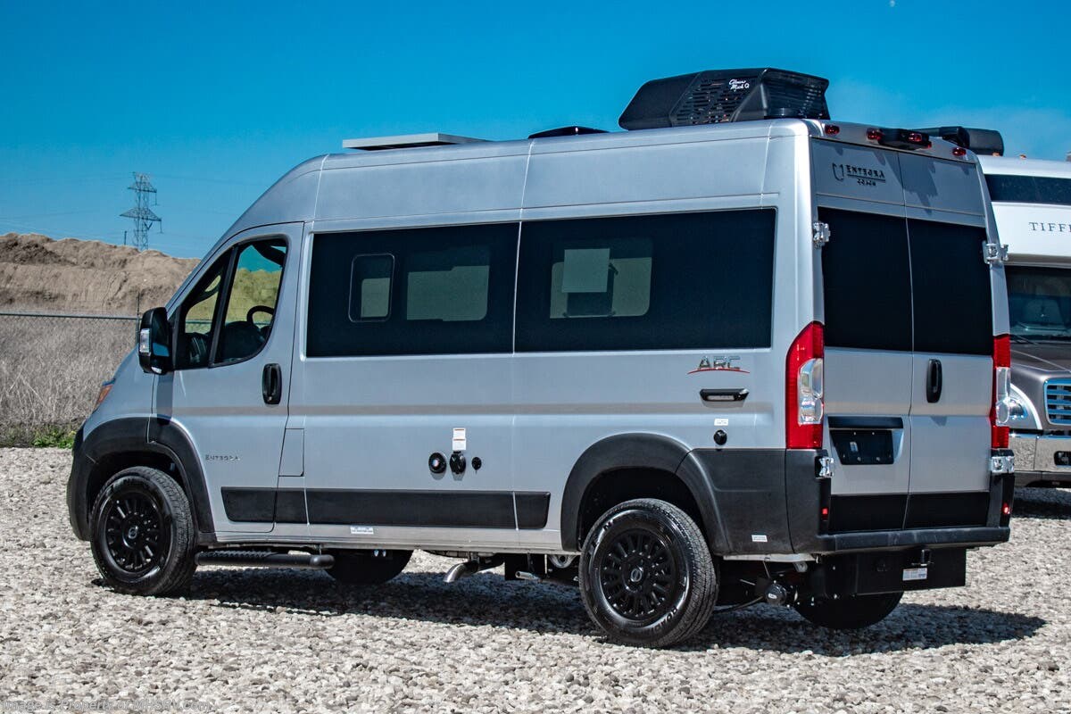 - 200W Solar Shop hundreds of motorhomes including B Van RVs at MHSRV! Choose from Midwest Automotive Designs Patriot – Patriot Cruiser – Forest River OGV V RV – V Cruise – Thor Motor Coach Tranquility – Entegra Coach Launch and more. We also buy and sell quality pre-owned models such as Airstream Interstate – Atlas – Jayco Terrain – Tiffin GH1 – Winnebago Revel – Adventure Wagon – Pleasure Way Plateau – Ascent – Roadtrek – Leisure Travel Wonder – Unity - Coachmen Galleria – Thor Sanctuary and much more. Visit for our complete line-up and the sale prices that have made us the #1 volume selling motor home dealership in the world 13 years in a row! About This RV This RV is powered by the RAM® ProMaster chassis, brought to life by a 3.6L V6 24V VVT 276HP engine and is approximately 17 feet, 10 inches in length. Inside, custom-molded ABS interior wall panels, a Uconnect® 5 NAV infotainment center and a swivel passengers seats bring high-end luxury to van life. The Arc includes many great features such as the Blind spot monitoring with rear cross path detection, LaneSense® lane departure warning with lane keep assist; Forward collision warning with active braking, rain-sensitive windshield wipers, wireless charging pads, drowsy driver detection, automatic high-beam highlights, heated holding tanks and much more. About Us For more details on this unit, our full inventory, brochures, window stickers, videos, photos, and customer reviews, visit or call 800-335-6054 for the Texas location or 334-288-0331 for our Alabama location. At Motor Home Specialist, we never charge prep or orientation fees. Every new RV sale includes a multi-point inspection, full interior and exterior detail. At our Texas location we also offer a high-pressure rain booth test—an exclusive service in the industry. You'll also receive a comprehensive coach orientation with an MHSRV technician and a complimentary night in our delivery park with full hook-ups at our Texas Location. --Why Pay More? Why Settle for Less?—