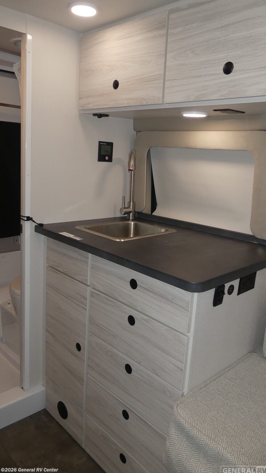 **Entegra Coach ARC Class B gas motorhome 18C highlights:** - Convertible Sofa Bed - Rear Wet Bath - 3 Cu. Ft. Refrigerator/Freezer - Sliding Screen Door - Swivel Passenger Seat Any trip in this camper van will be spent in comfort thanks to the convenient wet bath and full kitchen amenities. You can whip up a hearty breakfast on the portable induction cooktop or use the microwave oven. There is a stainless steel sink to clean up, and the pressed countertops will be easy to clean. After you've hiked for the day and gotten cleaned up in the rear wet bath, you can relax on the 54" sofa that will convert to a 54" x 72" bed. There is also a 27" bench seat for more seating space and plenty of overhead cabinets for personal belongings, board games and more. The ARC Class B gas motorhome by Entegra Coach lets you explore the great outdoors in comfort and style! This agile camper van sits on a durable RAM ProMaster 1500 cargo van chassis with a 3.6L V6 24V VVT 276 HP engine, and features an exterior length under 18 feet for easy maneuvering in the city or on open roads. There are custom-molded ABS interior wall panels for added durability, and the LED-lit running boards are sure to be eye-catching. The exterior also includes automatic high-beam headlights, a chrome grille package, and a Thule patio awning with an LED light strip to make your outside time enjoyable. You will appreciate having an Aqua-Hot GEN-1 hydronic water and heating system onboard, along with two 12V AGM house batteries, and a 2,800W gas generator to keep your adventures going. The ARC's interior will have you feeling at home with residential vinyl flooring, high-intensity LED ceiling lights, and decorative window valances with day/night roller shades. There are also convenient cockpit features that include a 10.1" Uconnect 5 NAV infotainment center, a ParkView rear backup camera with dynamic gridlines, a push-button start, and more!