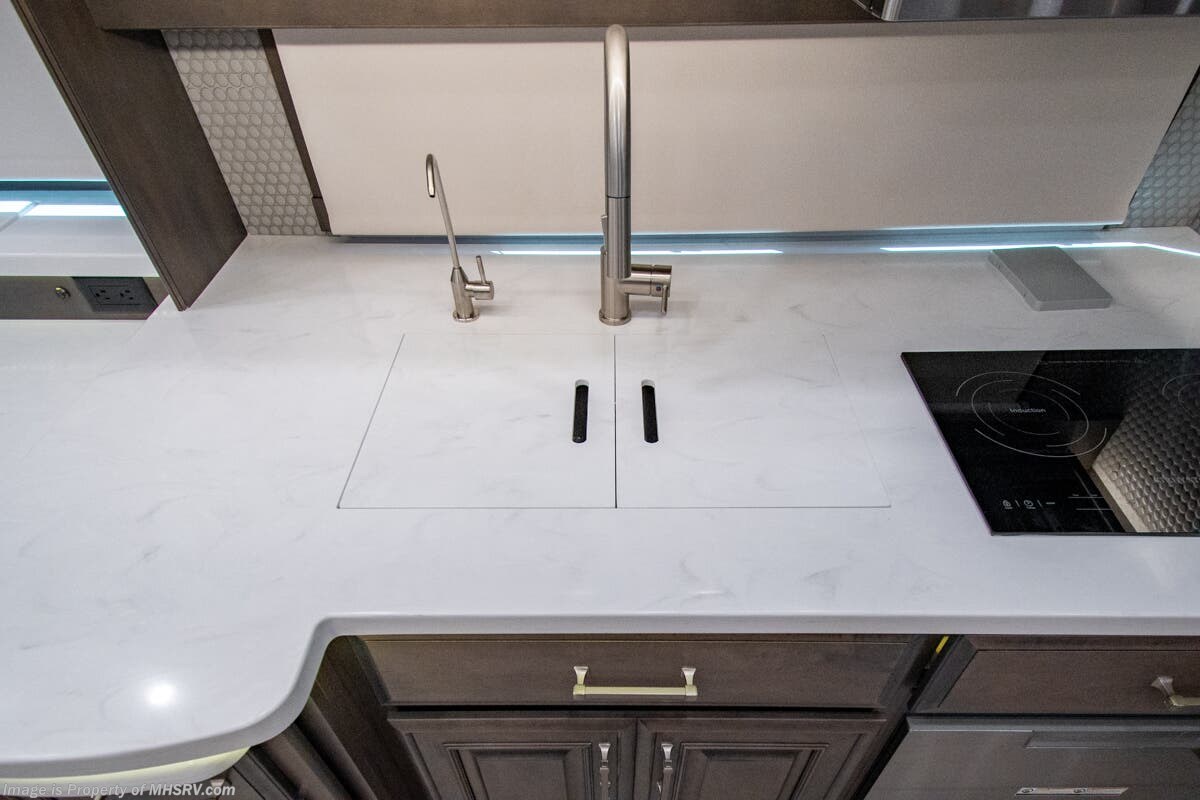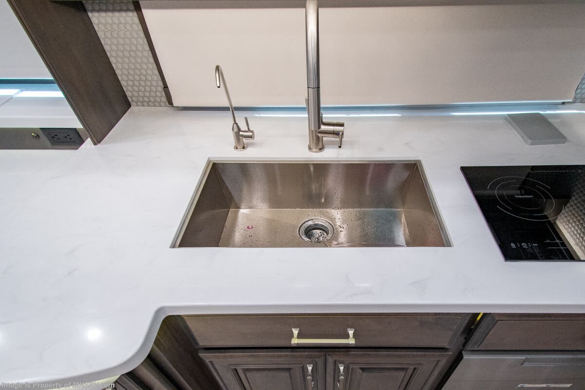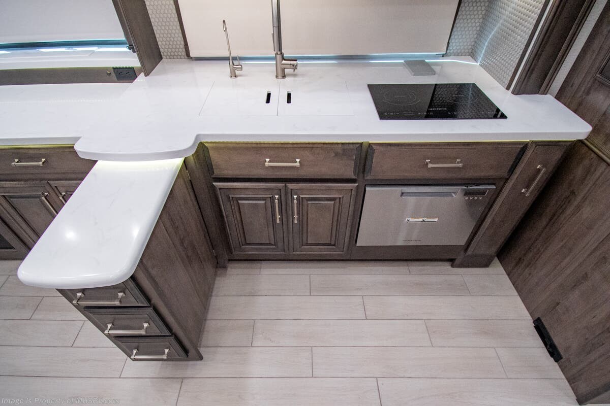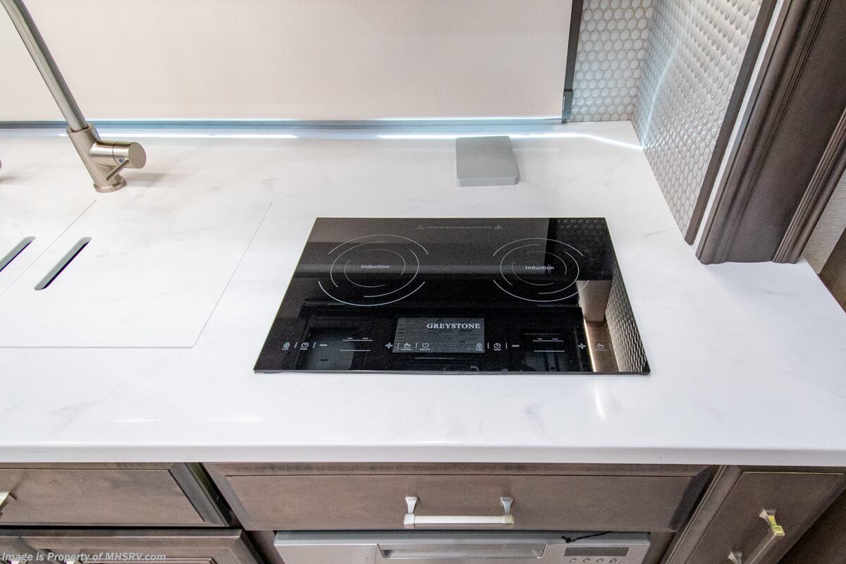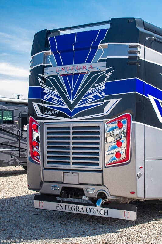 More About This RV This luxury bath & 1/2 diesel motor coach measures approximately 44 feet 11 inches in length and is backed by Entegra Coach's superior 2-Year/24K Mile Limited Coach & 5-Year Limited Structural Warranties. New for 2026 on the Aspire is the larger square-shaped windows with wood framed valances and a leather accent, LED strip lighting in bed base and under the sofa/dinette cabinets, upgraded tile work in the entry well, GE convection microwave with air fryer and larger Samsung Smart TV in the bedroom. Some of the standard features that really set the Entegra Aspire apart include the Valid 15” high brightness digital dash with quad core graphics processor and on-board diagnostics, Ramco 360° HD digital camera system, Aqua-Hot® 400D hydronic water and heating system with in-floor heat throughout, power tilt & telescoping steering wheel, Aqua View Showermi$er with “GREEN” technology saves fresh water, day and night shades throughout, solid-surface countertops with LED accent lighting, Girard window awnings & slide-out toppers, stainless steel refrigerator, Induction cook top with matching wood cover, LED marker and turn lights, DEF fill door, power rear engine door with push button control, Firefly multiplex system with 10” VegaTouch touchscreen for complete integration of coach controls, a 10,000 Onan diesel generator, Victron MultiPlus II 120V 3000VA pure sine inverter system with 7" digital LED information system, water softener prep, (3) 15K BTU roof A/C units with heat pumps, heated floors, 50 amp power cord reel, power water hose reel, GPS navigation system, frameless dual pane & tinted windows, automatic hydraulic leveling system, central vacuum, LED TV in bedroom, automatic generator start, Splendide stack washer/dryer, removed carpet on all slide floors, 360 degree birds' eye view camera system, LED TV in cab and much more.