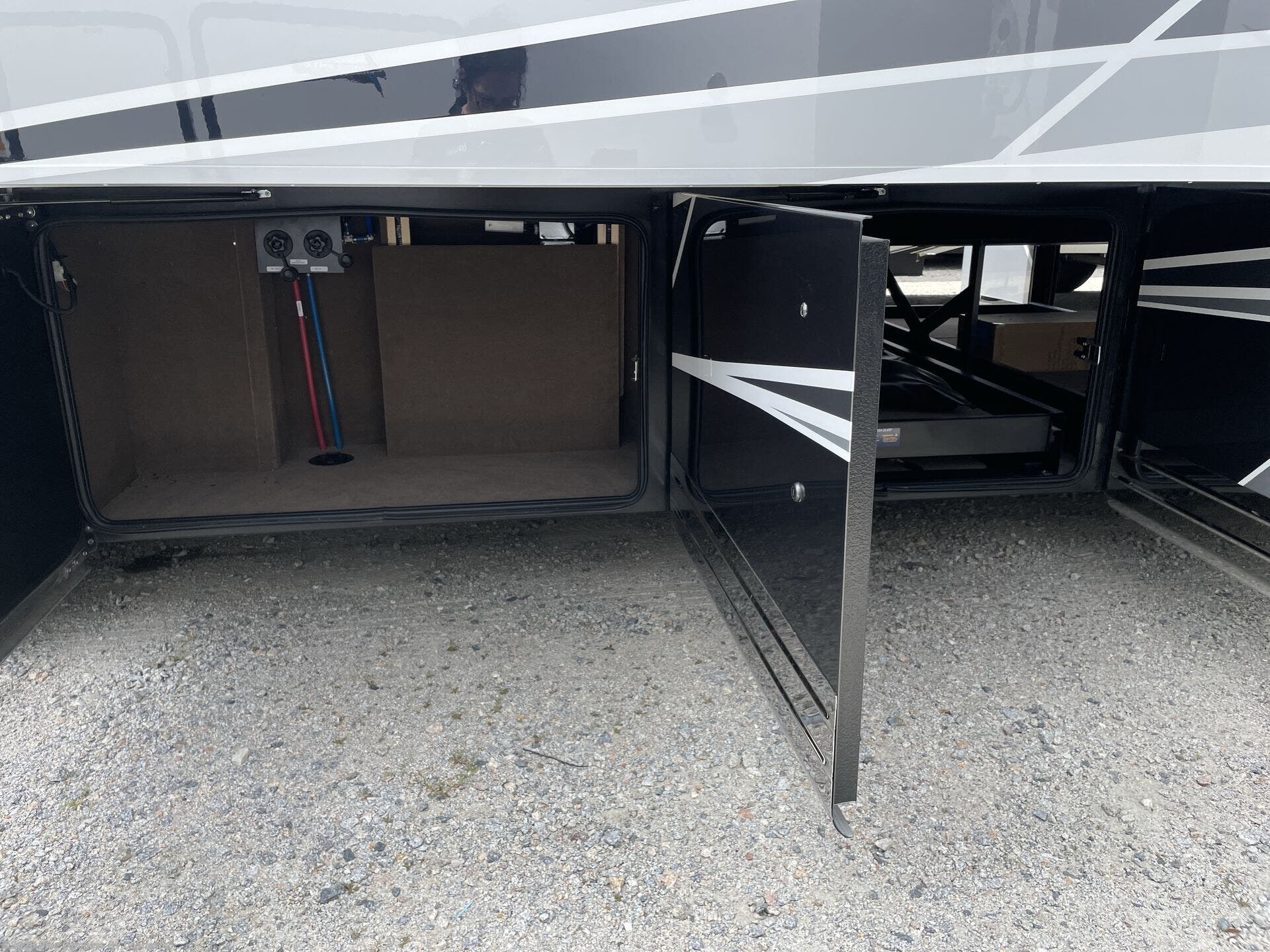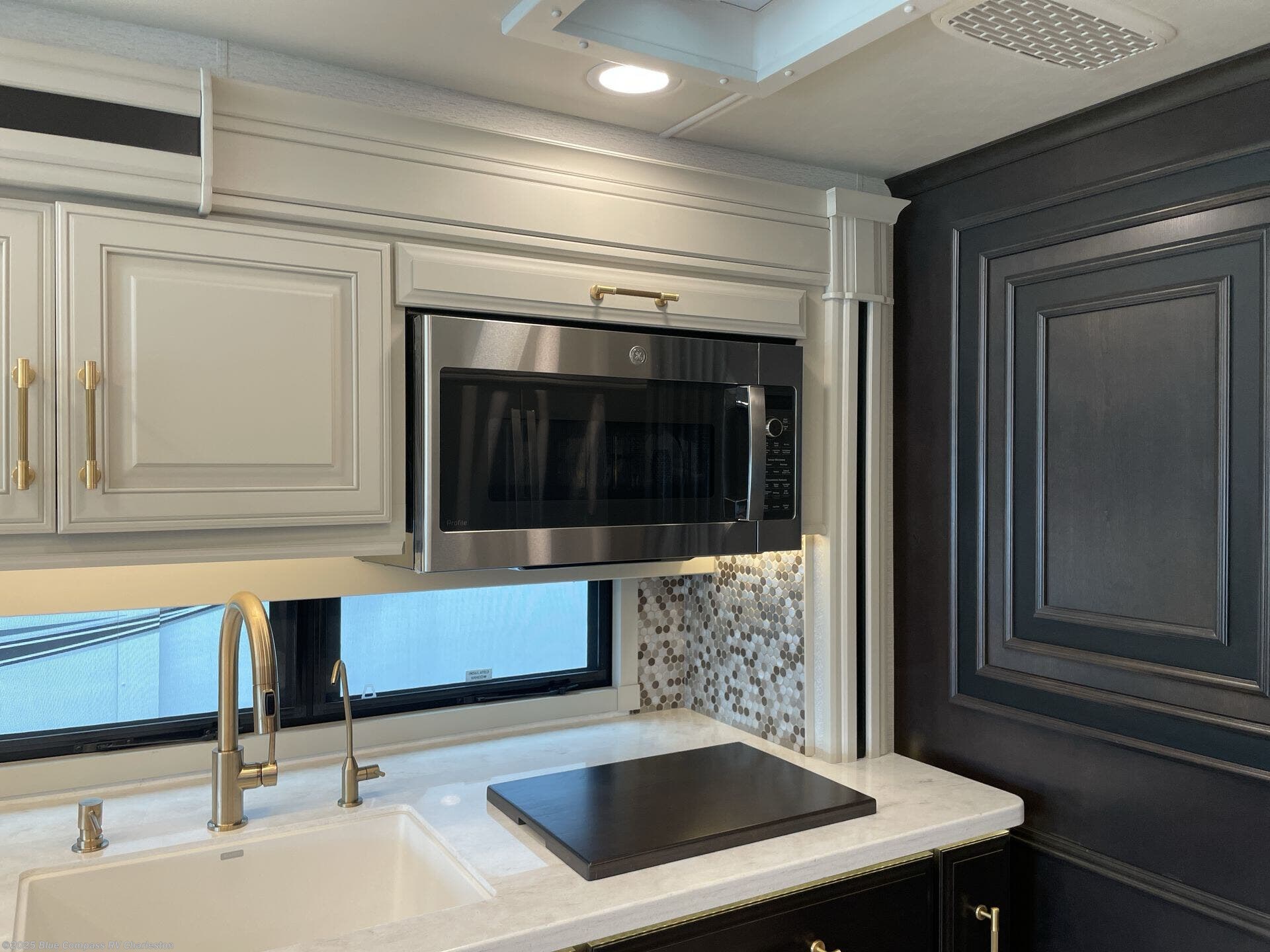 If you've been looking to upgrade your motorhome, this Cornerstone will be the perfect choice. There is a bath and a half, four slides, and sleeping space for four. Once you arrive at the campground, relax on the power theatre seating that is directly across from the 50" TV on lift. You can play a game at the free-standing dinette, or you may just want to head outside since there is an outside entertainment center. The master suite includes a king bed slide out, dual wardrobes, plus your own 43" TV. And check out the full rear bath that includes a rear walk-in wardrobe with plenty of storage space and a washer and dryer.