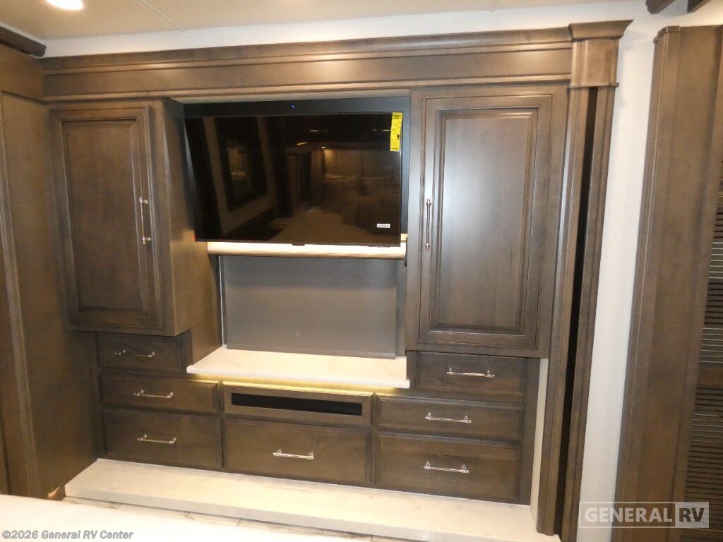 Experience the pinnacle of luxury travel with the 2026 Entegra Coach Cornerstone 45D. This stunning RV is designed for those who crave elegance and comfort on the road. With a spacious layout that includes four slide-outs, this model offers an expansive front living area perfect for entertaining. The plush 74” power theater seating and a 74” hide-a-bed sofa provide ample space for relaxation, while the 50” TV on a lift ensures you can enjoy your favorite shows with ease. The heart of this RV is its center kitchen, equipped with a full-size residential refrigerator and a convenient two-burner cooktop. Whether you're preparing a quick snack or a gourmet meal, you'll have everything you need at your fingertips. The king-sized bed in the center bedroom promises restful nights, and the well-appointed bathroom includes a 36” x 40” shower, providing a spa-like experience. With washer and dryer prep available, this RV is designed to meet all your needs on long journeys. Built on a robust Spartan K3 chassis and powered by a Cummins I6 Diesel Pusher engine with 605 horsepower, the Cornerstone 45D combines power with elegance. Its impressive towing capacity and ample storage make it ideal for extended adventures. To explore this luxurious RV in person, visit your nearest General RV dealership and take the first step towards your next great adventure.
