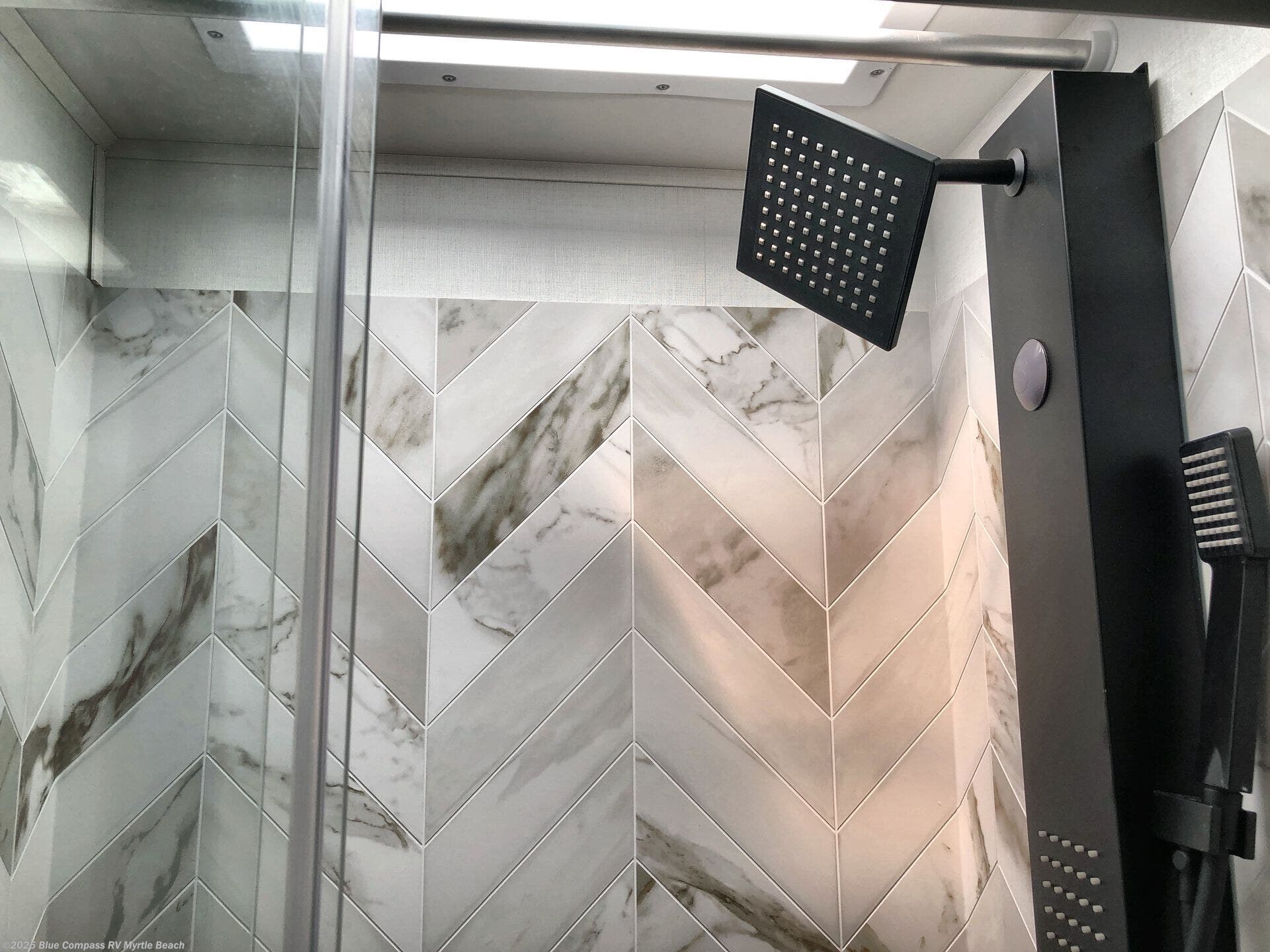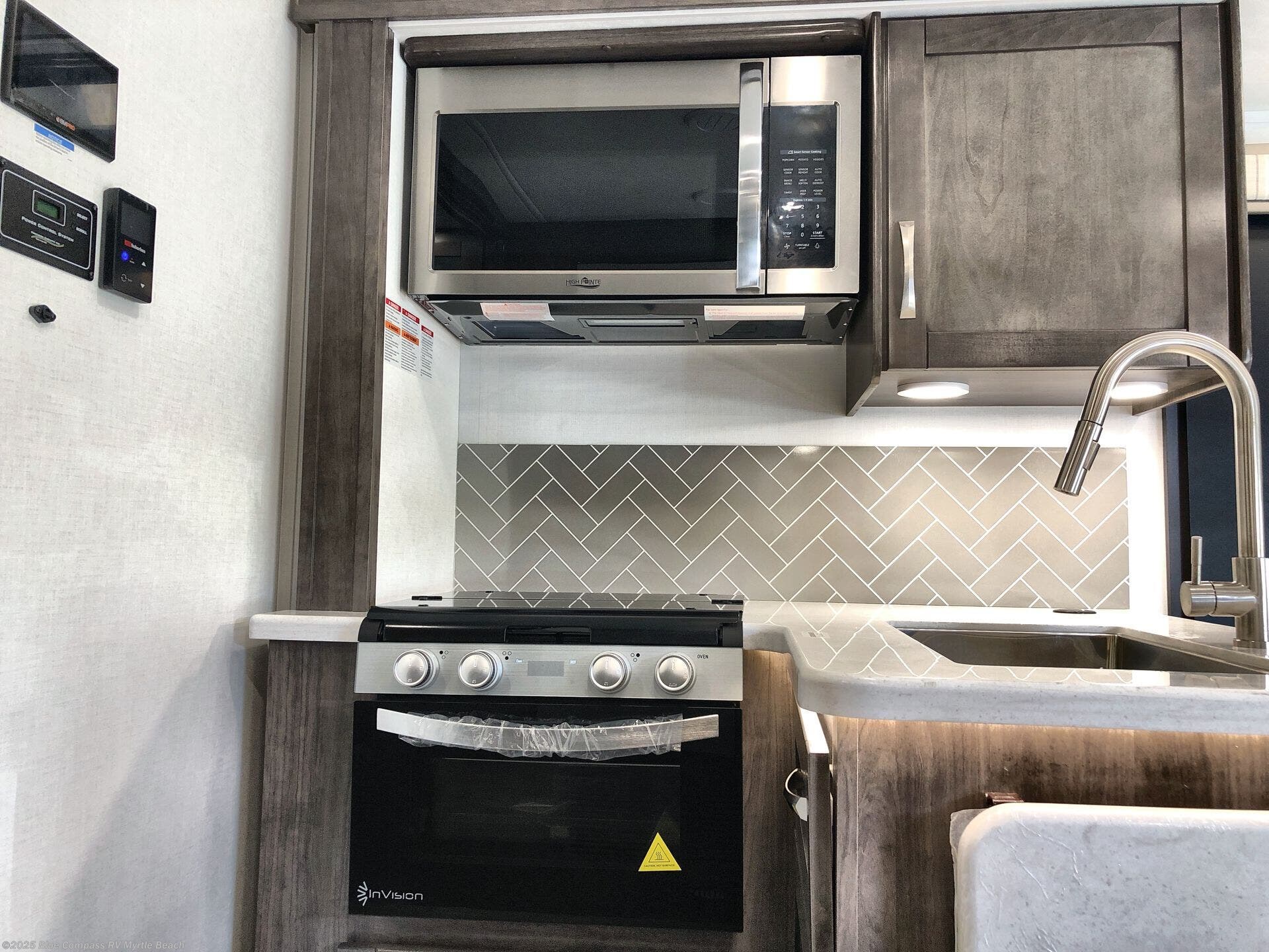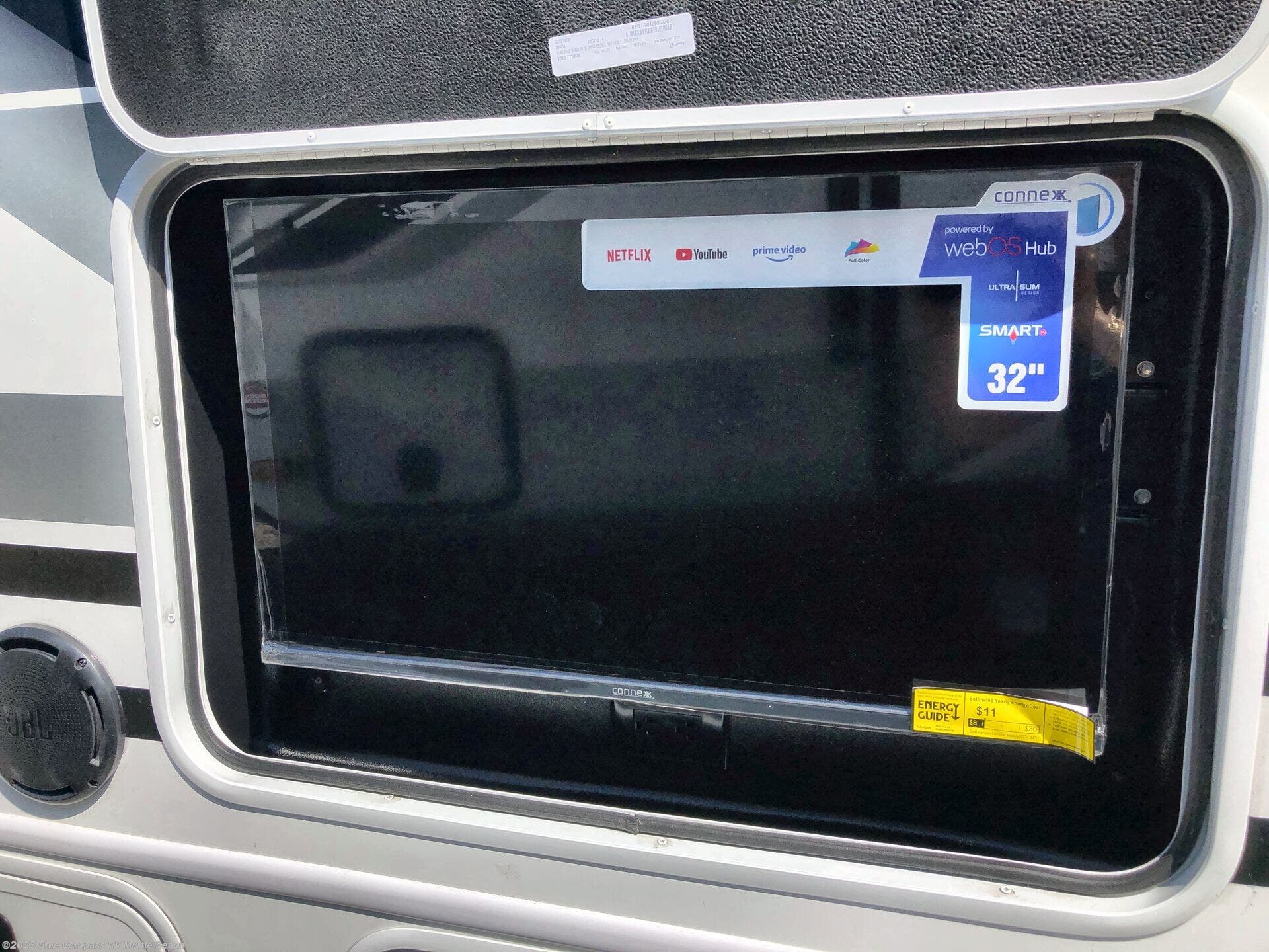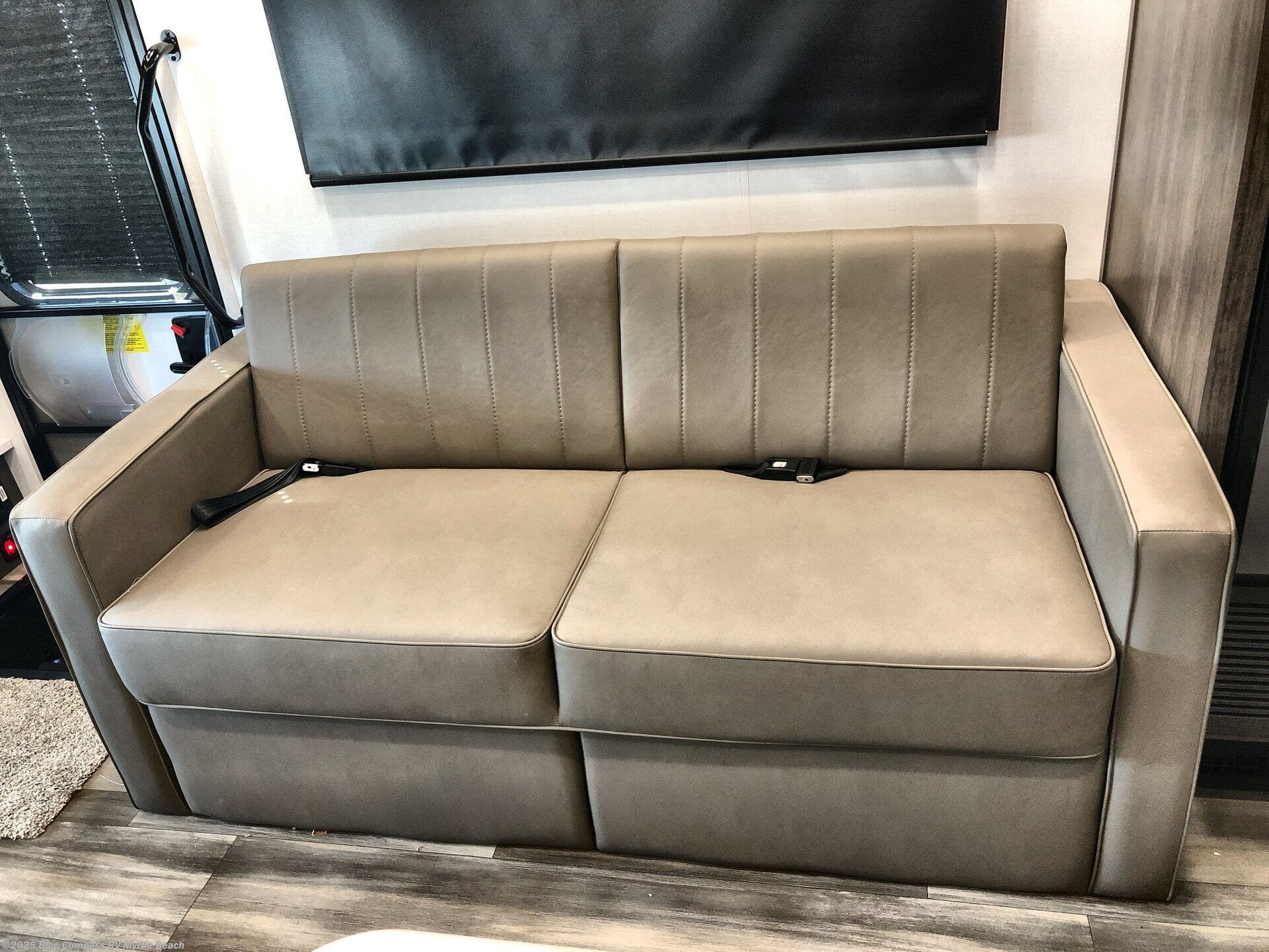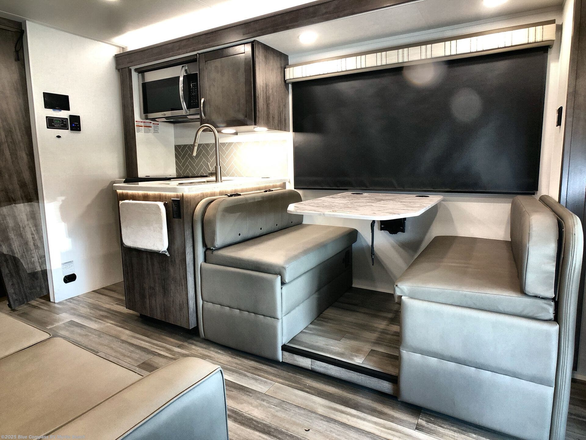 You can bring a few guests to join in on the fun with this motorhome! The bunk over cab and 66" x 76" king bed offer comfortable places to sleep, plus you can transform the booth dinette and the sofa into extra sleeping spaces if needed. Everyone can freshen up each morning with the 30" x 36" shower in the rear corner bathroom, and keep their bellies full with a Furrion all-in-one cooktop and oven plus a residential microwave. There is even a countertop extension to make meal prepping easier. Take the fun outside and watch movies on the exterior LED HD Smart TV while staying protected by the 18' electric awning with LED lights!