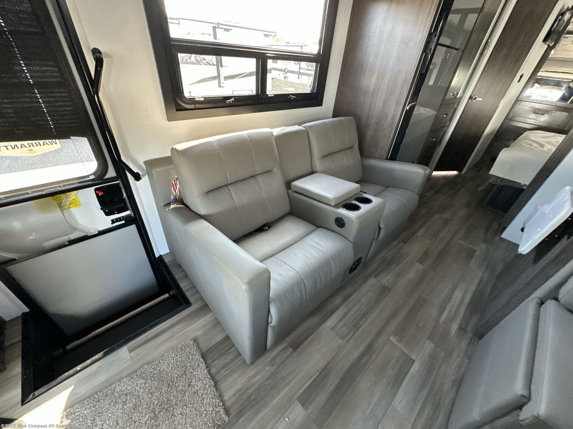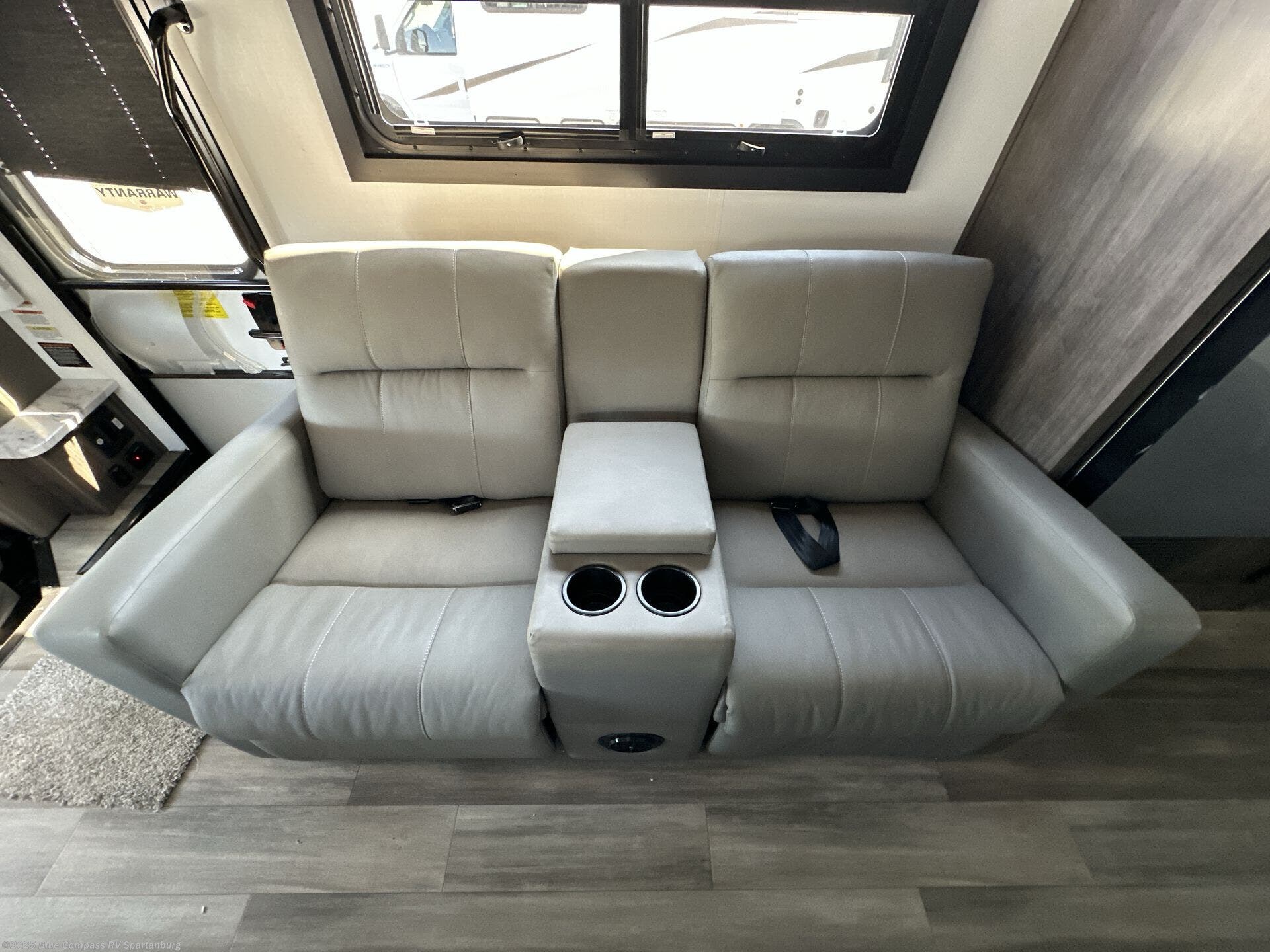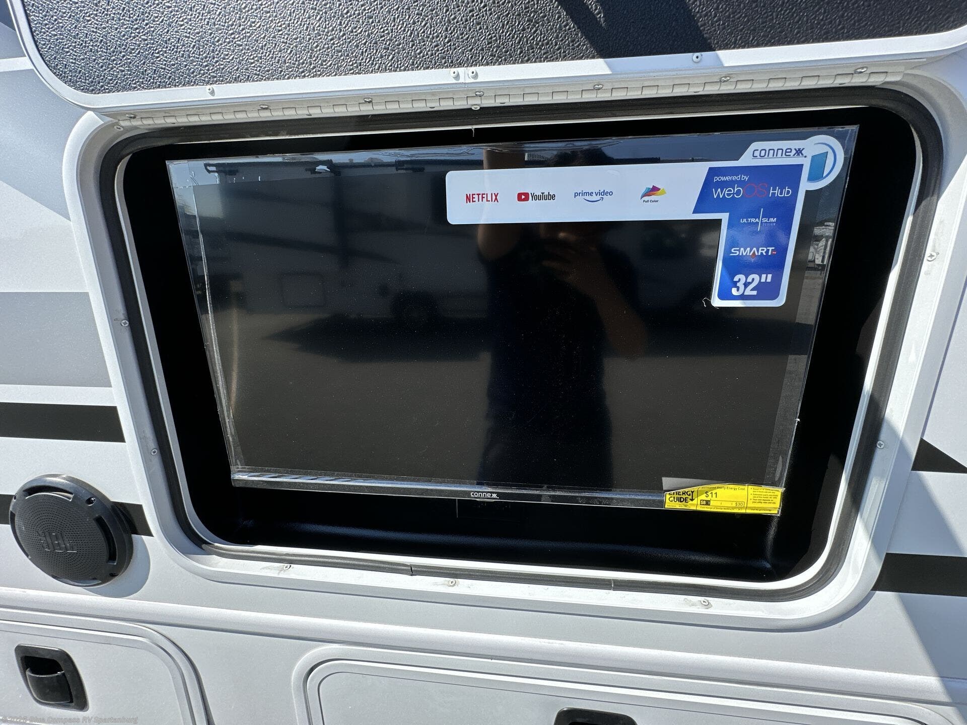 You can bring a few guests to join in on the fun with this motorhome! The bunk over cab and 66" x 76" king bed offer comfortable places to sleep, plus you can transform the booth dinette and the sofa into extra sleeping spaces if needed. Everyone can freshen up each morning with the 30" x 36" shower in the rear corner bathroom, and keep their bellies full with a Furrion all-in-one cooktop and oven plus a residential microwave. There is even a countertop extension to make meal prepping easier. Take the fun outside and watch movies on the exterior LED HD Smart TV while staying protected by the 18' electric awning with LED lights!