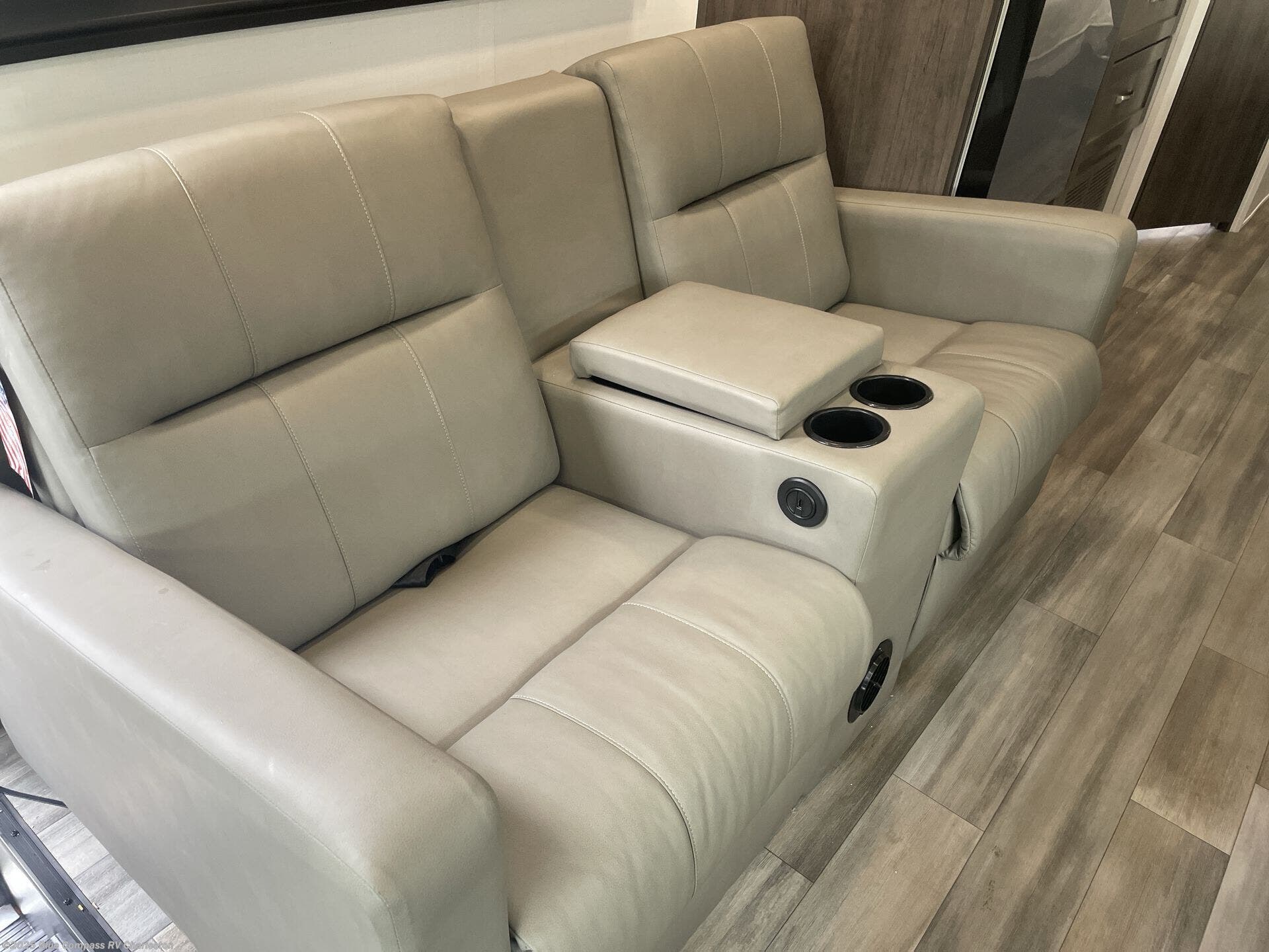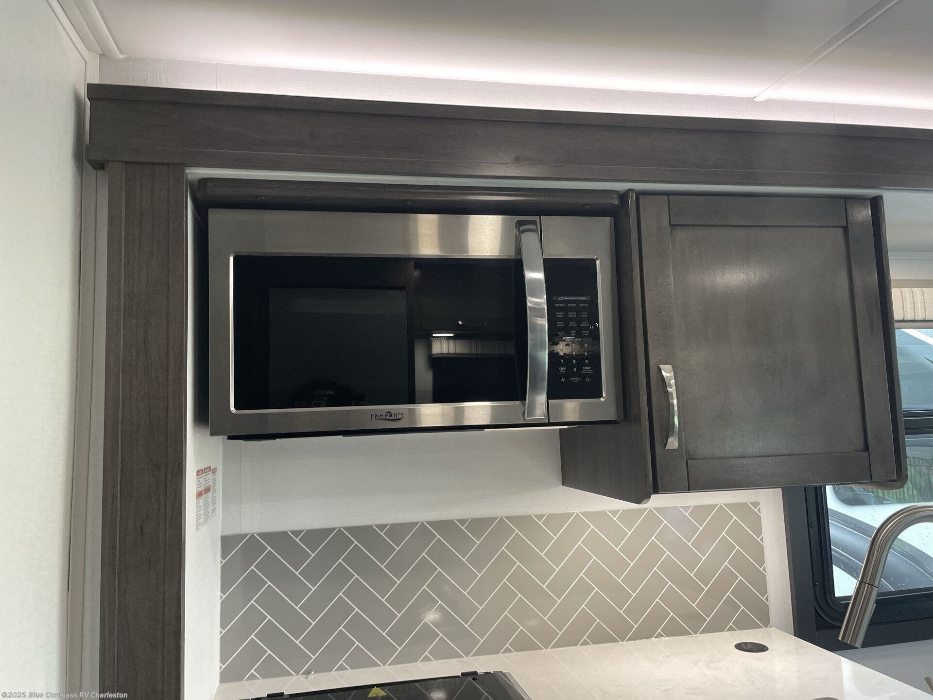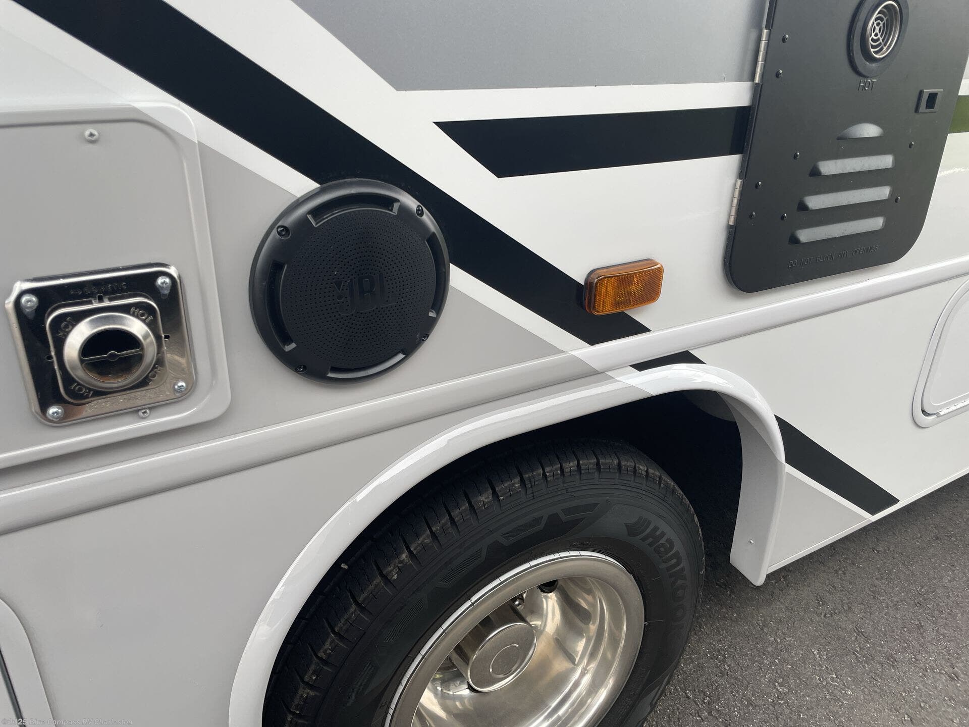 You can bring a few guests to join in on the fun with this motorhome! The bunk over cab and 66" x 76" king bed offer comfortable places to sleep, plus you can transform the booth dinette and the sofa into extra sleeping spaces if needed. Everyone can freshen up each morning with the 30" x 36" shower in the rear corner bathroom, and keep their bellies full with a Furrion all-in-one cooktop and oven plus a residential microwave. There is even a countertop extension to make meal prepping easier. Take the fun outside and watch movies on the exterior LED HD Smart TV while staying protected by the 18' electric awning with LED lights!