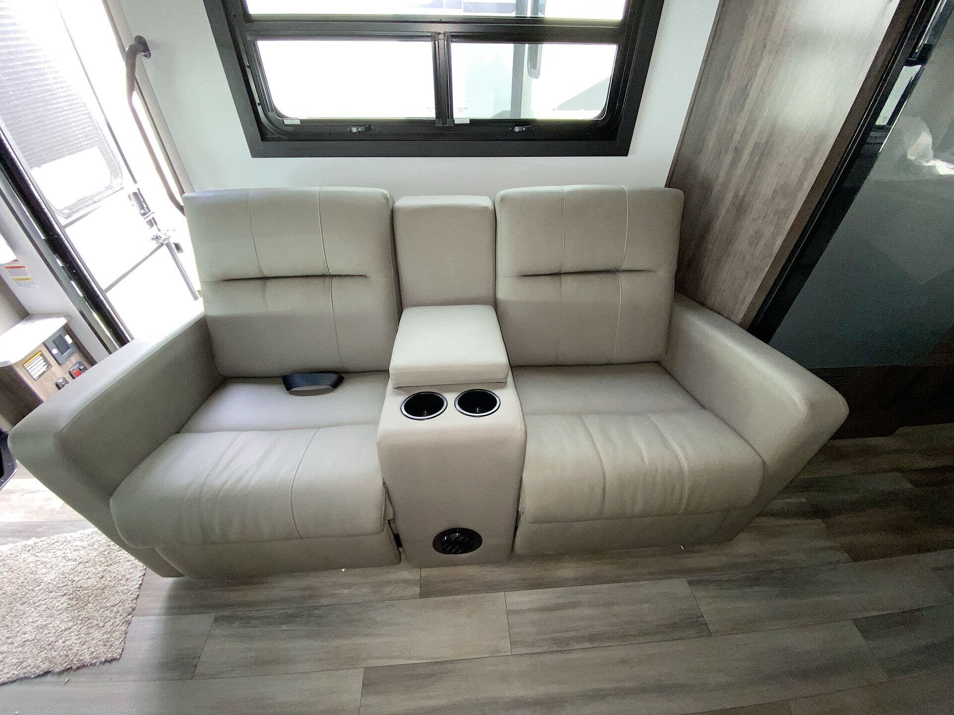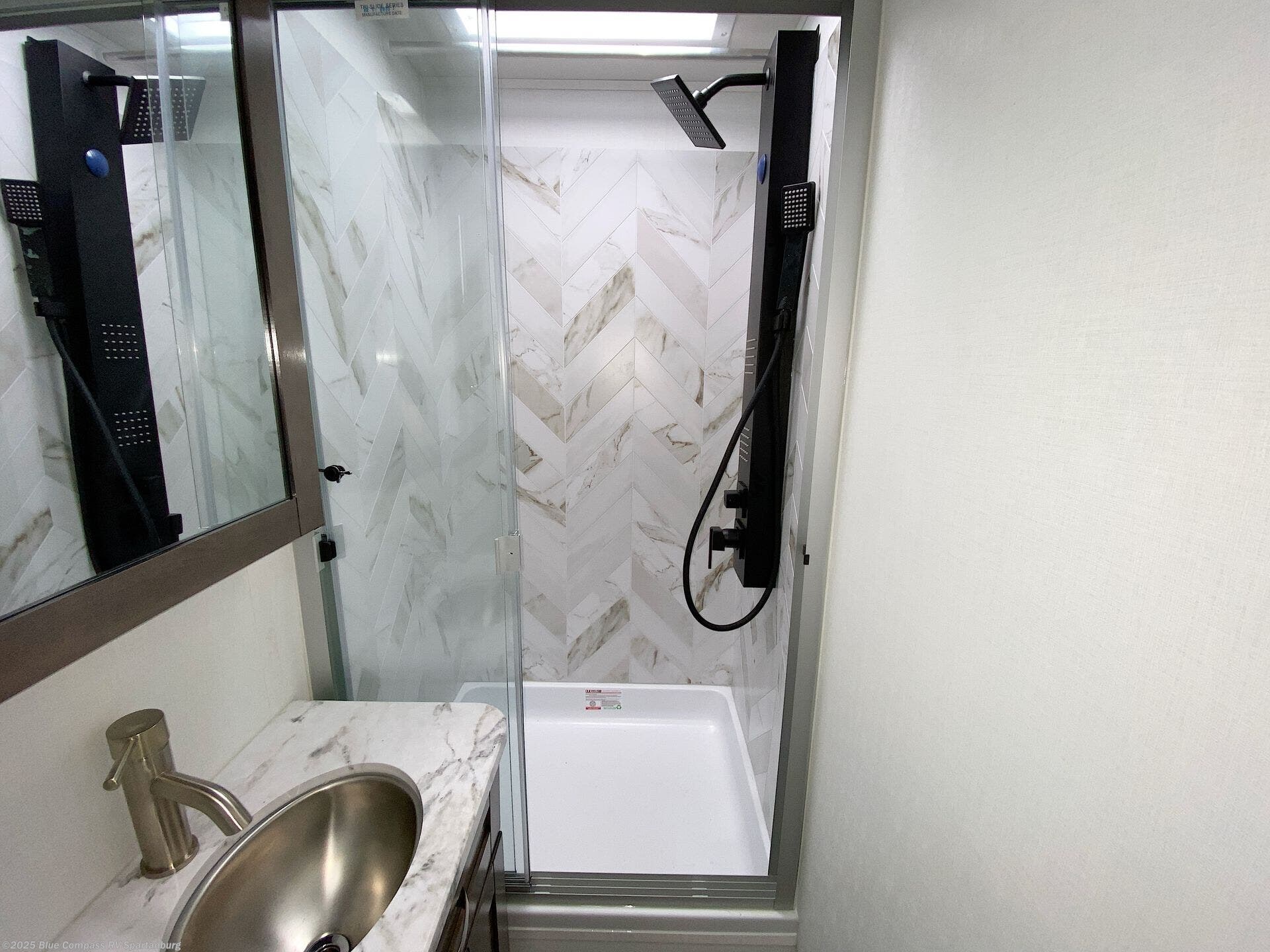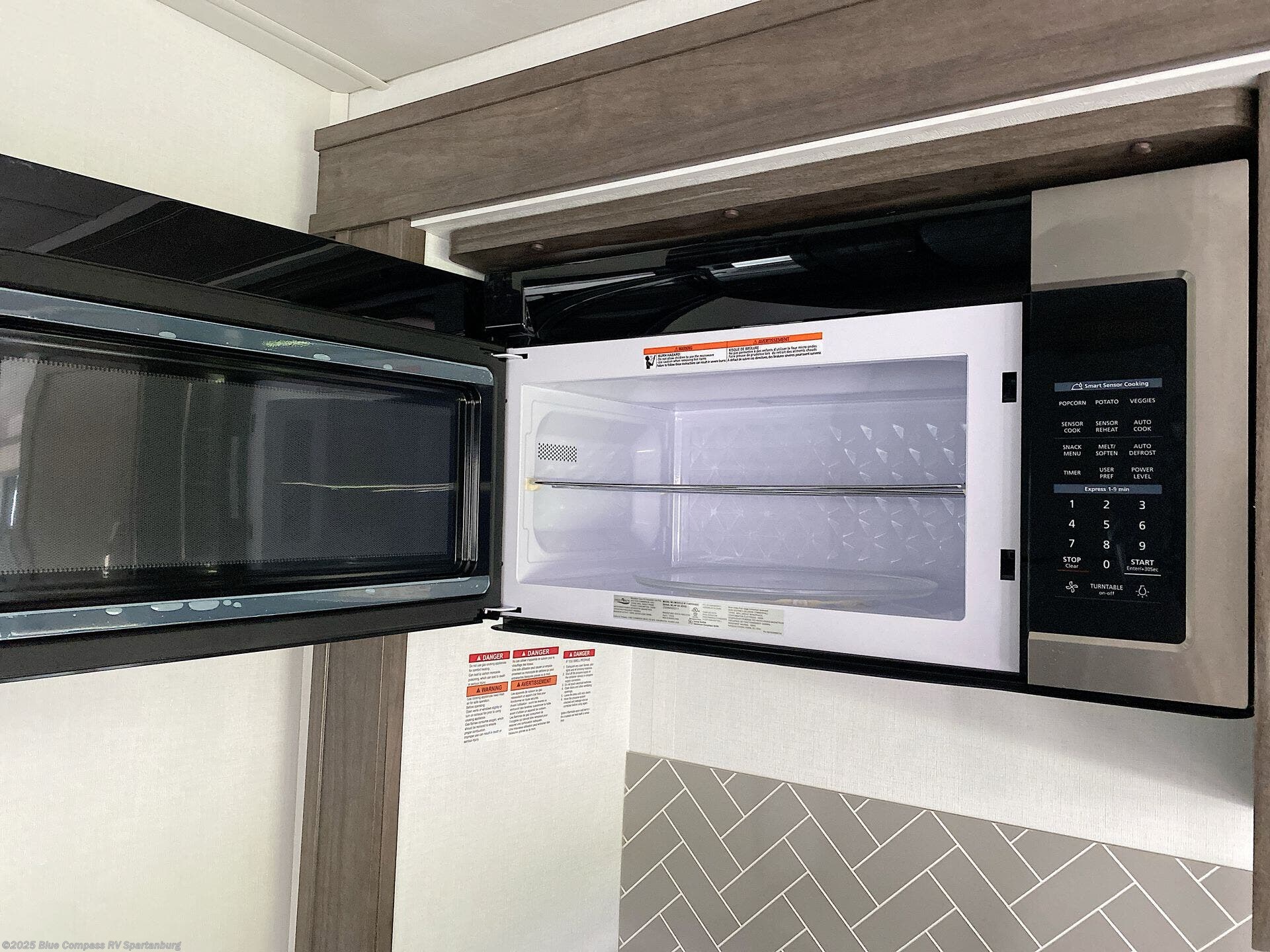 You can bring a few guests to join in on the fun with this motorhome! The bunk over cab and 66" x 76" king bed offer comfortable places to sleep, plus you can transform the booth dinette and the sofa into extra sleeping spaces if needed. Everyone can freshen up each morning with the 30" x 36" shower in the rear corner bathroom, and keep their bellies full with a Furrion all-in-one cooktop and oven plus a residential microwave. There is even a countertop extension to make meal prepping easier. Take the fun outside and watch movies on the exterior LED HD Smart TV while staying protected by the 18' electric awning with LED lights!