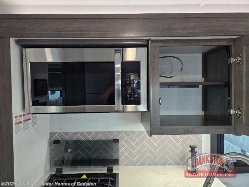 You can bring a few guests to join in on the fun with this motorhome! The bunk over cab and 66" x 76" king bed offer comfortable places to sleep, plus you can transform the booth dinette and the sofa into extra sleeping spaces if needed. Everyone can freshen up each morning with the 30" x 36" shower in the rear corner bathroom, and keep their bellies full with a Furrion all-in-one cooktop and oven plus a residential microwave. There is even a countertop extension to make meal prepping easier. Take the fun outside and watch movies on the exterior LED HD Smart TV while staying protected by the 18' electric awning with LED lights!