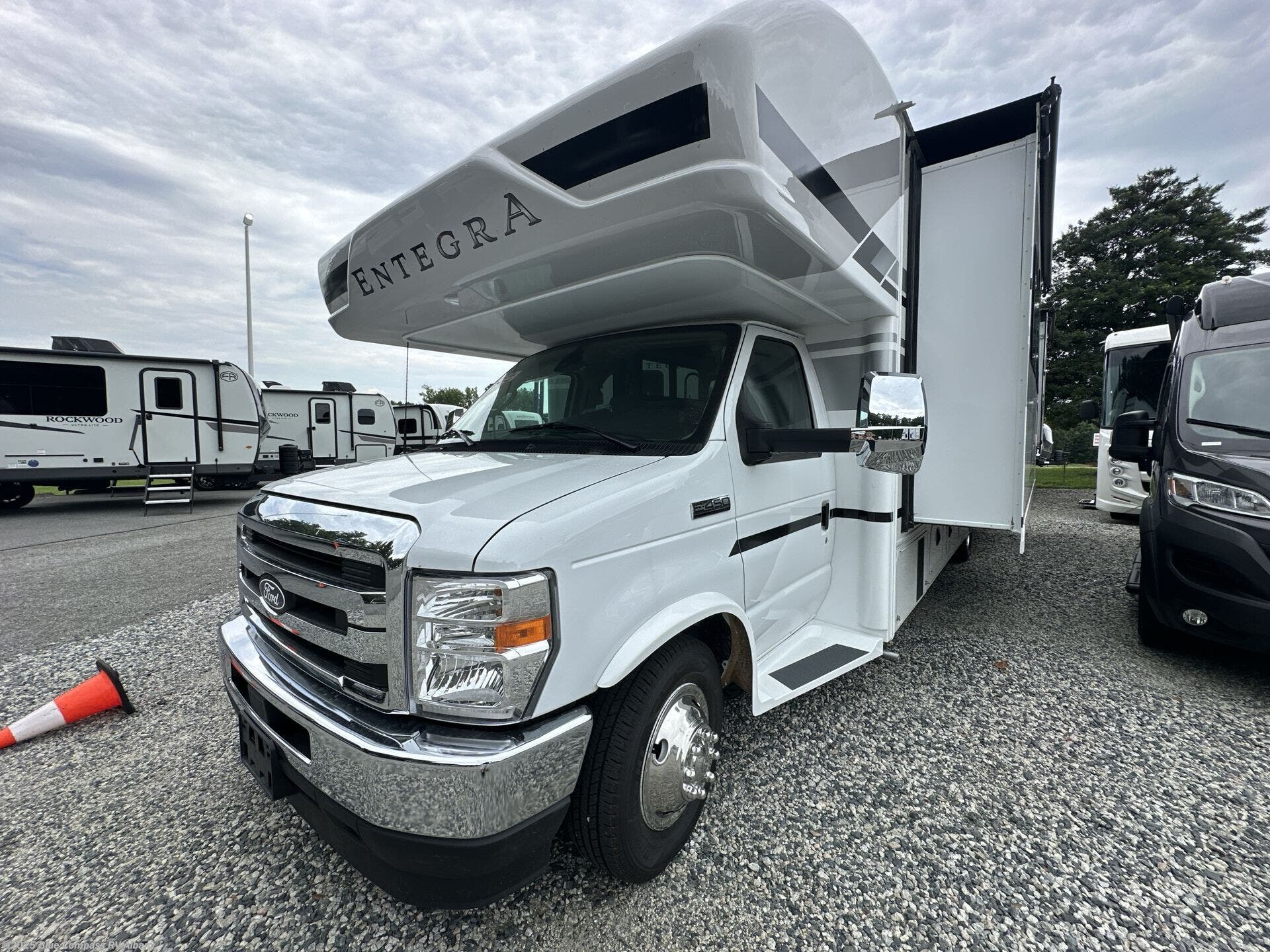 Make one of these Entegra Coach Esteem Class C gas motorhomes your own! The interior design includes solid-surface countertops that pair well with the many technological upgrades. The fully custom-molded ABS surround in the cab area features its signature panoramic window and power shade for a beautiful view while you drive and provide privacy at night. They also come with E-Z Drive Elite which has a computer-balanced driveshaft, Koni FSD shocks, Hellwig helper springs, and a heavy-duty rear stabilizer bar for a smooth ride. Automatic leveling jacks will make set-up a breeze and the electric awning with LED lights will create an outdoor living space where you can relax after unpacking. Inside, you'll enjoy hardwood cabinet doors and drawer fronts, blackout night roller shades, and high-intensity recessed LED ceiling lights to keep your space well lit. There is also a JBL audio system and a BMPRO total coach control system to easily manage your unit's functions!