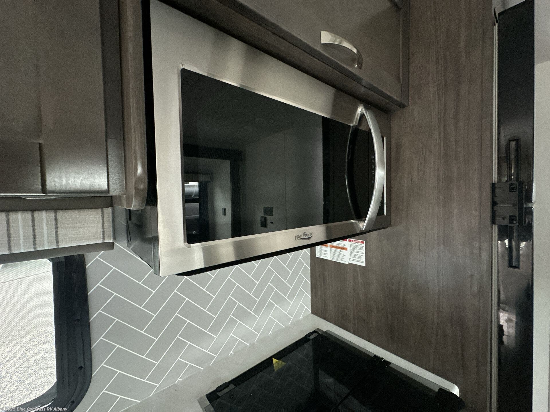 Enjoy a home on wheels with this motorhome! The rear private bedroom has a 60" x 74" queen bed slide to lay your head on at night and dual wardrobes opposite to keep your clothes looking their best. Add the optional TV if you enjoy watching a movie in bed. The separated bathroom makes it easy for one person to freshen up in the 30" x 36" shower while another uses the private toilet and sink. Prepare your best home cooked meals with the Furrion all-in-one cooktop and oven then enjoy them at the booth dinette. The tri-fold sofa offers a comfortable place to relax but it can be switched out for the an optional theater sofa instead. There is also a bunk over cab for more to join in on the fun!
