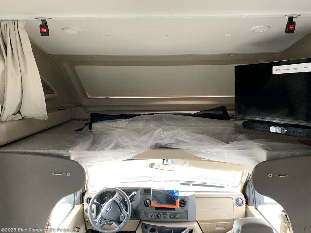 Enjoy a home on wheels with this motorhome! The rear private bedroom has a 60" x 74" queen bed slide to lay your head on at night and dual wardrobes opposite to keep your clothes looking their best. Add the optional TV if you enjoy watching a movie in bed. The separated bathroom makes it easy for one person to freshen up in the 30" x 36" shower while another uses the private toilet and sink. Prepare your best home cooked meals with the Furrion all-in-one cooktop and oven then enjoy them at the booth dinette. The tri-fold sofa offers a comfortable place to relax but it can be switched out for the an optional theater sofa instead. There is also a bunk over cab for more to join in on the fun!