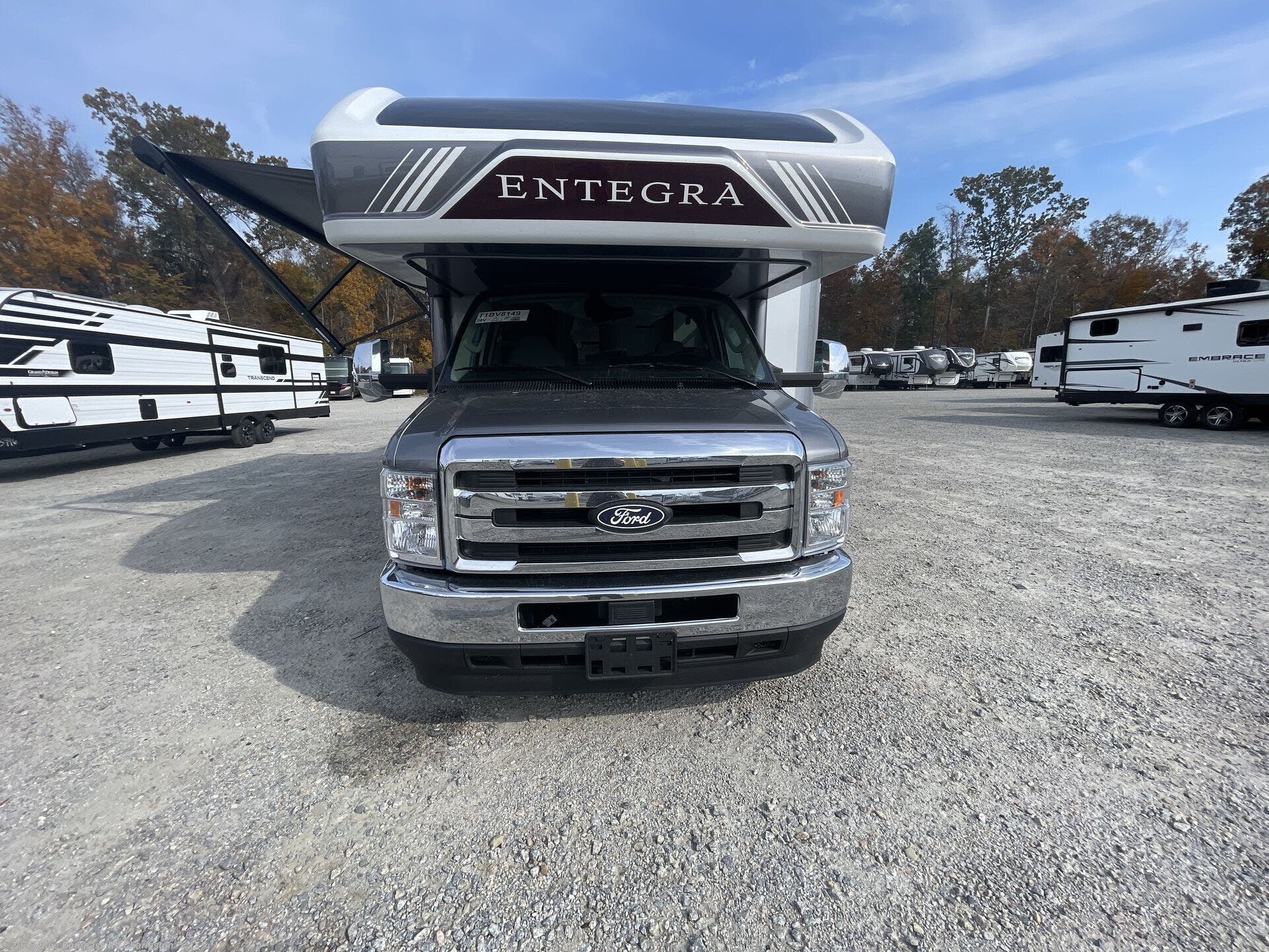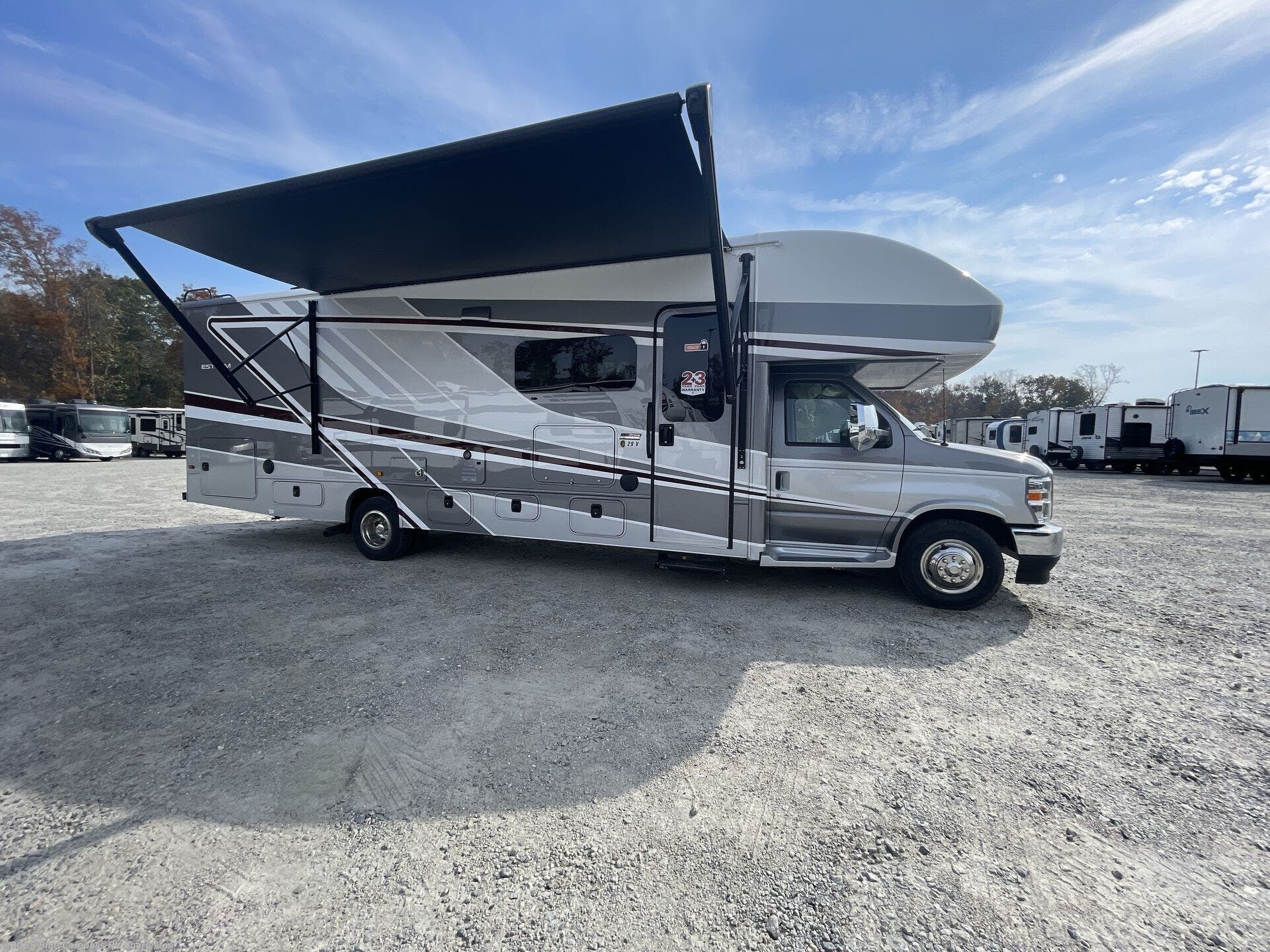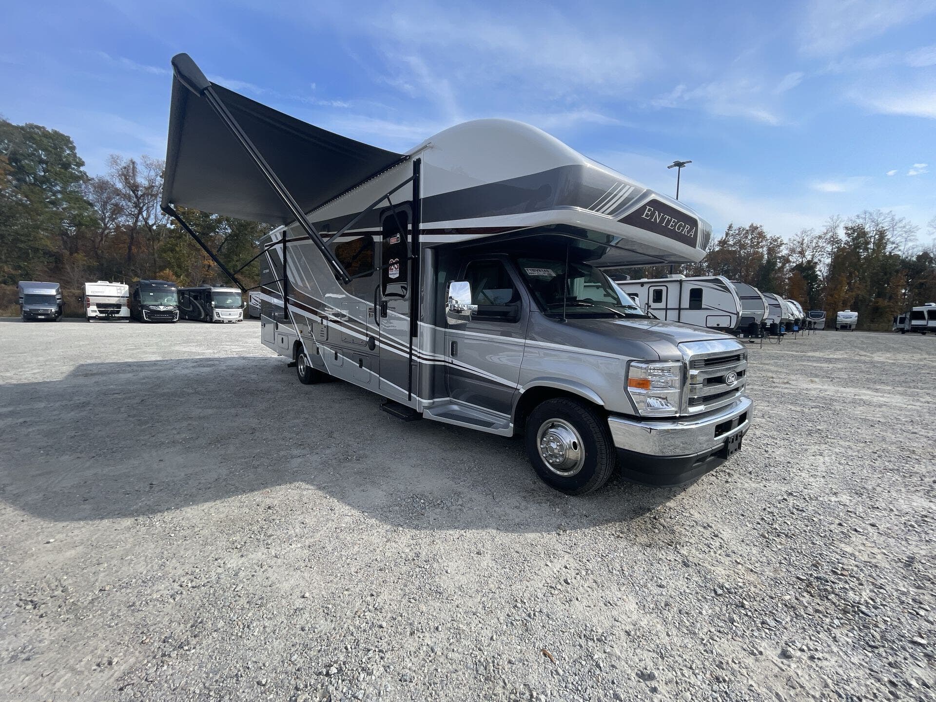 Make one of these Entegra Coach Esteem Class C gas motorhomes your own! The interior design includes solid-surface countertops that pair well with the many technological upgrades. The fully custom-molded ABS surround in the cab area features its signature panoramic window and power shade for a beautiful view while you drive and provide privacy at night. They also come with E-Z Drive Elite which has a computer-balanced driveshaft, Koni FSD shocks, Hellwig helper springs, and a heavy-duty rear stabilizer bar for a smooth ride. Automatic leveling jacks will make set-up a breeze and the electric awning with LED lights will create an outdoor living space where you can relax after unpacking. Inside, you'll enjoy hardwood cabinet doors and drawer fronts, blackout night roller shades, and high-intensity recessed LED ceiling lights to keep your space well lit. There is also a JBL audio system and a BMPRO total coach control system to easily manage your unit's functions!