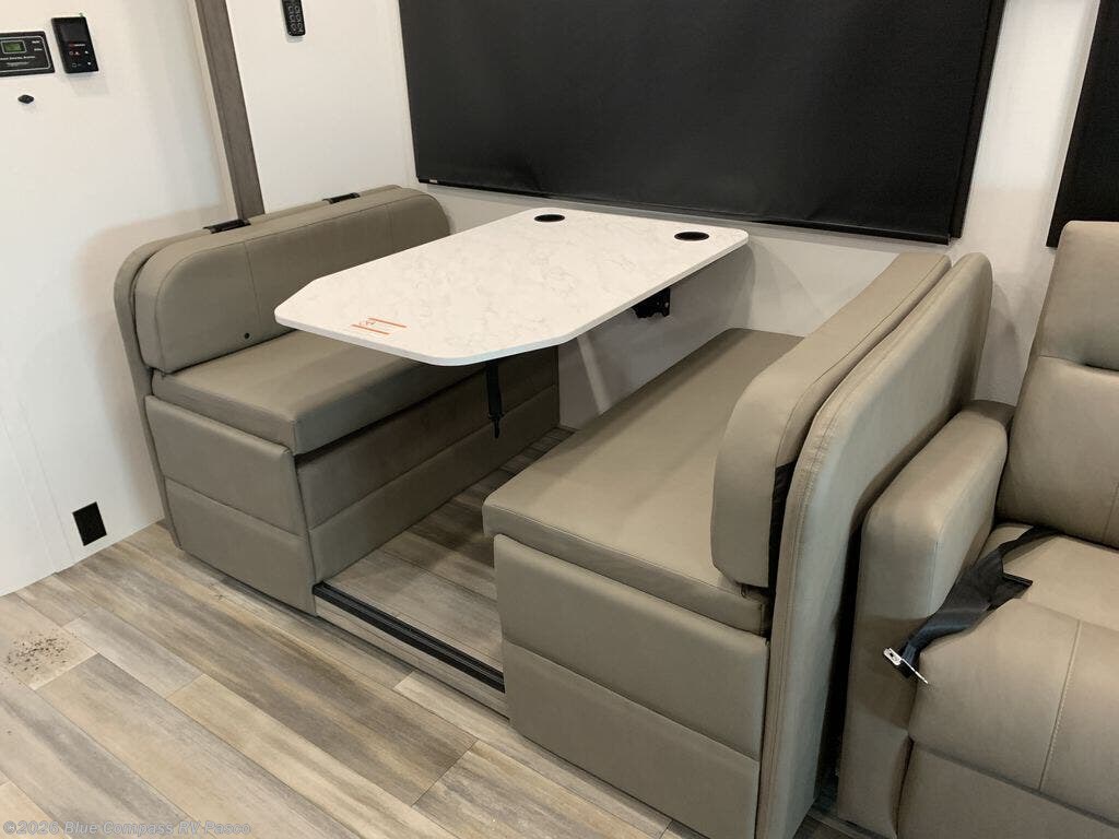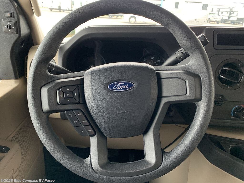 Enjoy a home on wheels with this motorhome! The rear private bedroom has a 60" x 74" queen bed slide to lay your head on at night and dual wardrobes opposite to keep your clothes looking their best. Add the optional TV if you enjoy watching a movie in bed. The separated bathroom makes it easy for one person to freshen up in the 30" x 36" shower while another uses the private toilet and sink. Prepare your best home cooked meals with the Furrion all-in-one cooktop and oven then enjoy them at the booth dinette. The tri-fold sofa offers a comfortable place to relax but it can be switched out for the an optional theater sofa instead. There is also a bunk over cab for more to join in on the fun!