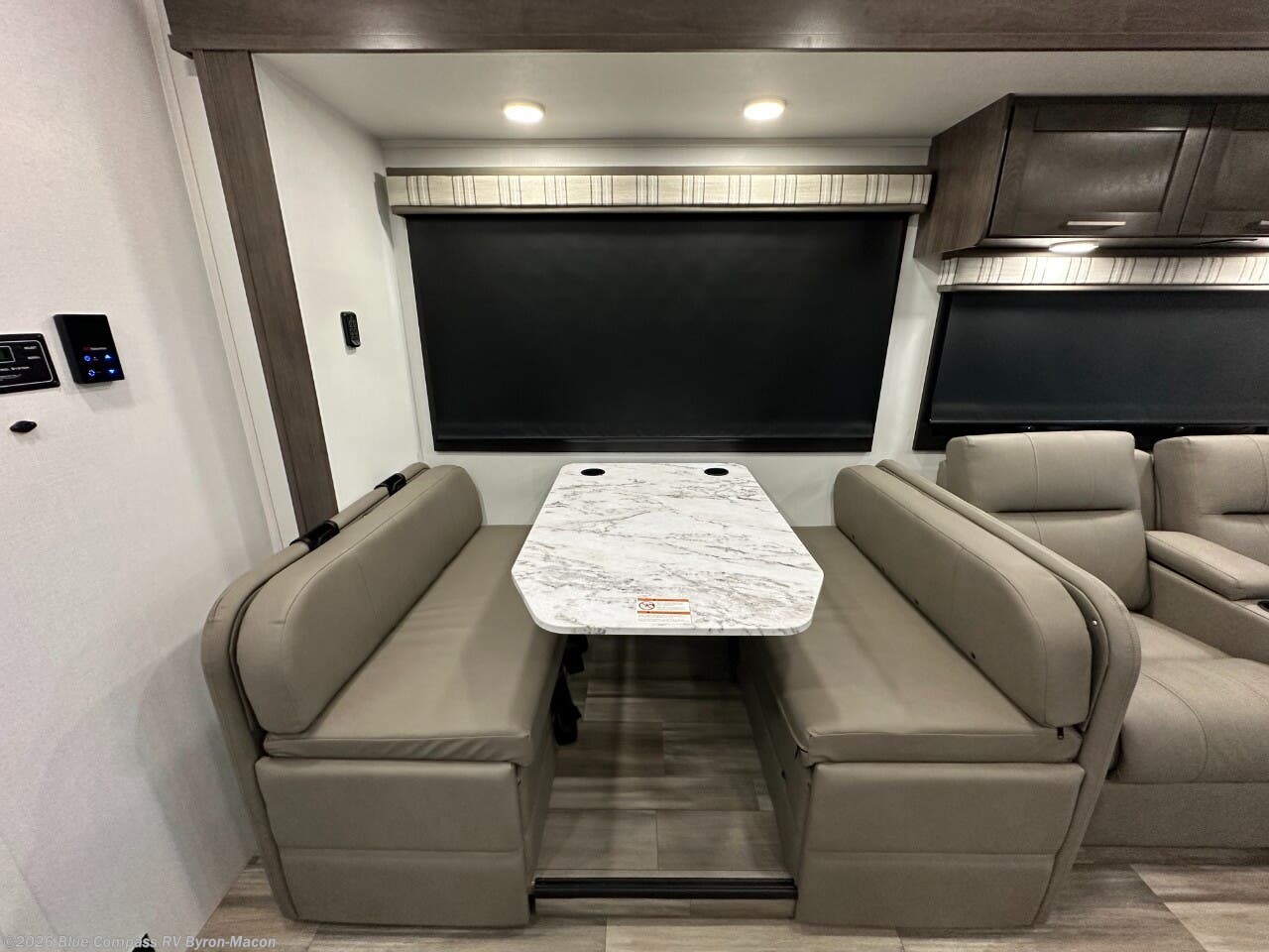 Enjoy a home on wheels with this motorhome! The rear private bedroom has a 60" x 74" queen bed slide to lay your head on at night and dual wardrobes opposite to keep your clothes looking their best. Add the optional TV if you enjoy watching a movie in bed. The separated bathroom makes it easy for one person to freshen up in the 30" x 36" shower while another uses the private toilet and sink. Prepare your best home cooked meals with the Furrion all-in-one cooktop and oven then enjoy them at the booth dinette. The tri-fold sofa offers a comfortable place to relax but it can be switched out for the an optional theater sofa instead. There is also a bunk over cab for more to join in on the fun!