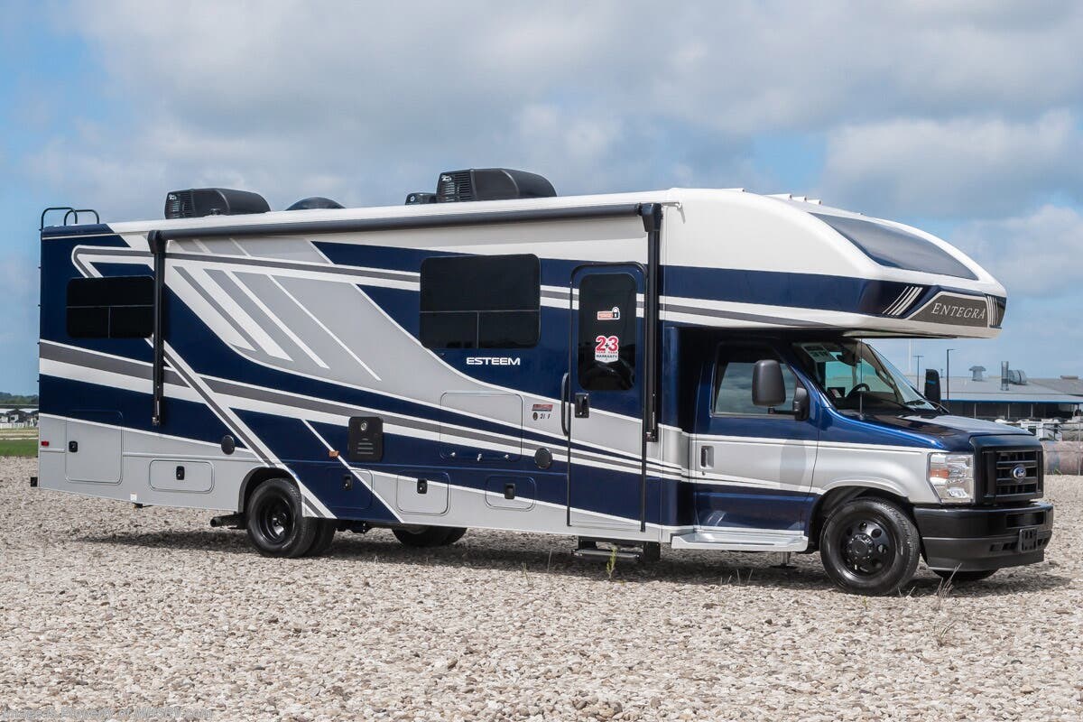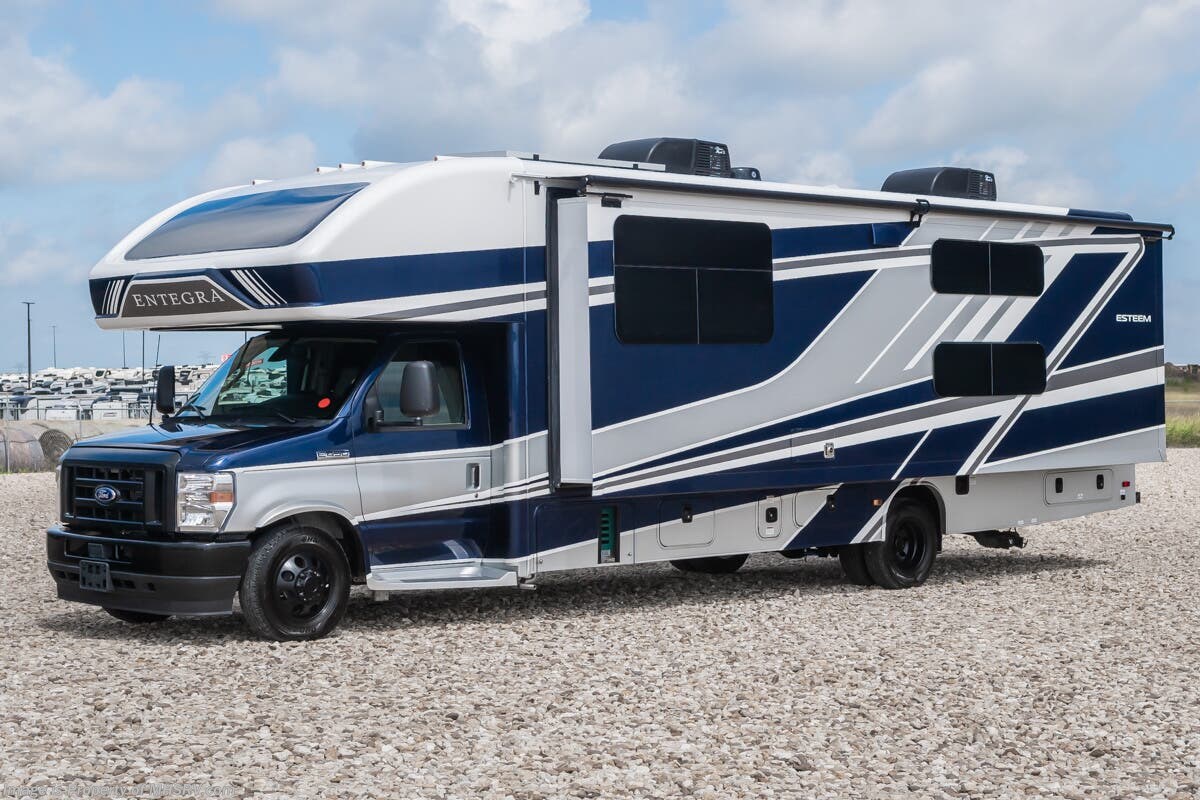 MSRP $220,668. The Ultimate in Compact Luxury Motor Homes is Here! Introducing the new 2026 Entegra Coach Esteem with features including new full body paint exteriors. Now you and your family can enjoy the exceptional craftsmanship, premier drive and even Entegra Coach's industry leading 2-Year Limited, 5-Year Structural, Transferable Warranty! This beautiful RV also features the optional full body paint, customer value package, blackout package, bedroom TV, theater seating sofa, dual A/C and sun folding windshield shade! The exclusive E-Ride LX Handling Package found in the Esteem boast a computer-balanced driveshaft, an oversized stabilizing bar, Bilstein shocks, rubber isolation mounts and Hellwig L-35 helper springs for incomparable drivability. The Entegra is the only class C on the market to minimize "road fatigue" through construction and materials. The standard features list is nothing short of extraordinary including a one-piece seamless molded fiberglass front cap with fiberglass wings, an automotive and bonded panoramic front window with power black-out interior shade and a full aluminum front cab-over cage for superior strength and coach integrity. Additional construction and feature highlights include a one-piece fiberglass roof, frameless and tinted windows, total in-house water filtration system, a dream dinette™, a full cab-over bunk with an incredible 750-lb. rating, automotive design ABS molded front sleeper compartment with integrated cup holders, cab-over entertainment center, bedroom TV, pillow top mattress, stainless steel appliances, an inverter, automatic one touch leveling, solid hardwood cabinet doors with hidden hinges, full extension drawer guides, frame mounted seatbelts (sofa and both dinette benches), residential full vinyl flooring with no ducts (all ducts installed in toe kicks), stainless exterior trim package, solid surface kitchen counter and slide-out counter extension in select floor plans, solid surface sink covers, chrome exterior mirrors with integrated side-view cameras, extra large fiberglass running boards and TuffShell™ vacuum bonded lamination process in sidewalls, roof, and floor. The R-7 high density bead foam insulation will keep the Entegra far better insulated and quieter inside as well. Electro-Galvanized Steel backers are utilized within the walls as anchor points for superior structural integrity. Structurwood™ Decking is utilized in the floors to eliminate creaking. Other unique features include thick insulated compartment doors, a slide-out battery tray, one-piece Roto-Cast baggage compartments, heat pads for holding tanks, a lighted step well with electric entrance steps, a power awning with LED light strip, energy efficient LED ceiling lights, fully ducted and even air flow throughout the coach and an Energy Management System. Shop hundreds of class C gas RVs at 1 location! Choose from Fleetwood Altitude - Gulf Stream BT Cruiser - Thor Chateau - Four Winds - Geneva and Quantum - Entegra Coach Odyssey Odyssey SE and Esteem - East to West Entrada - Forest River Forester - Forester LE - Nexus Phantom - Viper and much more. We also sell quality pre-owned models such as Jayco Greyhawk – Redhawk - Redhawk SE - Thor Magnitude - Winnebago Spirit - and Minnie Winnie - Coachmen Freelander and Leprechaun - Forest River Sunseeker Classic - Sunseeker LE – Solera - Holiday Rambler Incline and much more. Visit for our complete line-up and the sale prices that have made us the #1 volume selling motor home dealership in the world 12 years in a row! For additional details on this unit and our entire inventory including brochures, window sticker, videos, photos, reviews & testimonials as well as additional information about Motor Home Specialist and our manufacturers please visit us at or call 800-335-6054. At Motor Home Specialist, we DO NOT charge any prep or orientation fees like you will find at other dealerships. All sale prices include a 200-point inspection, interior & exterior wash, detail service and a fully automated high-pressure rain booth test and coach wash that is a standout service unlike that of any other in the industry. You will also receive a thorough coach orientation with an MHSRV technician, a night stay in our delivery park featuring landscaped and covered pads with full hook-ups and much more! Read Thousands upon Thousands of 5-Star Reviews at and See What They Had to Say About Their Experience at Motor Home Specialist. WHY PAY MORE? WHY SETTLE FOR LESS?