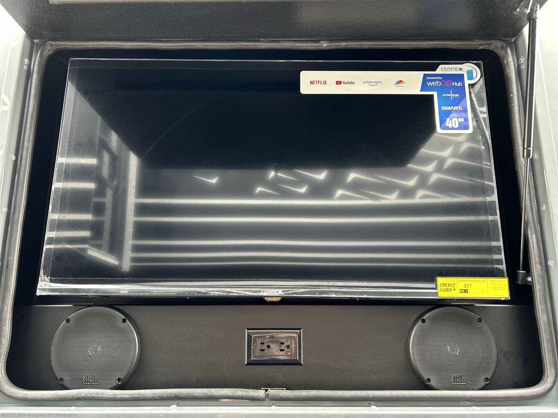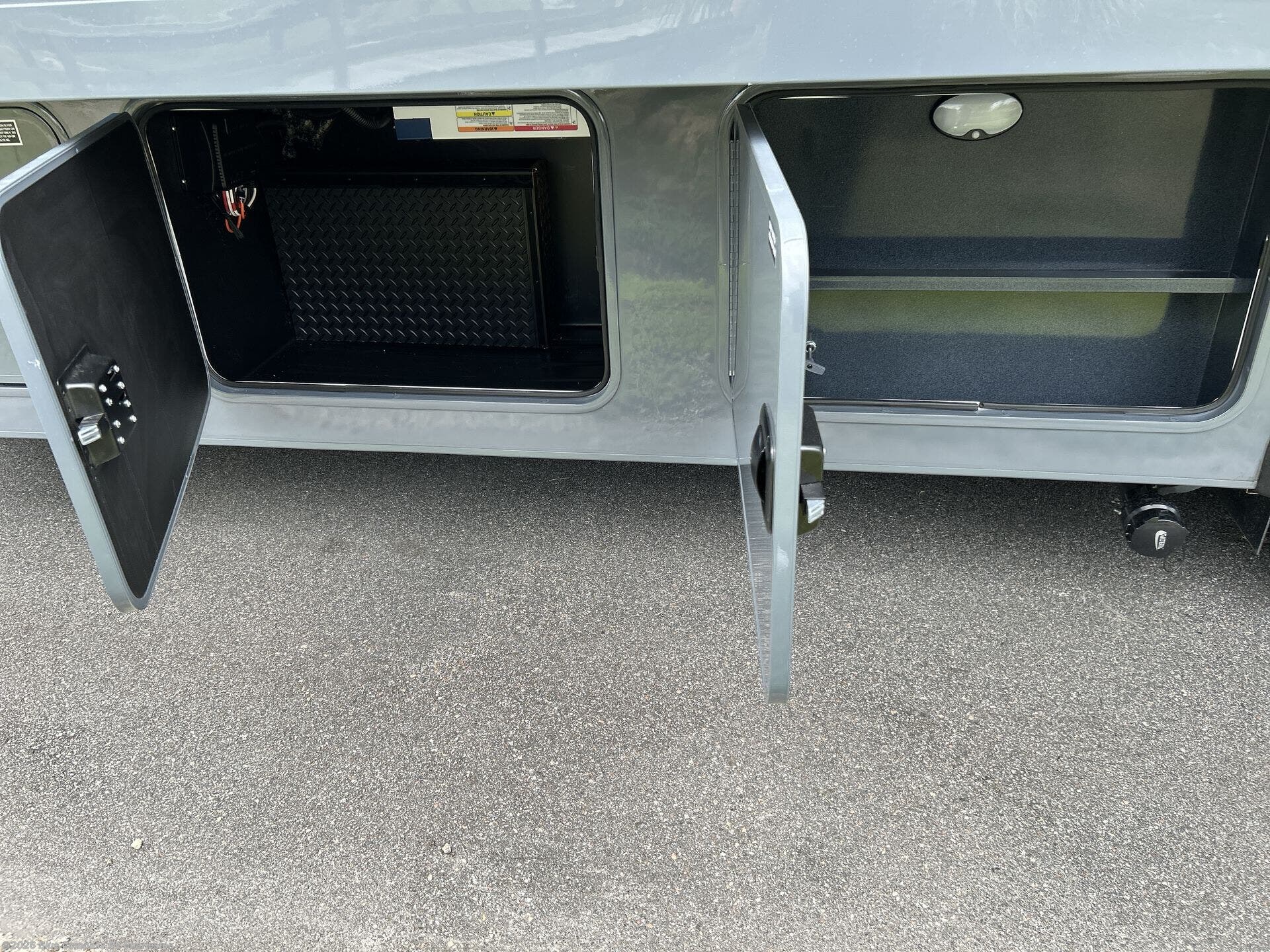 A perfect get-a-way coach for you and your guests with sleeping space for six thanks to the cabover bunk with a 750 lb. capacity and the 68" jack-knife sofa. You could choose the theater seat option in place of the jack-knife sofa if you didn't need the added sleeping space. Each morning and night you will enjoy the 30" x 36" shower with skylight for getting cleaned up. The kitchen will allow you to easily create great meals just like home with a Furrion cooktop and oven, residential microwave, and there is a 10 cu. ft. refrigerator and pantry for food storage. The walk-around king bed will be a welcome retreat at night, and there is a full wardrobe along the back wall for your things. Add an optional TV and you can enjoy late night movies in bed. This unit also allows you to enjoy the outdoors with a 20' awning and outside entertainment center. Note: you can choose a 15 cu. ft. optional refrigerator in place of the 10 cu. ft. if you like.