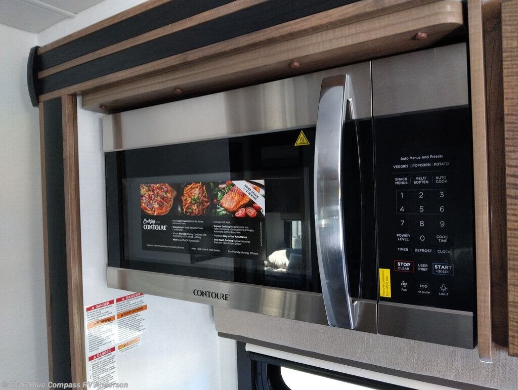 A perfect get-a-way coach for you and your guests with sleeping space for six thanks to the cabover bunk with a 750 lb. capacity and the 68" jack-knife sofa. You could choose the theater seat option in place of the jack-knife sofa if you didn't need the added sleeping space. Each morning and night you will enjoy the 30" x 36" shower with skylight for getting cleaned up. The kitchen will allow you to easily create great meals just like home with a Furrion cooktop and oven, residential microwave, and there is a 10 cu. ft. refrigerator and pantry for food storage. The walk-around king bed will be a welcome retreat at night, and there is a full wardrobe along the back wall for your things. Add an optional TV and you can enjoy late night movies in bed. This unit also allows you to enjoy the outdoors with a 20' awning and outside entertainment center. Note: you can choose a 15 cu. ft. optional refrigerator in place of the 10 cu. ft. if you like.