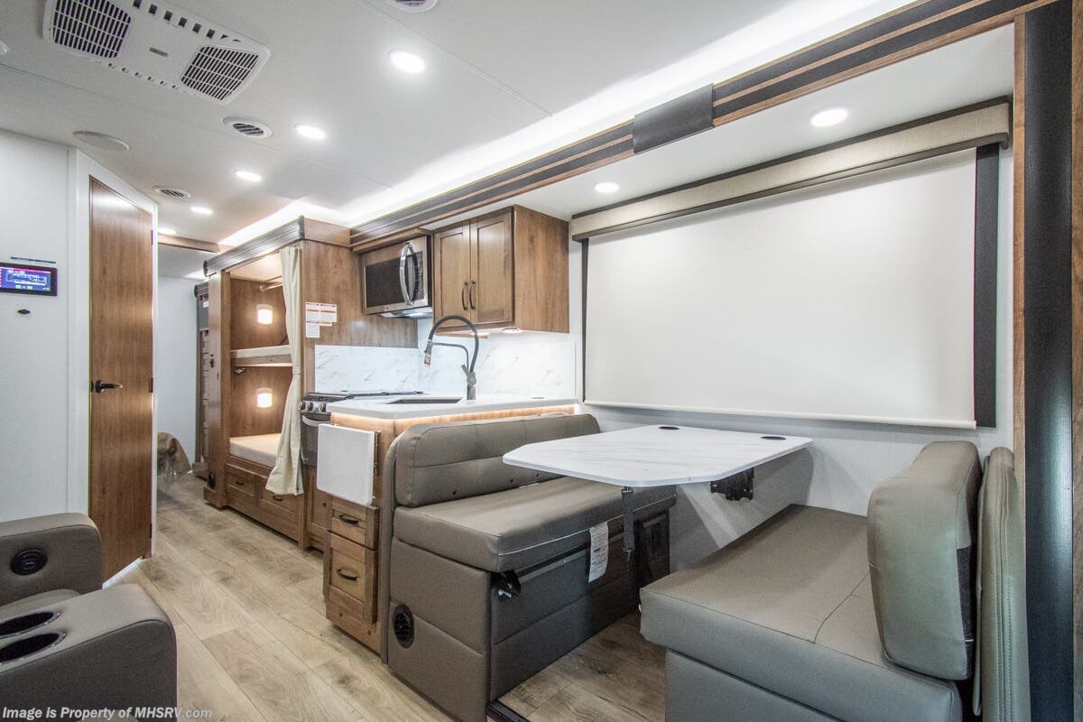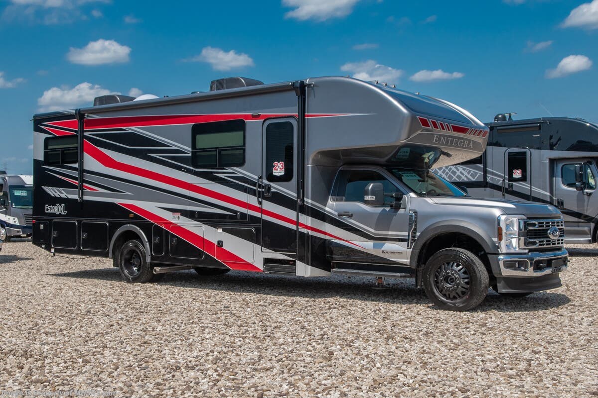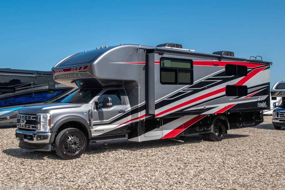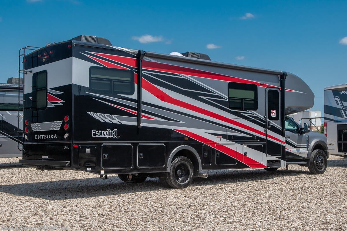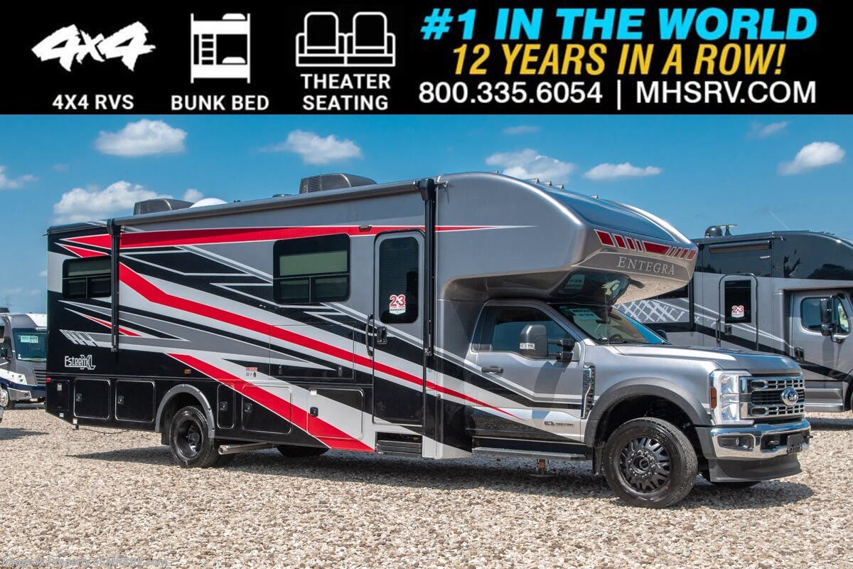 MSRP $321,866. The Ultimate in Compact Luxury Motor Homes is Here! Now you and your family can enjoy the exceptional craftsmanship, premier drive and even Entegra Coach's industry leading 2-Year Limited, 3-Year Structural! The Esteem XL 33F Bunk Model 4x4 measures approximately 34 feet 11 inches in length. Options on this unit include bedroom TV, dual A/Cs, aluminum rims, folding windshield sun shade, theater seats and the Customer Value package! The exclusive E-Z Ride Elite Handling Package found in the Esteem XL boast a computer-balanced driveshaft, heavy-duty rear stabilizer bar, Hellwig helper springs, and rubber isolation mounts. The Entegra is the only Super C on the market to minimize "road fatigue" through construction and materials. The standard features list is nothing short of extraordinary including a one-piece seamless fiberglass front cap, an automotive and bonded panoramic front window with power black-out interior shade. Additional construction and feature highlights include a one-piece seamless fiberglass roof, frameless and tinted windows, total in-house water filtration system, a dream dinetteā¢, a full cab-over bunk with an incredible 750-lb. rating, stainless steel appliances, an inverter, automatic one touch leveling, frame mounted seatbelts (sofa and both dinette benches), hardwood cabinet doors and drawer fronts with hidden cabinet hinges, solid surface kitchen countertop, extra large fiberglass running boards and TuffShell⢠vacuum bonded lamination process in sidewalls, roof, and floor. The high density bead foam insulation will keep the Entegra far better insulated and quieter inside as well. Electro-Galvanized Steel backers are utilized within the walls as anchor points for superior structural integrity. Other unique features include thick insulated compartment doors, heat pads for holding tanks, a power awning with LED light strip, and energy efficient LED ceiling lights. Shop hundreds of motorhomes including Super C RVs at 1 location! Choose from Entegra Accolade ā Accolade XL ā Accolade XT ā Esteem XL ā Dynamax DX3 ā Dynaquest XL ā Europa ā isata 5 - Thor Magnitude ā Magnitude Grand ā Omni ā Omni Trail ā Pasadena ā Inception - East to West Bravado ā Nexus Ghost ā Wraith ā Rebel ā Verrado and much more. We also sell quality pre-owned models such as Jayco Seneca XT ā Seneca ā Seneca Prestige - Greyhawk XL ā Tiffin Allegro Bay ā Newmar Super Star ā Supreme Aire ā Renegade Veracruz ā Valencia ā Verona ā Verona LE ā Explorer ā Coachmen Entourage and much more. Visit for our complete line-up and the sale prices that have made us the #1 volume selling motor home dealership in the world 12 years in a row! For additional details on this unit and our entire inventory including brochures, window sticker, videos, photos, reviews & testimonials as well as additional information about Motor Home Specialist and our manufacturers please visit us at or call 800-335-6054. At Motor Home Specialist, we DO NOT charge any prep or orientation fees like you will find at other dealerships. All sale prices include a 200-point inspection, interior & exterior wash, detail service and a fully automated high-pressure rain booth test and coach wash that is a standout service unlike that of any other in the industry. You will also receive a thorough coach orientation with an MHSRV technician, a night stay in our delivery park featuring landscaped and covered pads with full hook-ups and much more! Read Thousands upon Thousands of 5-Star Reviews at and See What They Had to Say About Their Experience at Motor Home Specialist. WHY PAY MORE? WHY SETTLE FOR LESS?